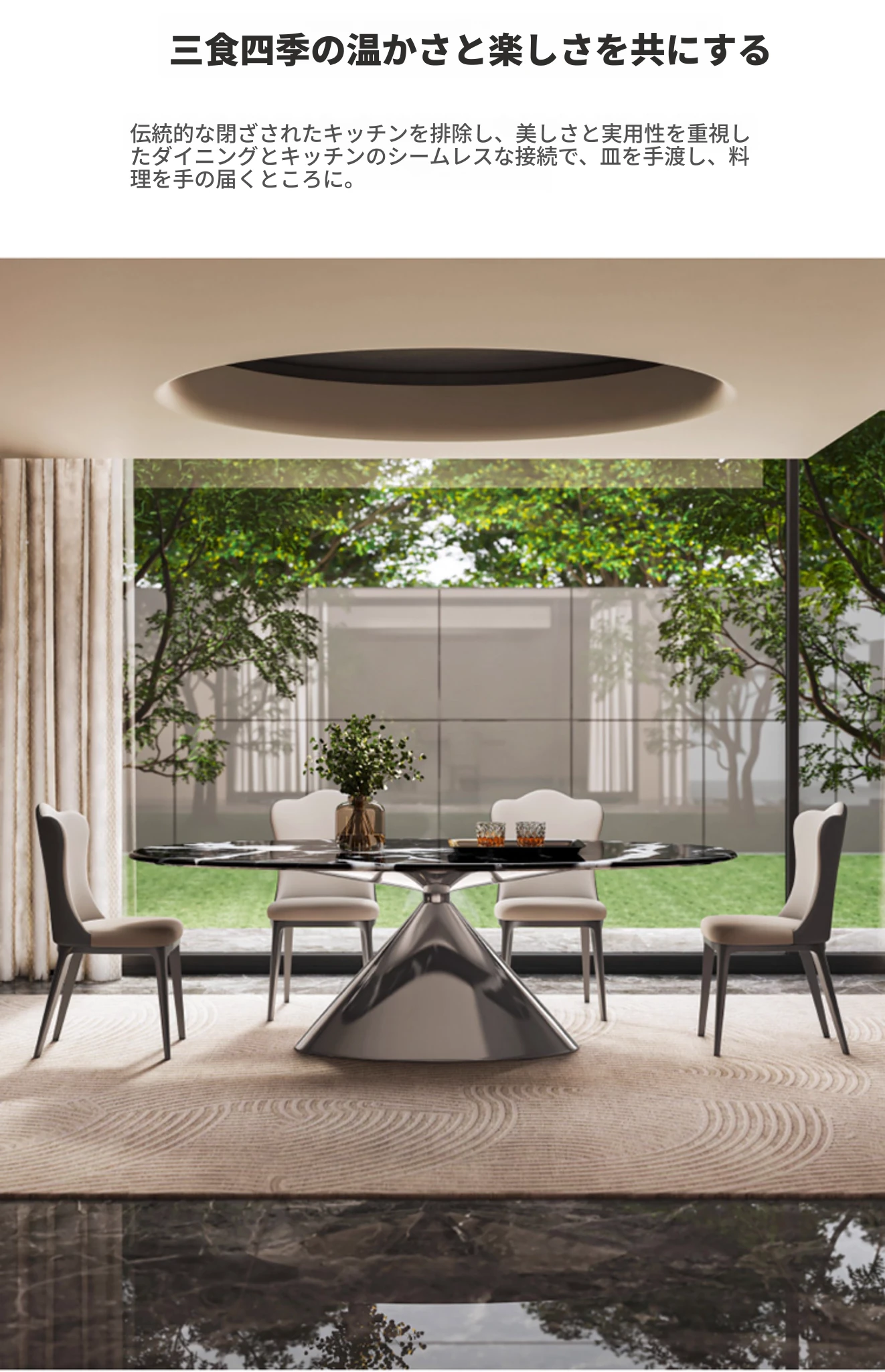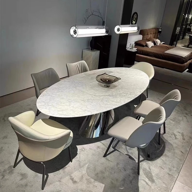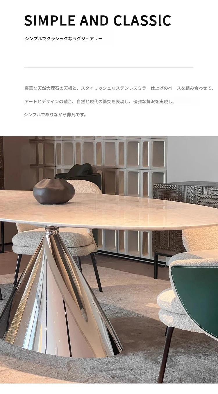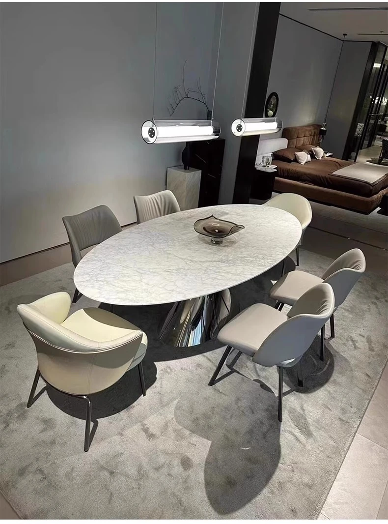 2025年新作!天然大理石カリーニャ氷玉ダイニングテーブル - ラグジュアリー感あふれる長方形&エレガントな楕円形デザインで、特別な食事のひとときを演出します。