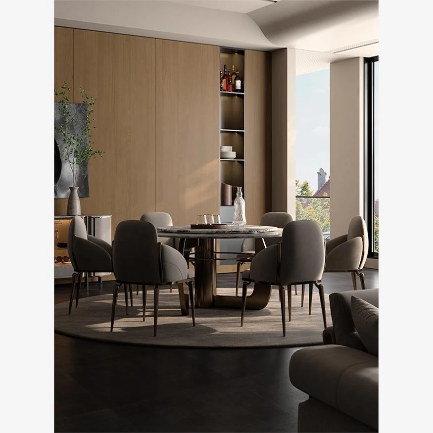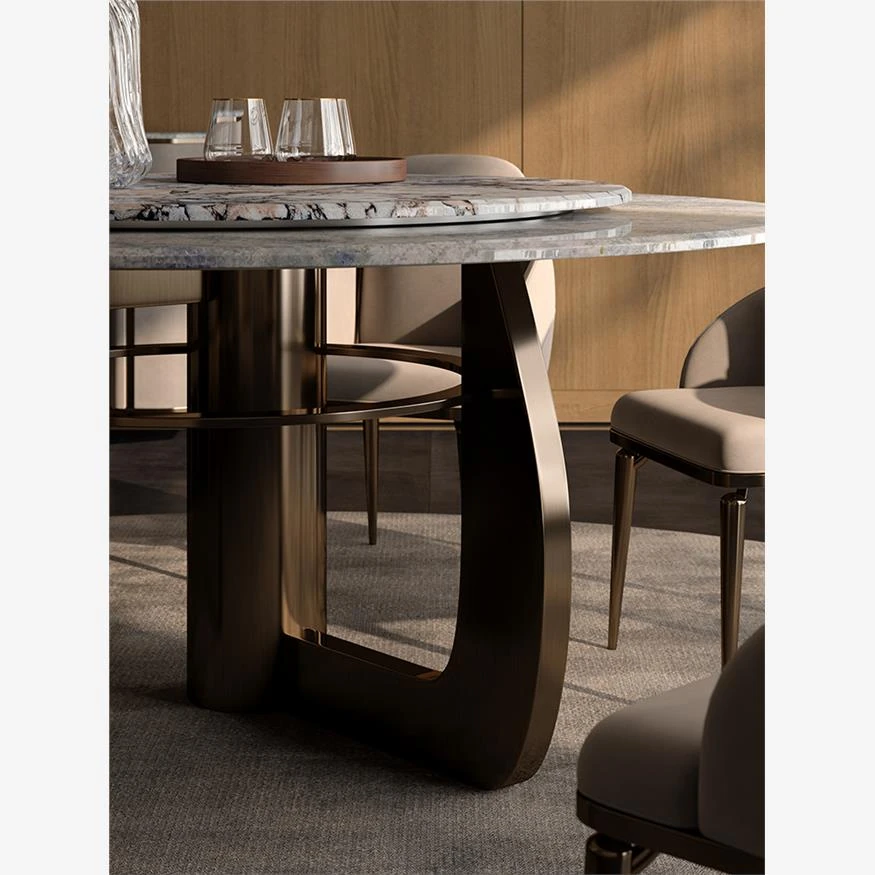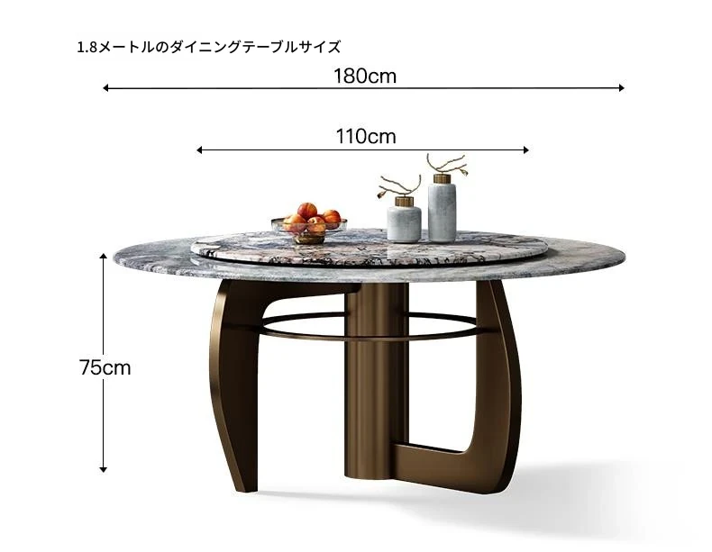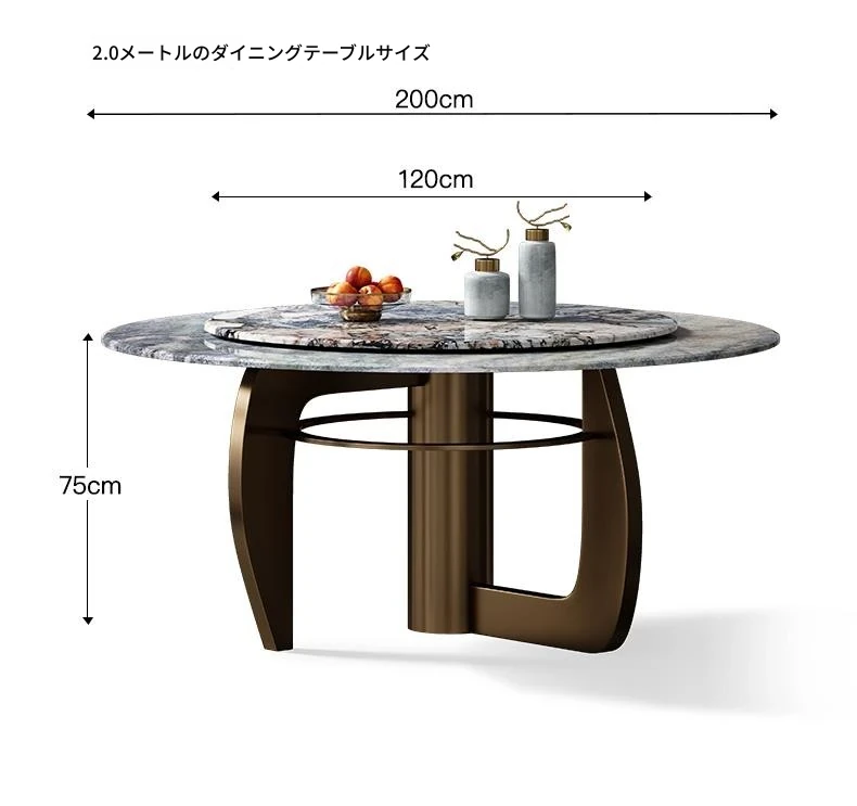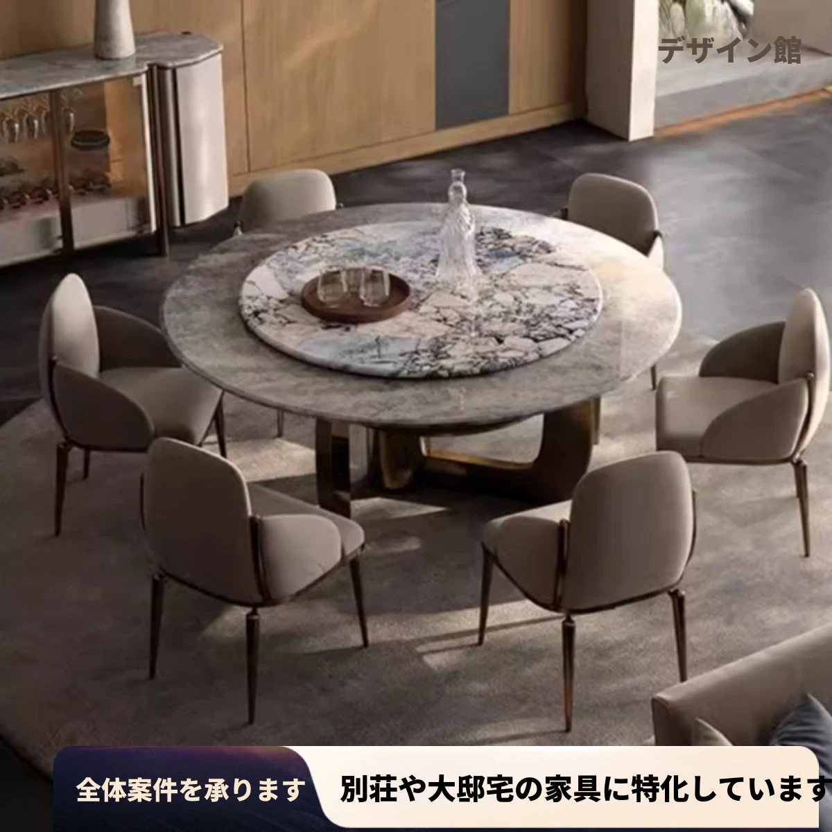 高級感あふれる天然大理石製の円形ダイニングテーブル、豪華な回転台付き!デザイン案をフルサポートし、家や別荘にぴったりなシンプルでスタイリッシュな食卓を実現。大平層に最適な一品です!