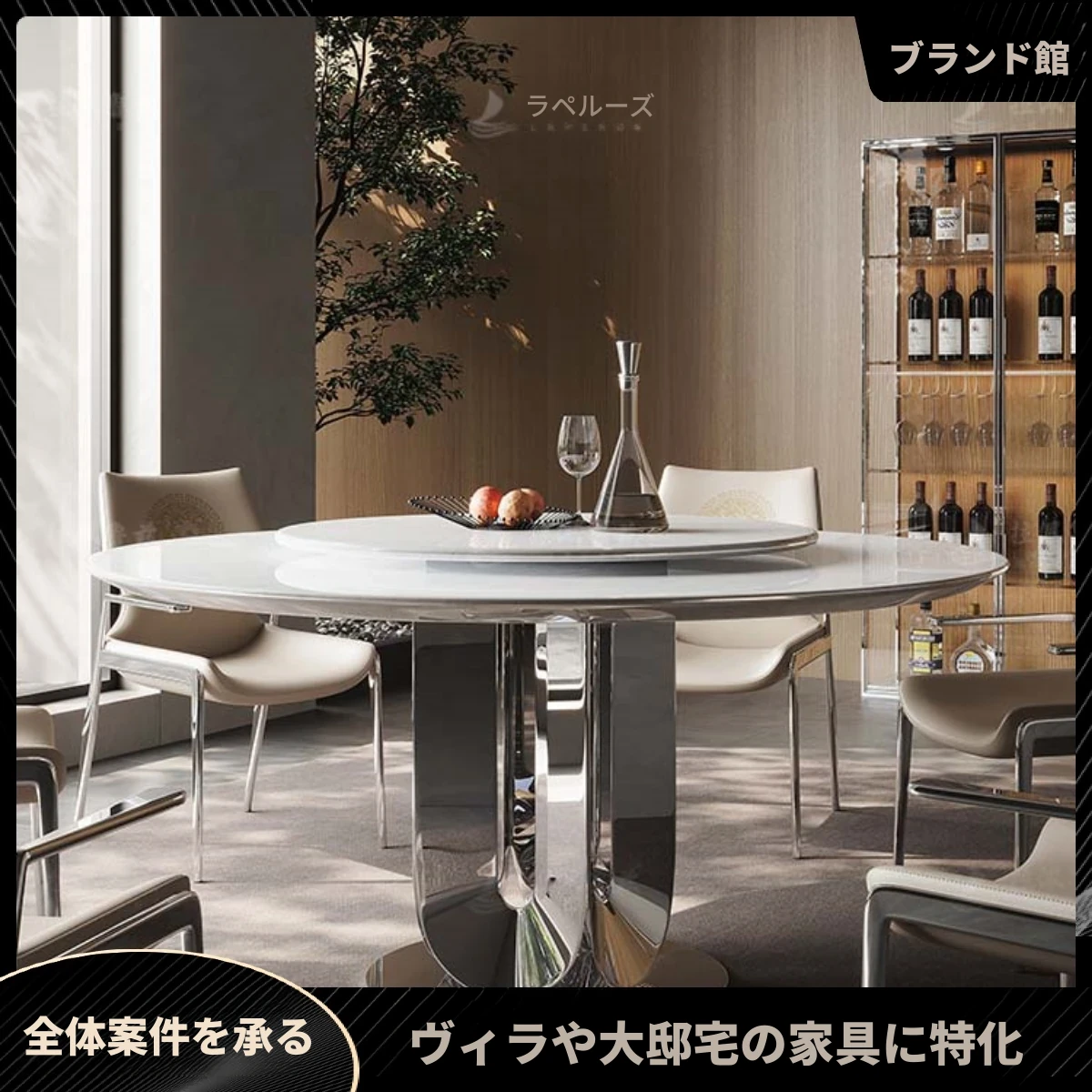 ダイニングテーブル/1.5M/ホワイトダイヤモンド/チタンシルバー/90cm回転台付き