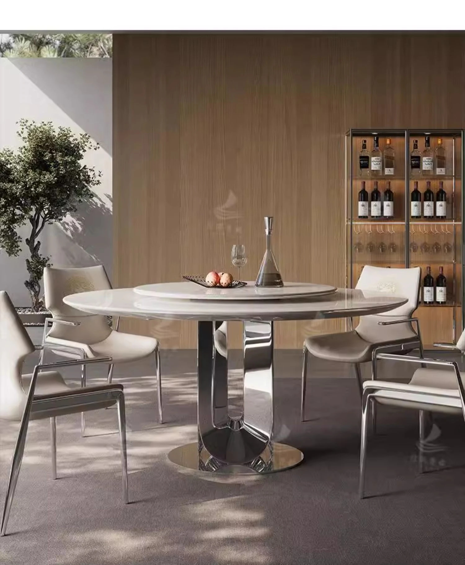 ダイニングテーブル/1.35M/ホワイトダイヤモンド/チタンシルバー/70cm回転台付き