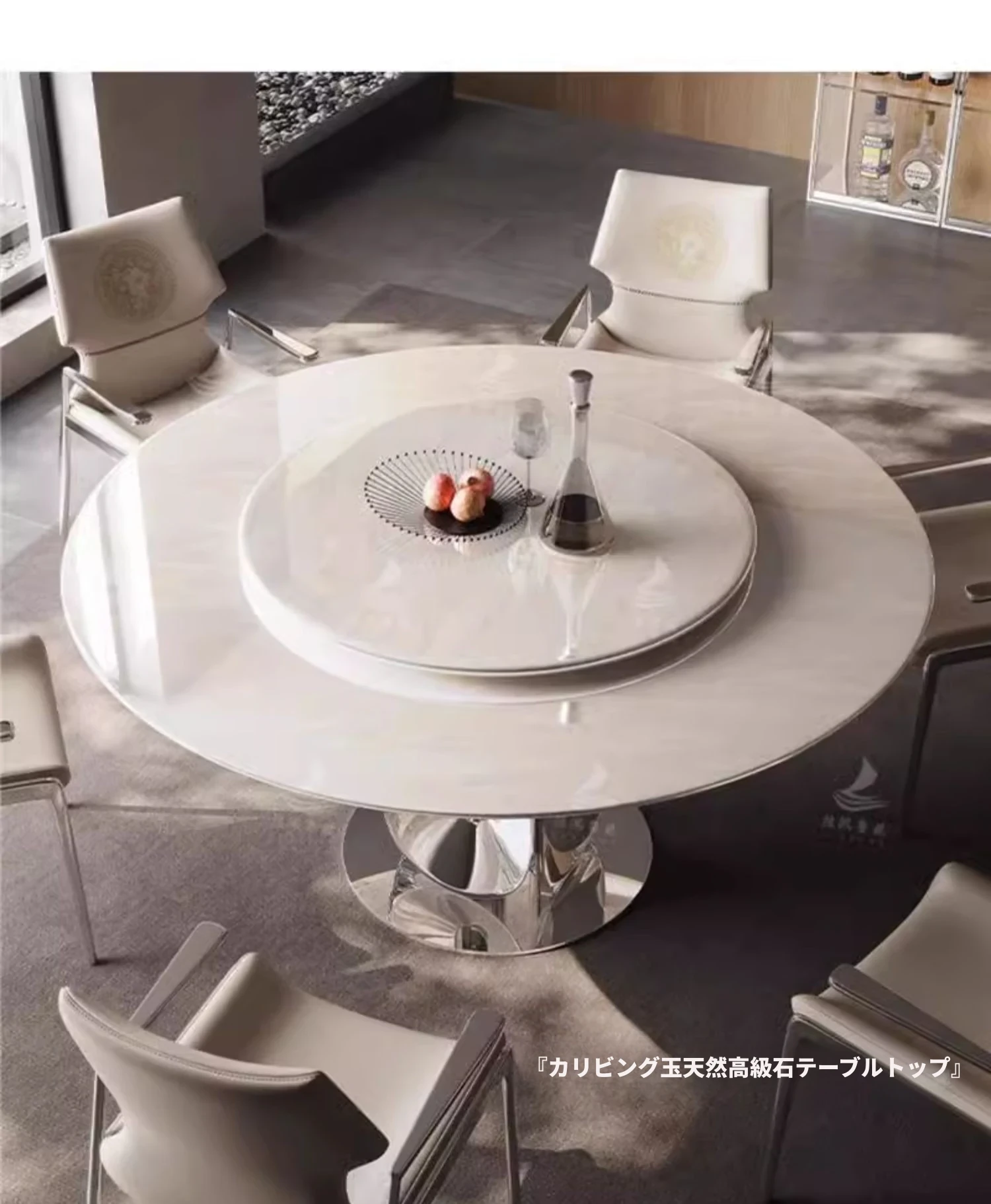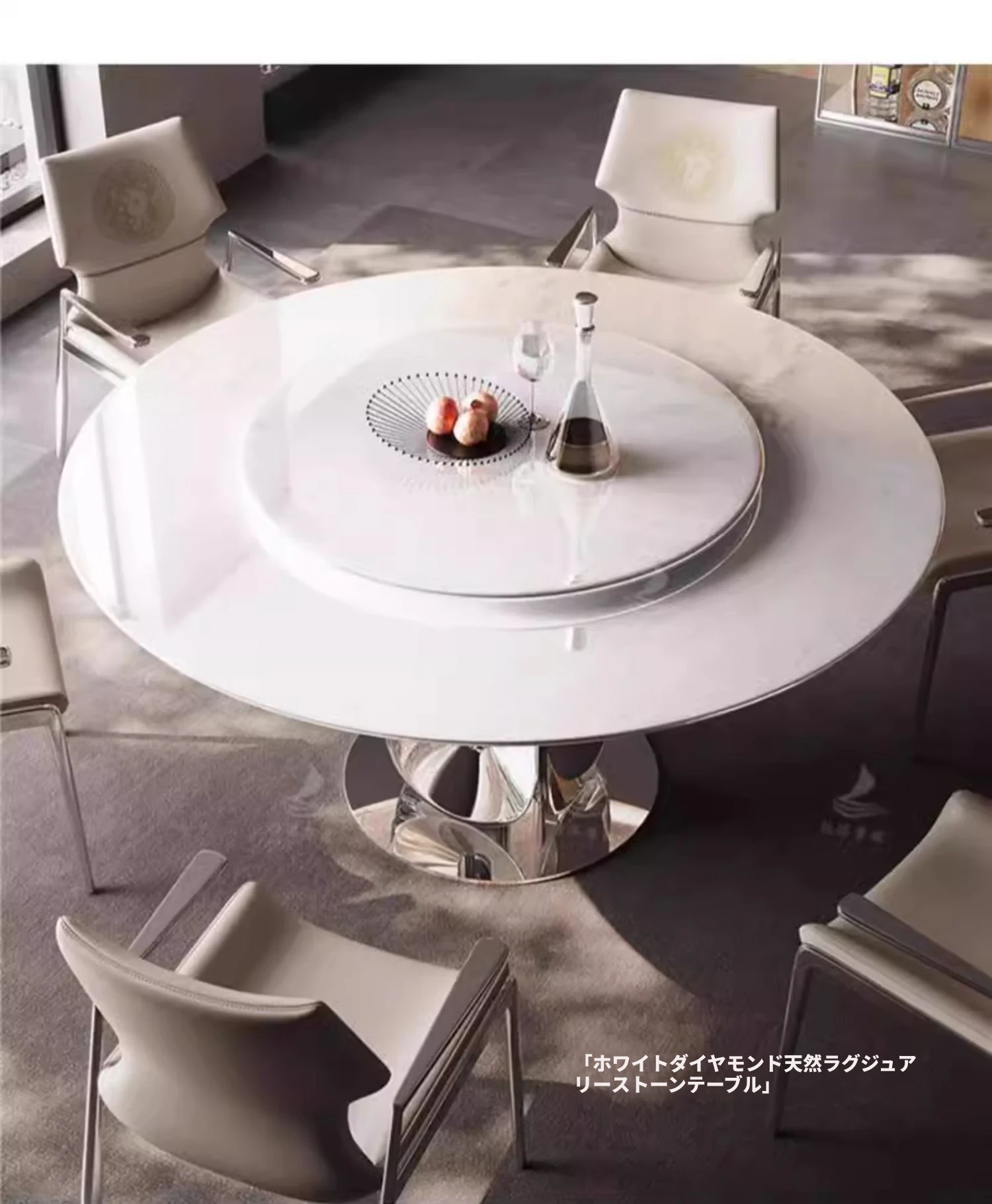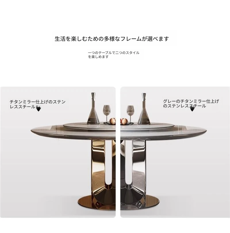 ダイニングテーブル/1.35M/カリビアンアイスストーン/チタンシルバー/70cm回転台付き