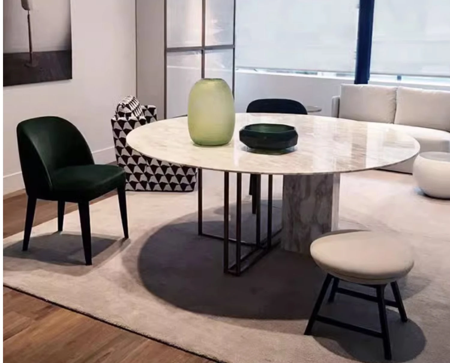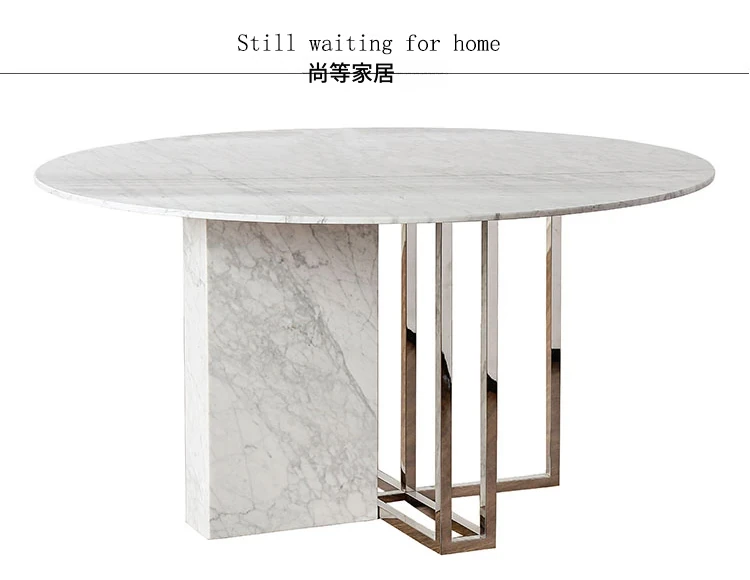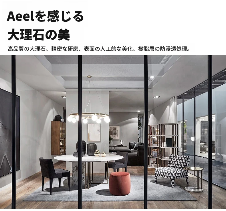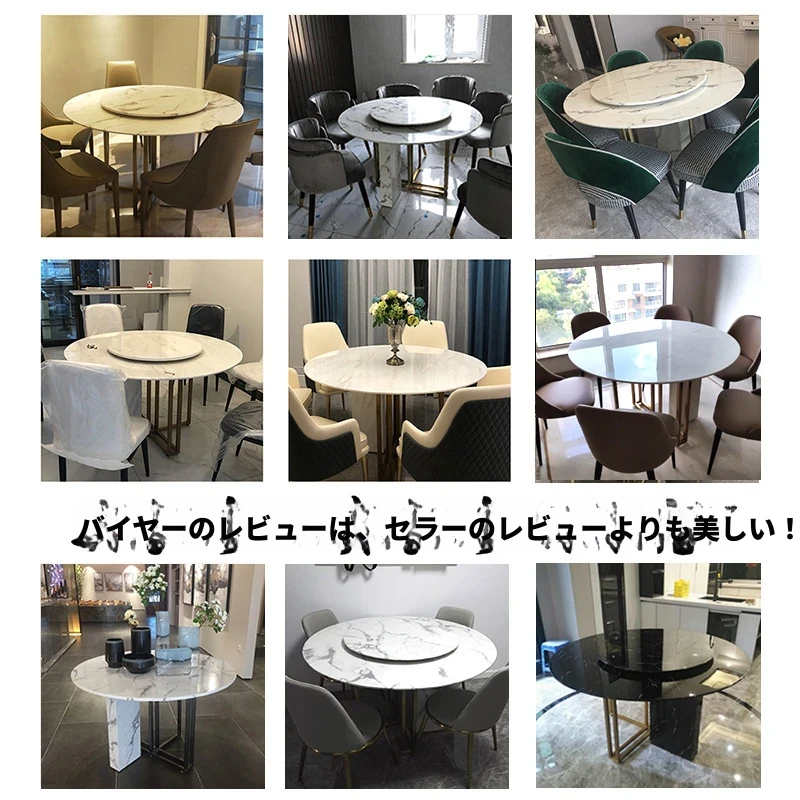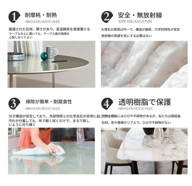 天然大理石の円形ダイニングテーブル|北欧風のシンプルでラグジュアリーなデザイン|高級感あふれるホワイトストーン仕上げ|家庭にぴったりの洗練された食卓を演出!