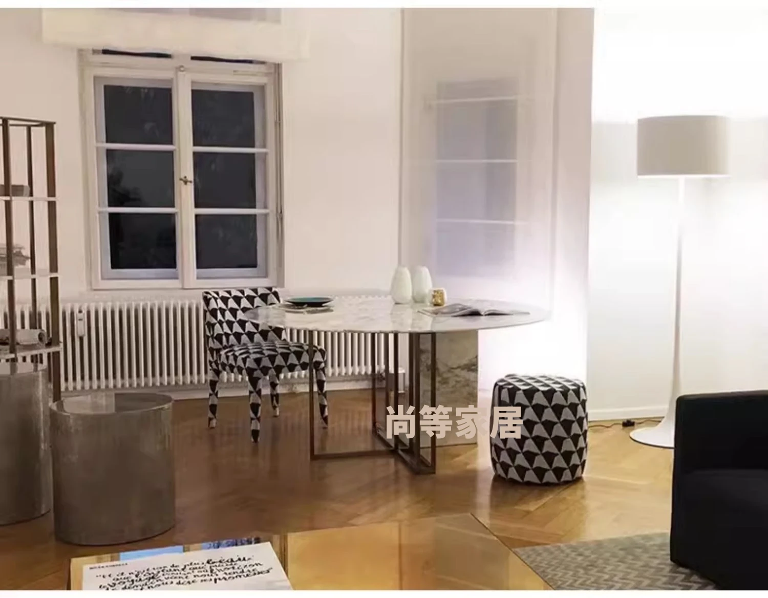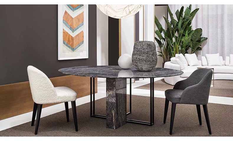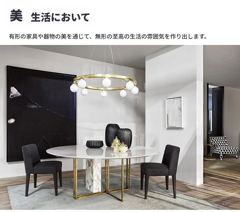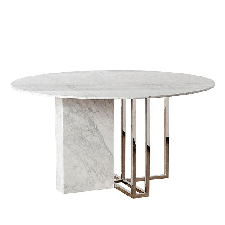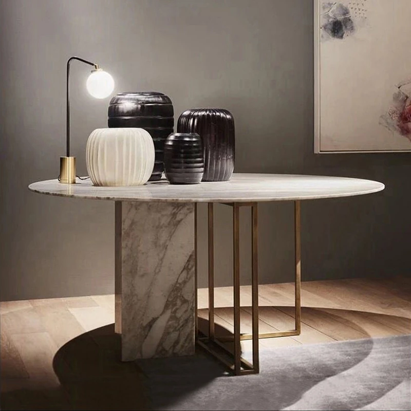 天然大理石の円形ダイニングテーブル|北欧風のシンプルでラグジュアリーなデザイン|高級感あふれるホワイトストーン仕上げ|家庭にぴったりの洗練された食卓を演出!