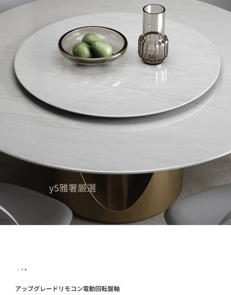 カリアイス玉天然石ラウンドテーブル【電動回転*1.5メートル/シャンパンゴールド