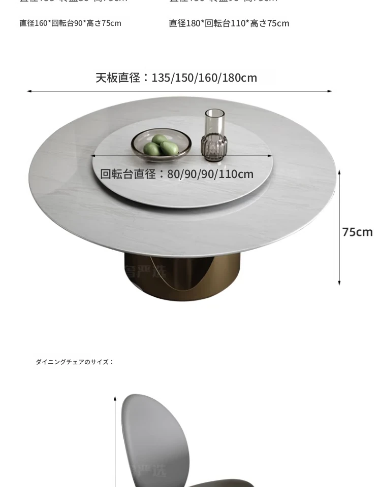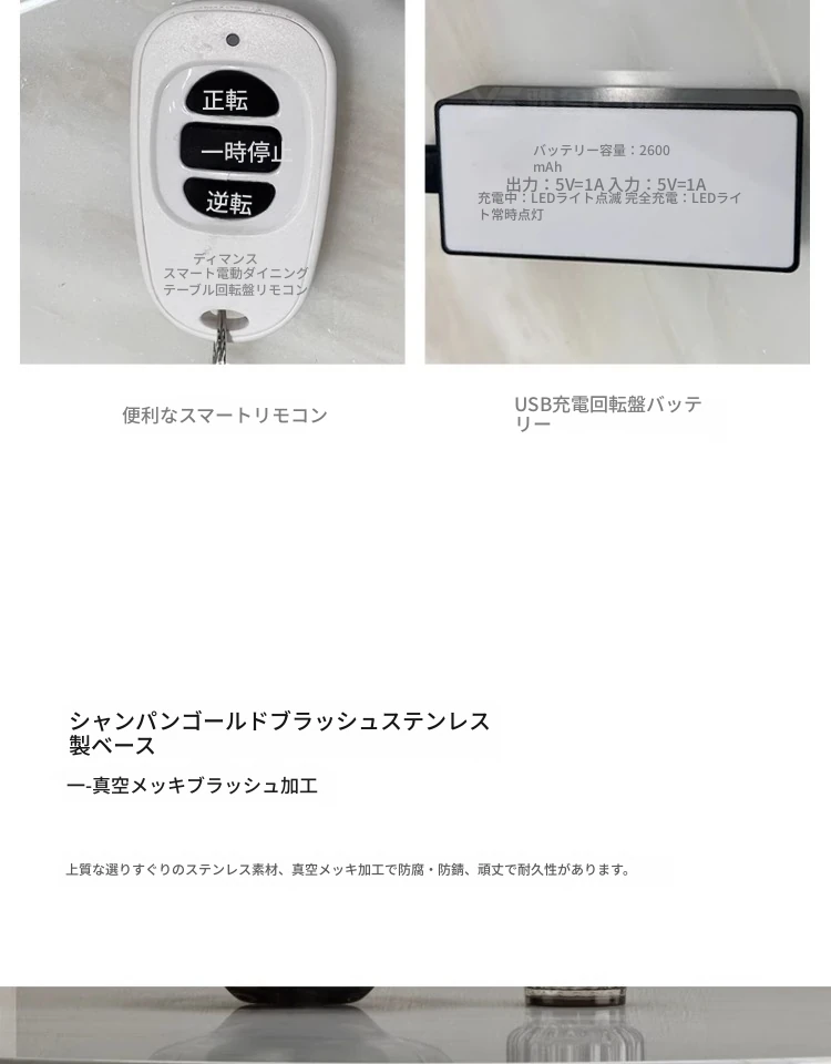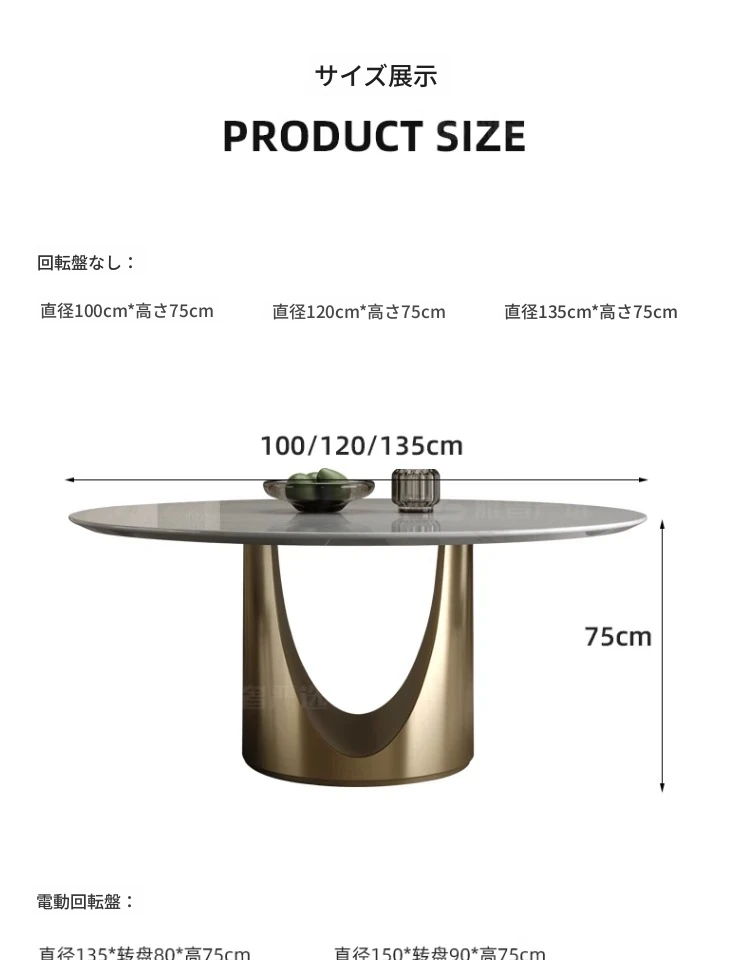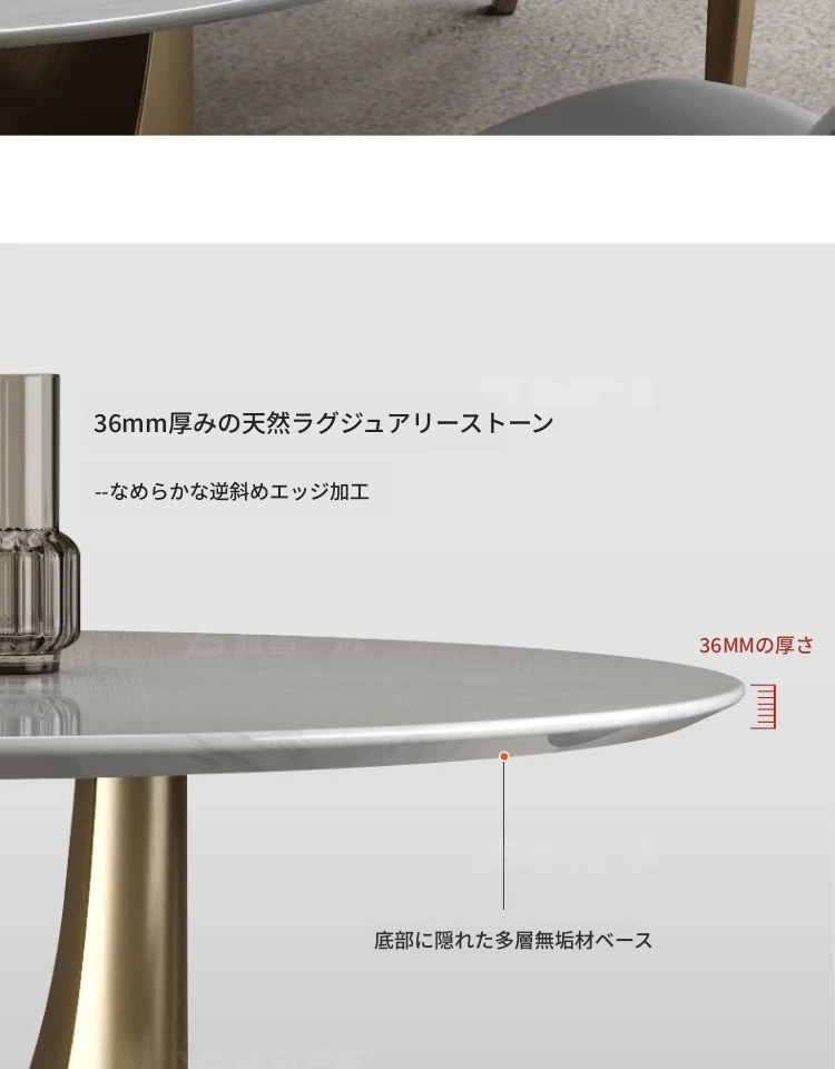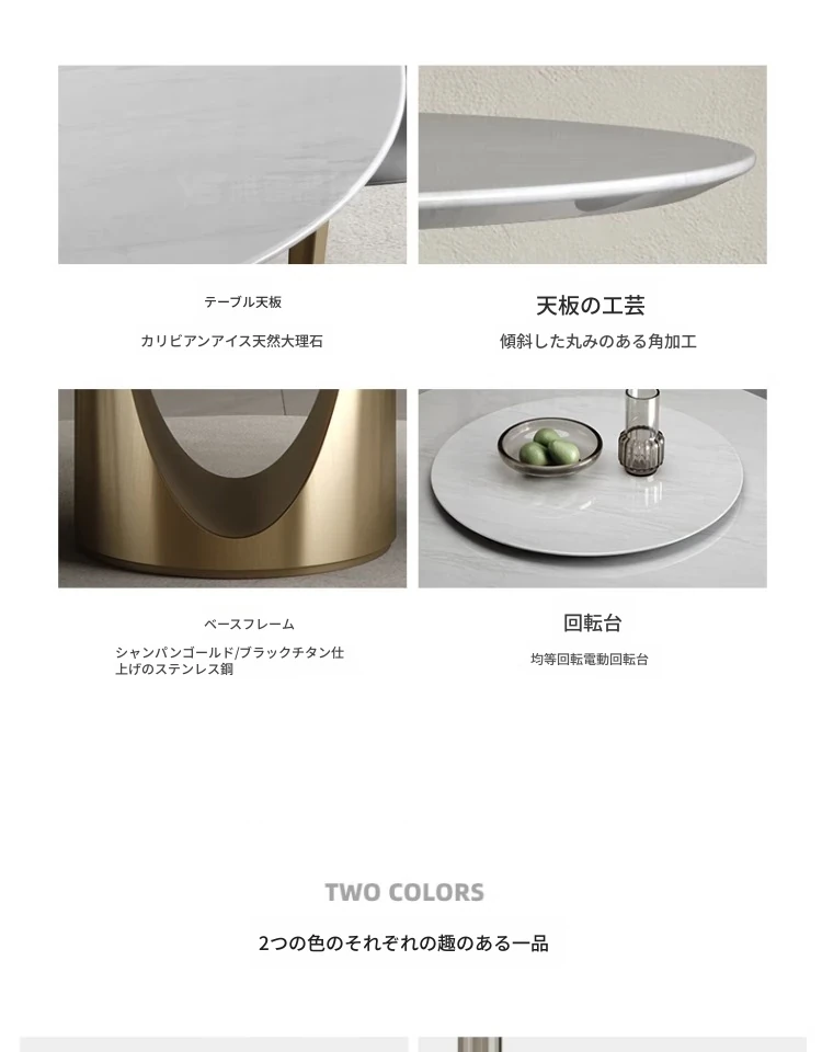 カリアイス玉天然石ラウンドテーブル【電動回転*1.35メートル/シャンパンゴールド】