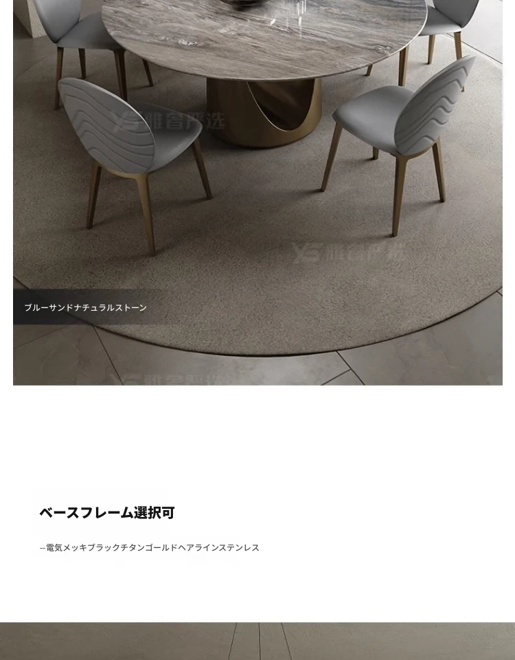 カリアイス玉天然石ラウンドテーブル【電動回転*1.8メートル/シャンパンゴールド