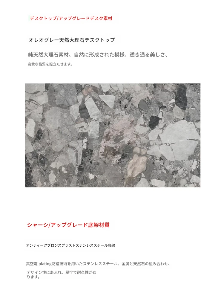 オレオグレー天然石ダイニングテーブル【1.8*0.9M】偽物は十倍の罰金