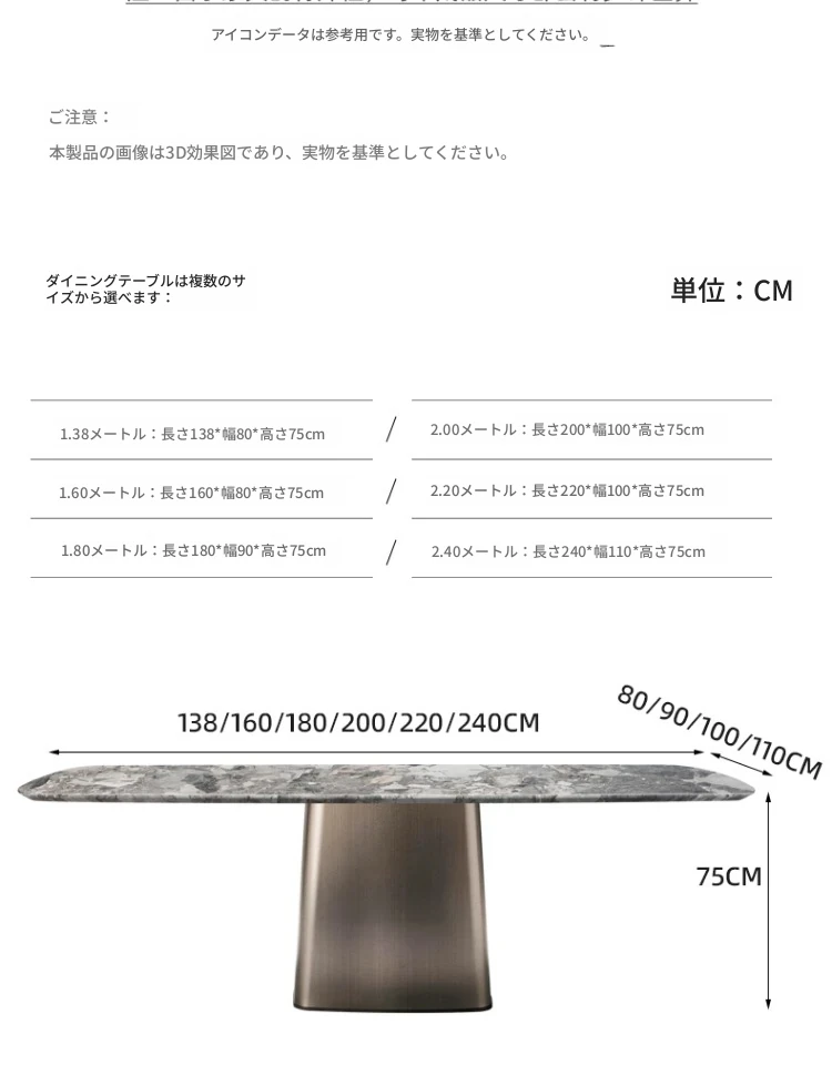 オレオグレー天然石ダイニングテーブル【2.4*1.0M】偽物は十倍の罰金