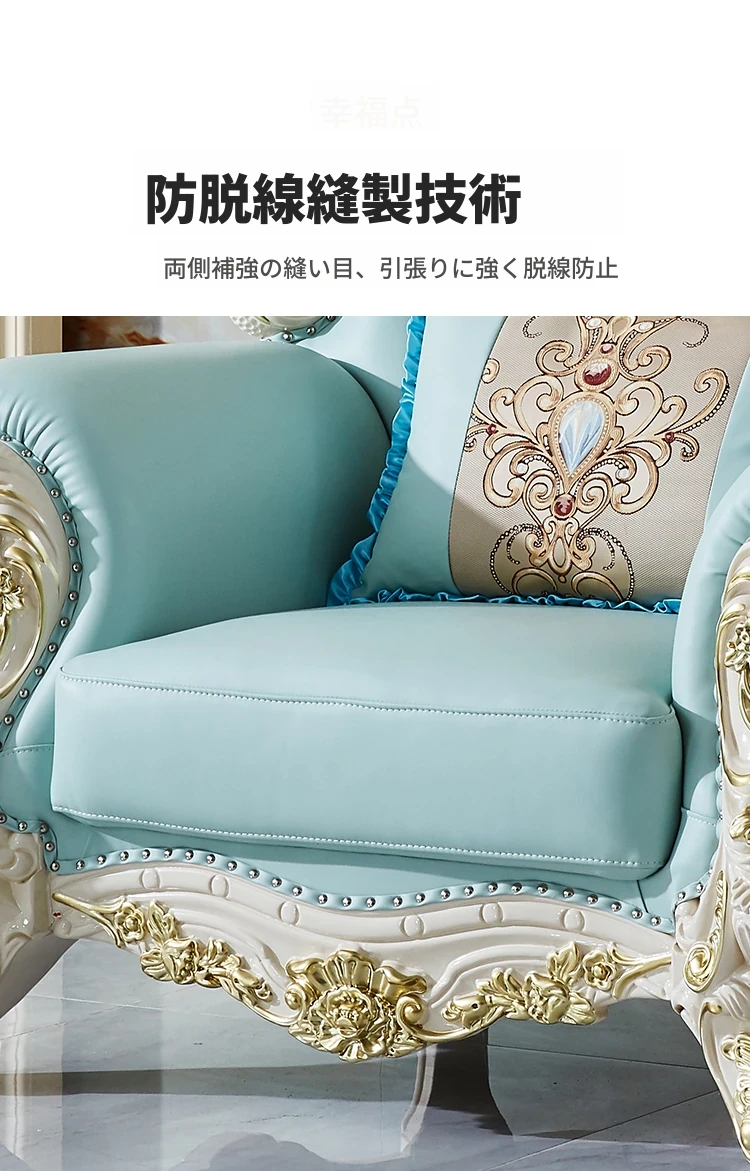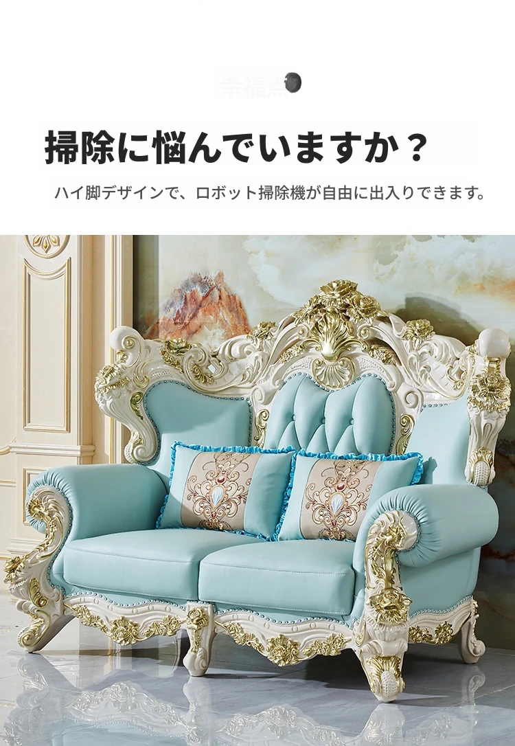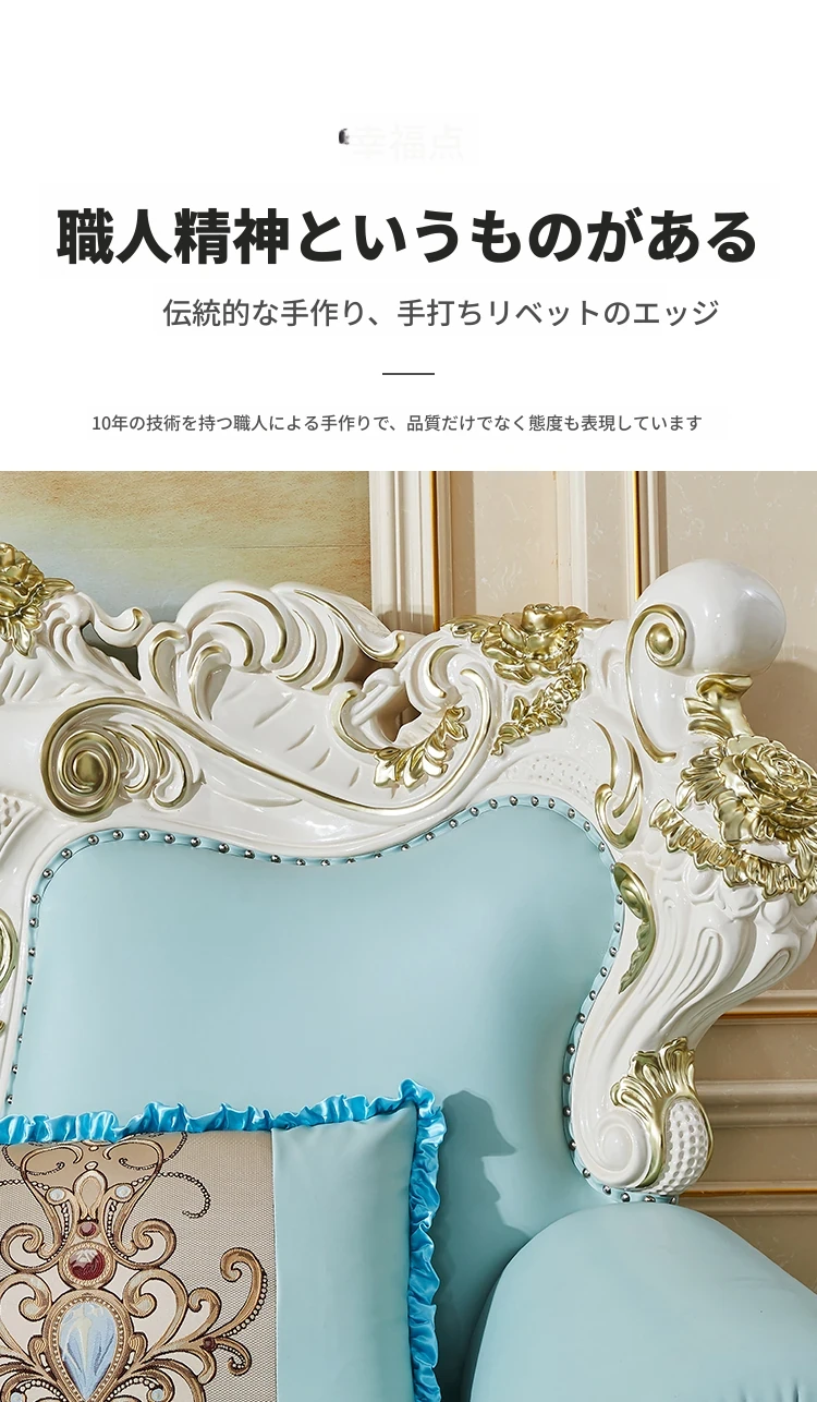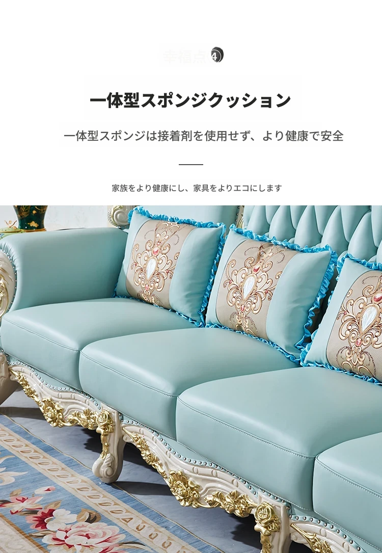 ヨーロピアンスタイル本革ソファ124セット|豪華な大邸宅にぴったり!アイボリーホワイトの高級無垢材使用、リビングを華やかに演出する全室用家具セット。
