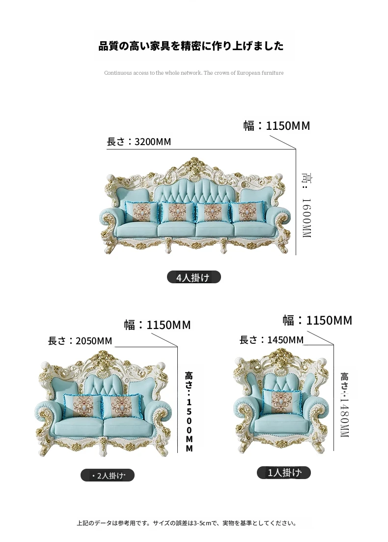 ブラックエボニーの欧風ソファー、ヴィラ用両面彫刻デザイン、豪華高級クラウン家具セット、宝石ブルーの本革使用!洗練されたスタイルで、贅沢な空間を演出します。