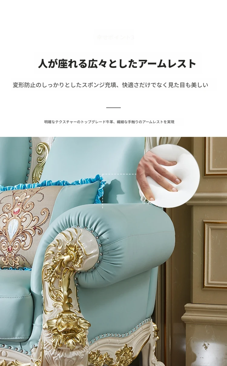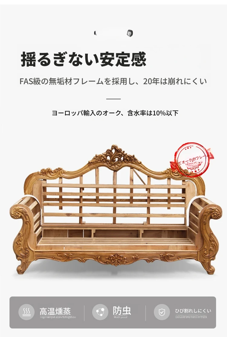 エレガントな欧風本革ソファ|アメリカンラグジュアリー全無垢材使用|両面彫刻の高級白色123大サイズソファ|広々としたお住まいにぴったり!