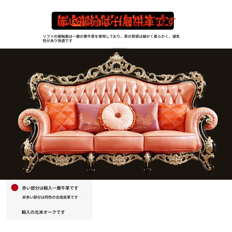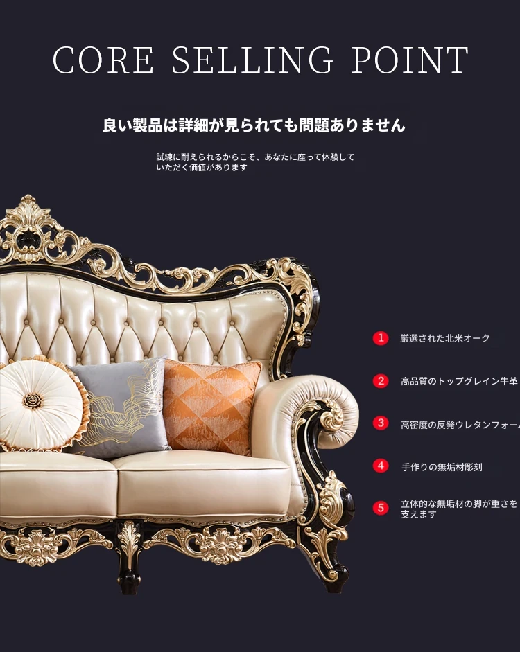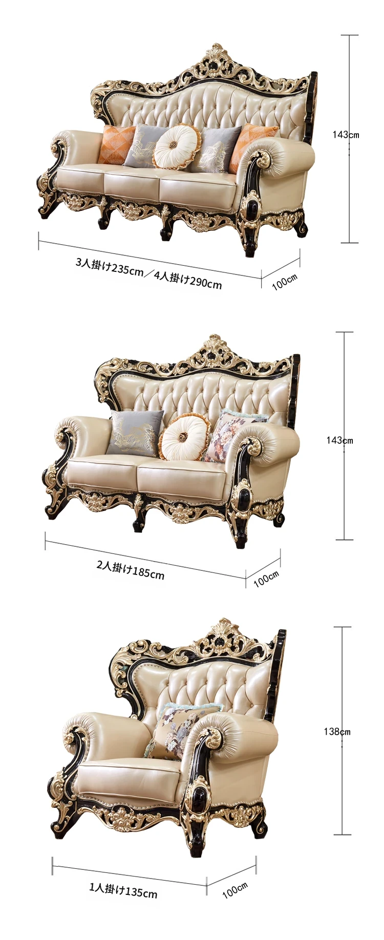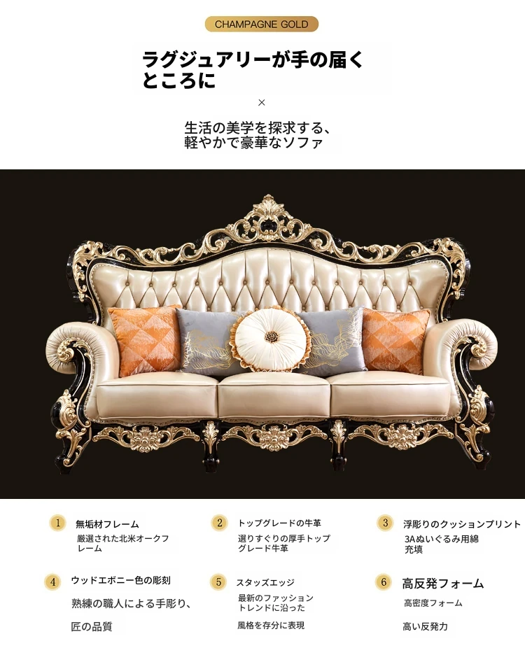 エレガントな欧風本革ソファ|アメリカンラグジュアリー全無垢材使用|両面彫刻の高級白色123大サイズソファ|広々としたお住まいにぴったり!