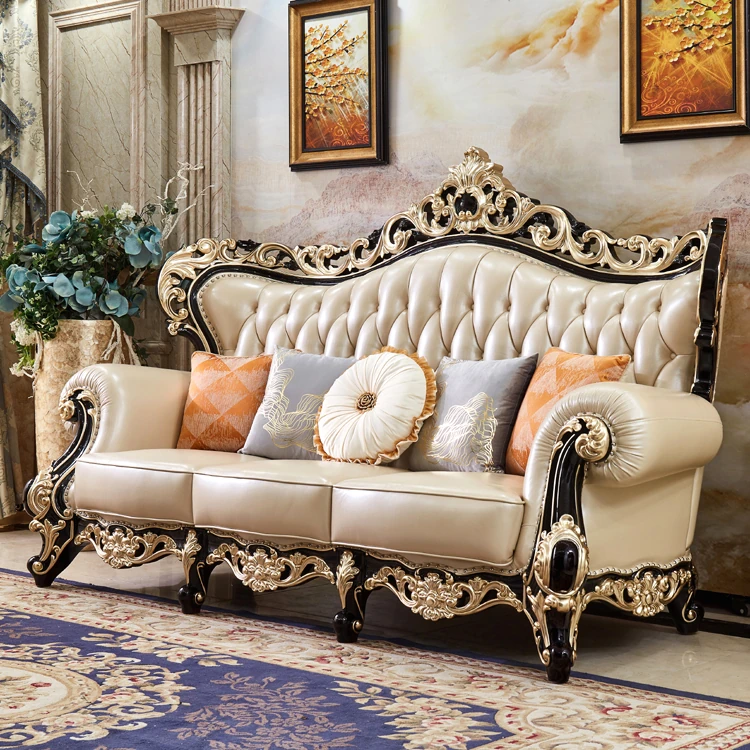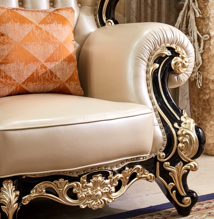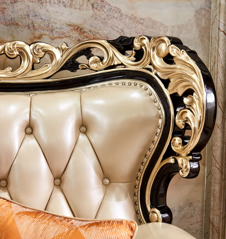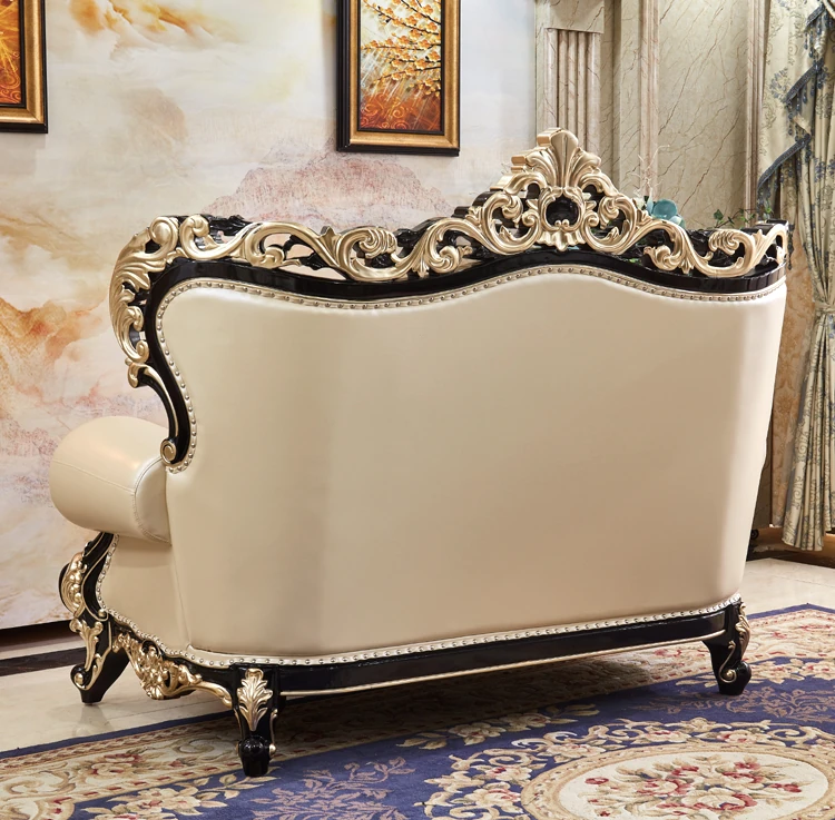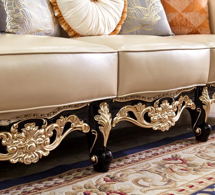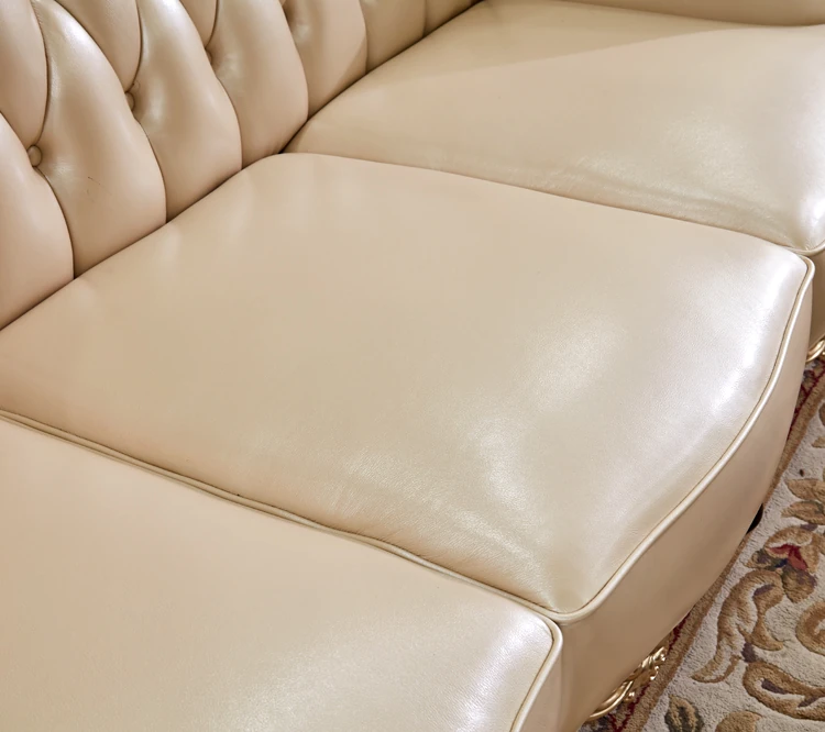 エレガントな欧風本革ソファ|アメリカンラグジュアリー全無垢材使用|両面彫刻の高級白色123大サイズソファ|広々としたお住まいにぴったり!