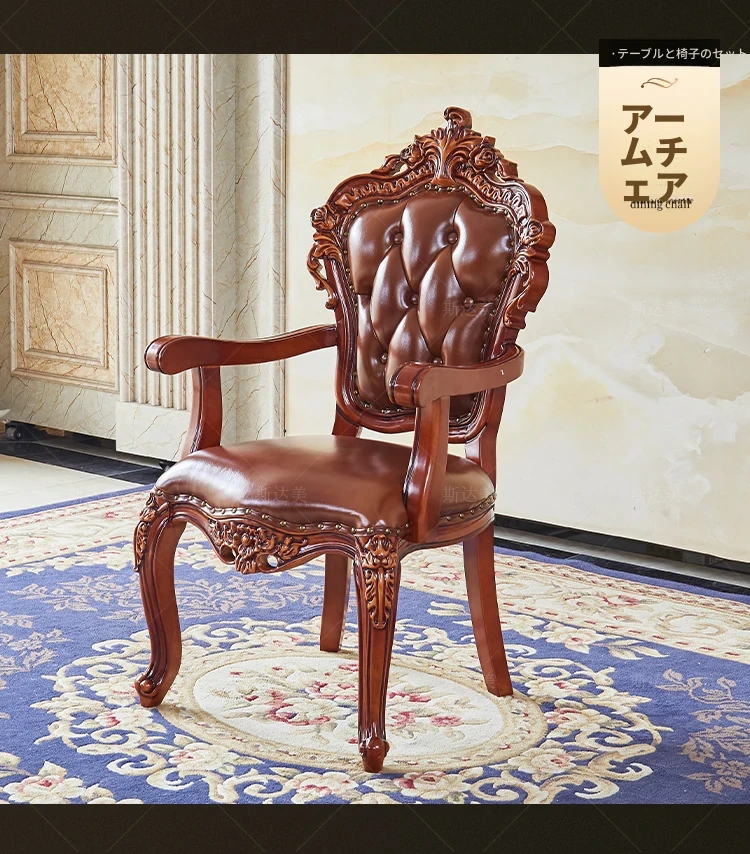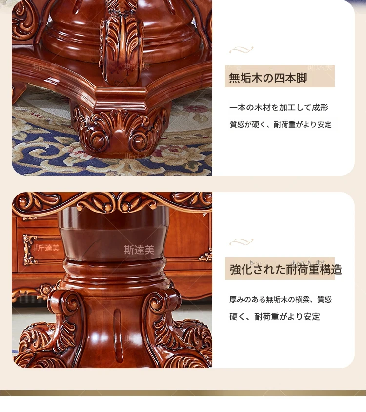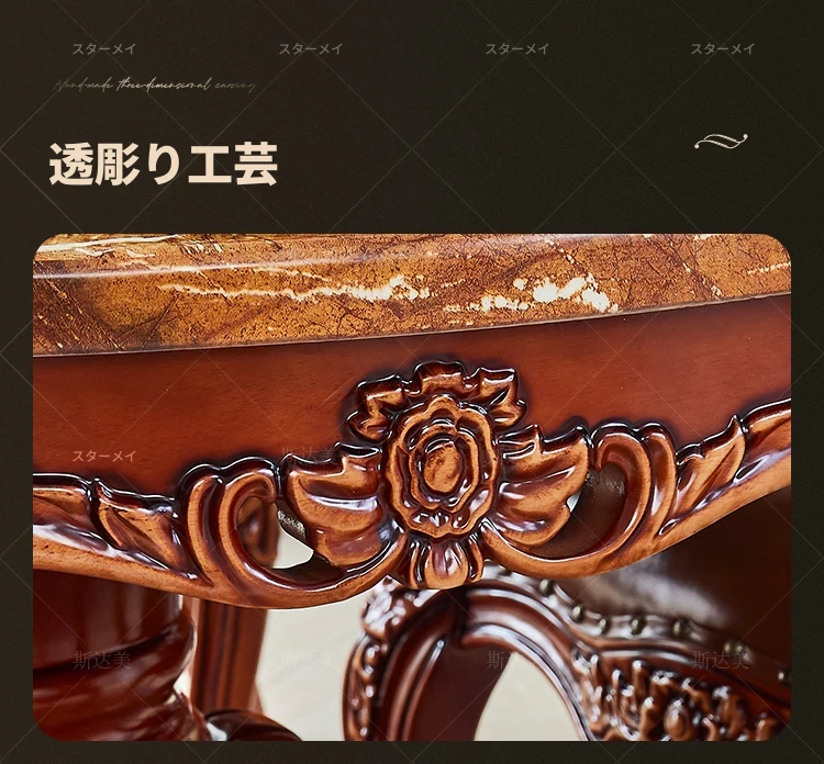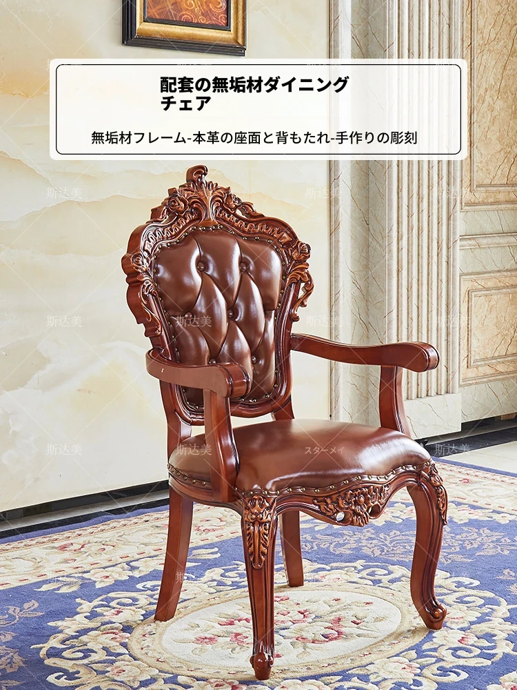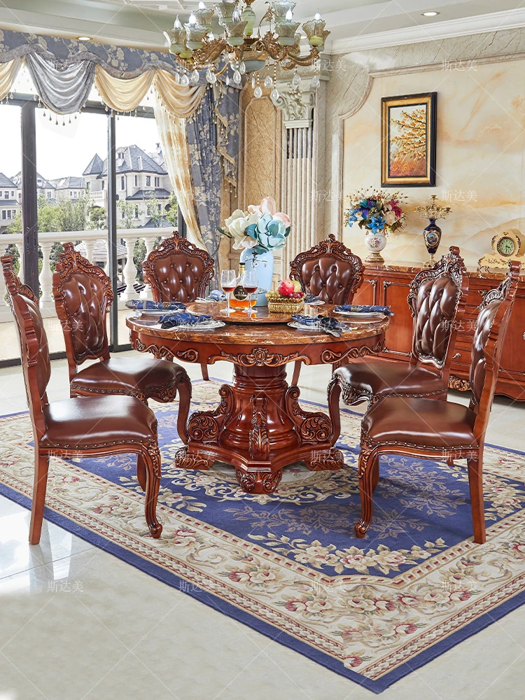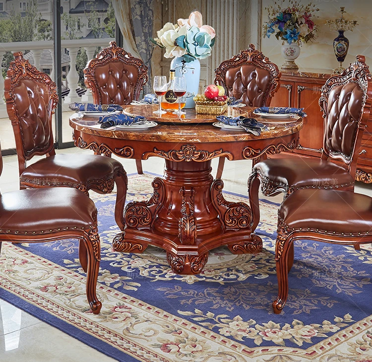 欧風全実木のレトロダイニングテーブルセット - 電動火鍋機能付き、回転式大理石テーブル&椅子のコンビネーションで、家族や友人との特別な食事を演出します!