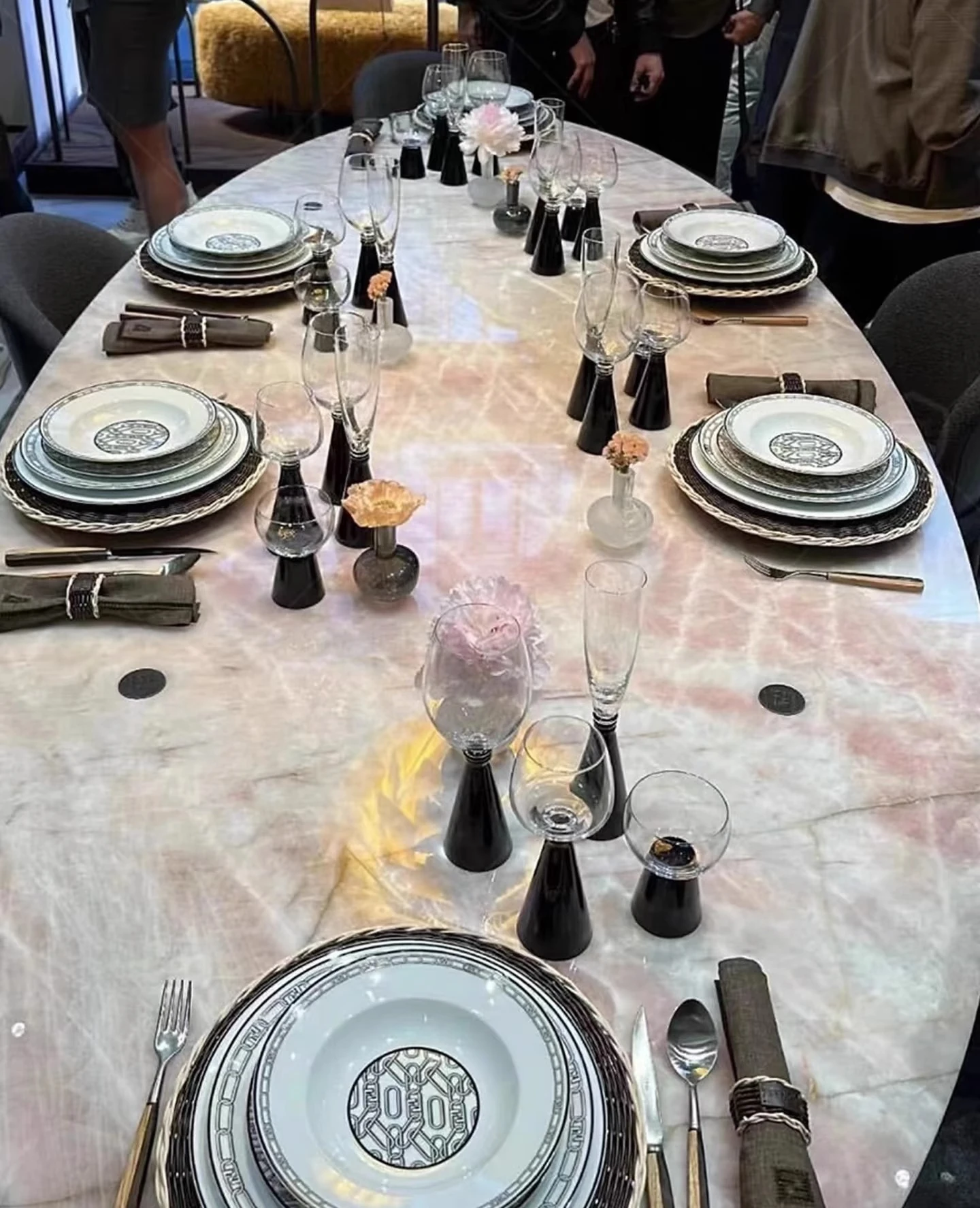 2024年新作!イタリアンラグジュアリーの全室インテリア提案、広々とした大邸宅にぴったりな天然サファイア大理石のダイニングテーブル。洗練されたデザインで、特別な食卓を演出します!