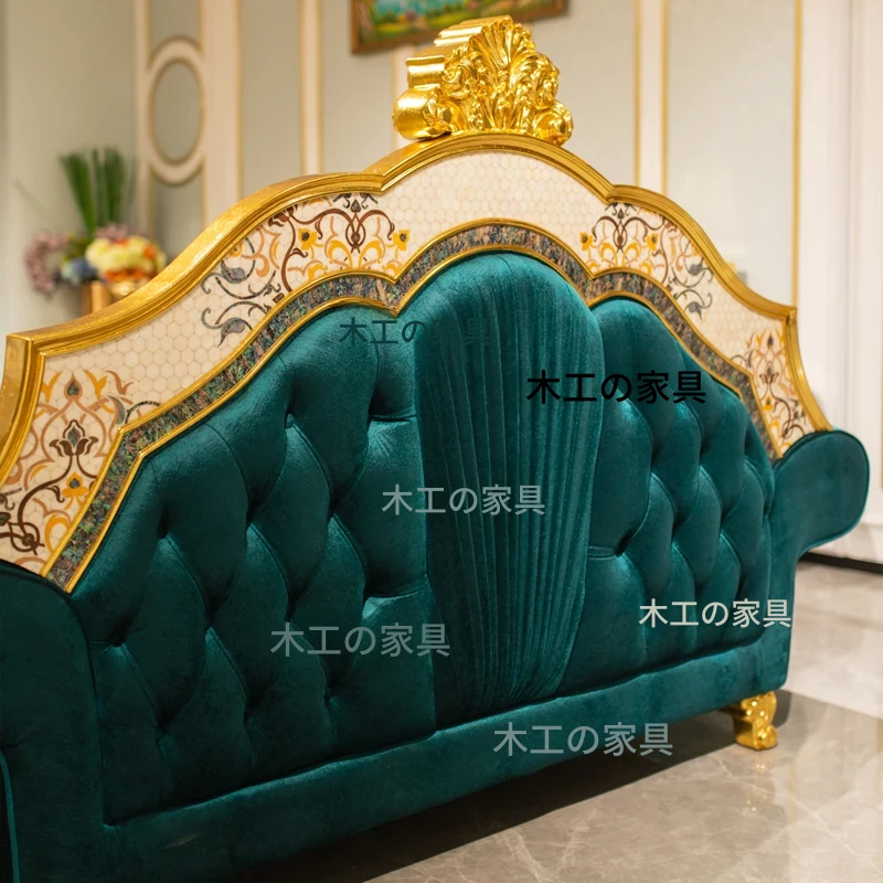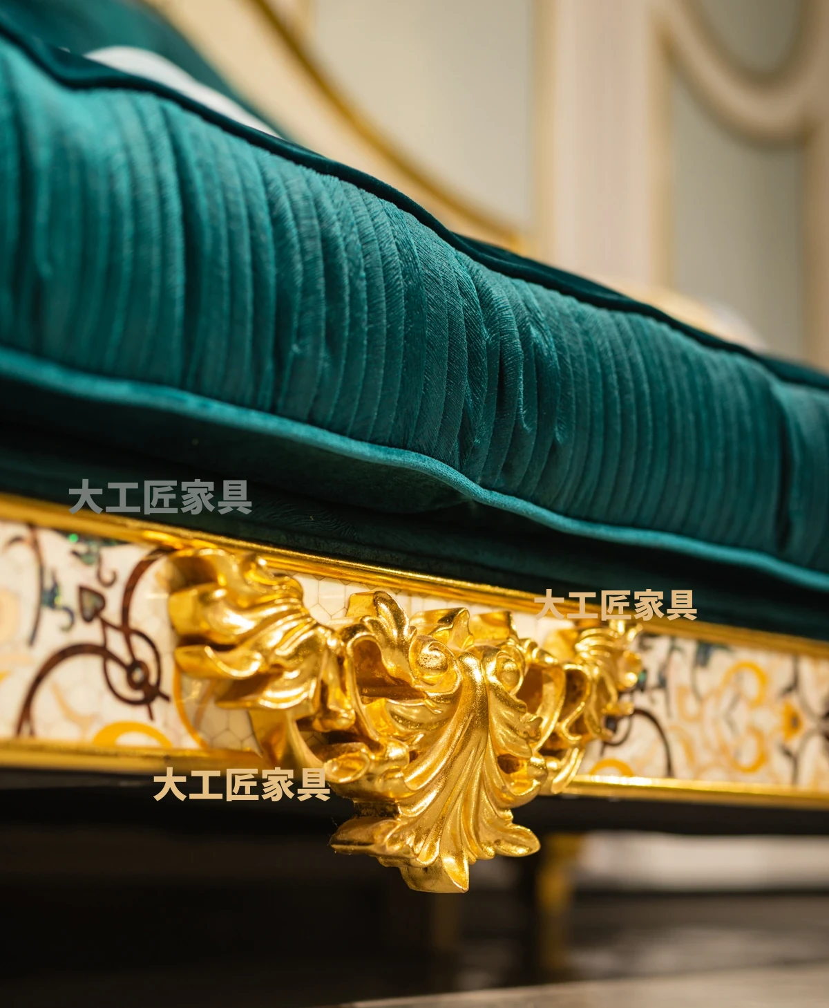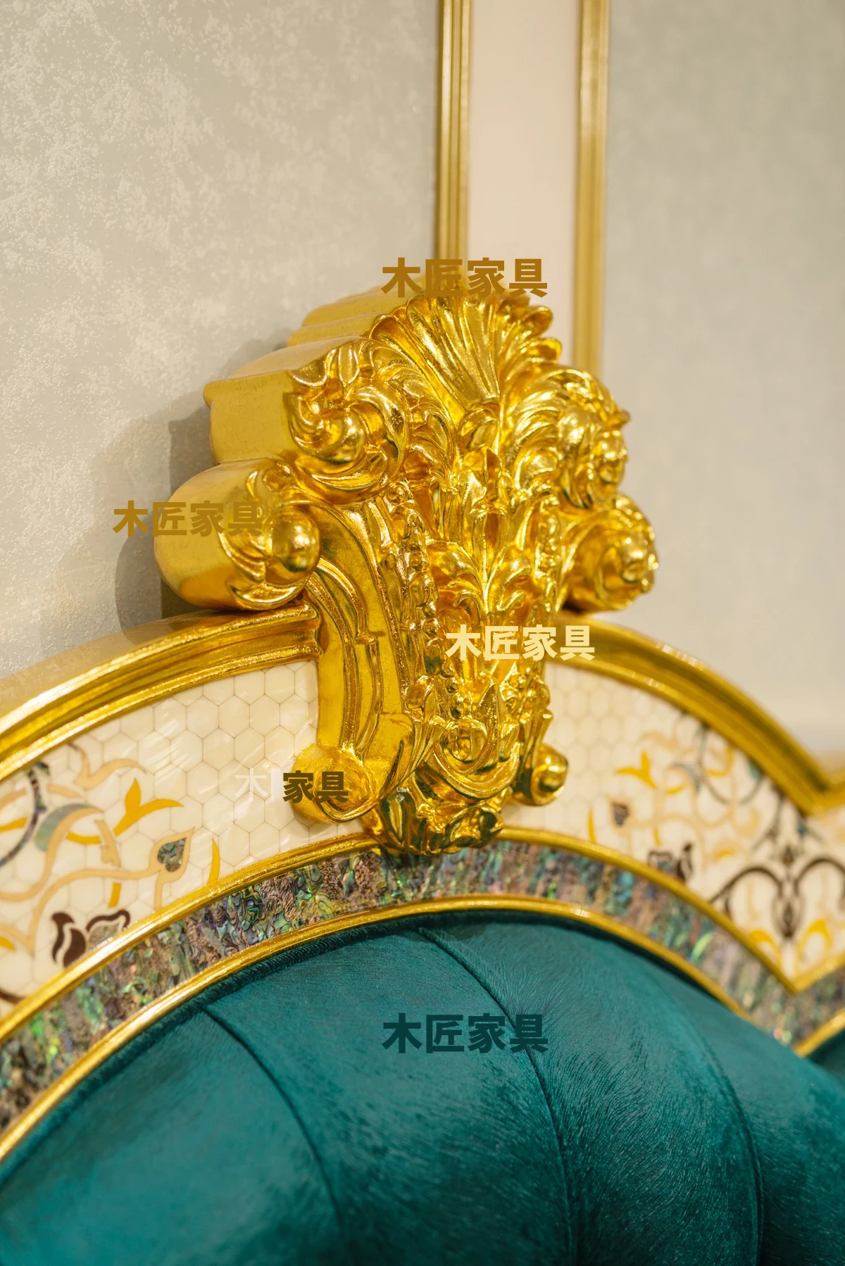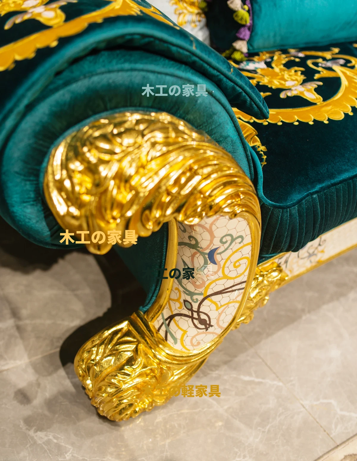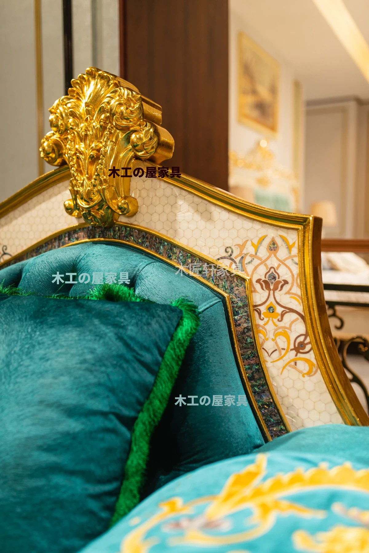 フランス宮廷風シェルデザインソファー|欧州の豪華な無垢材家具|レトロな別荘にぴったりな高級金箔ファブリック使用!上質なインテリアを演出し、特別な空間を創造します。