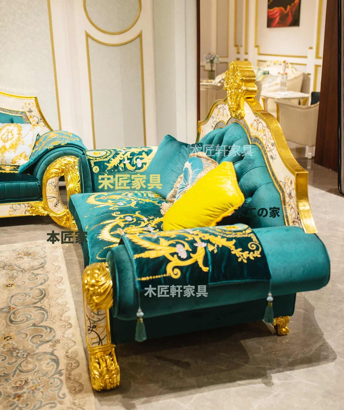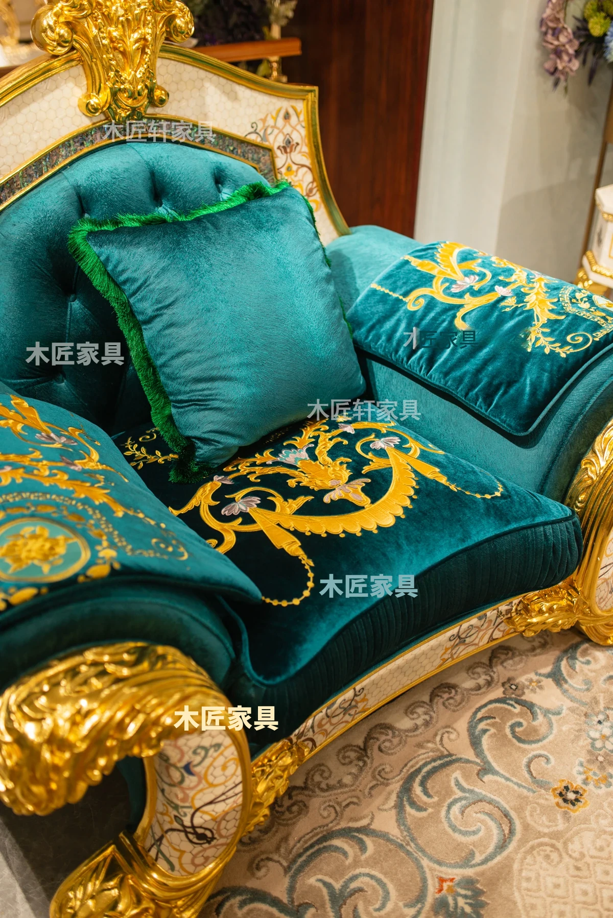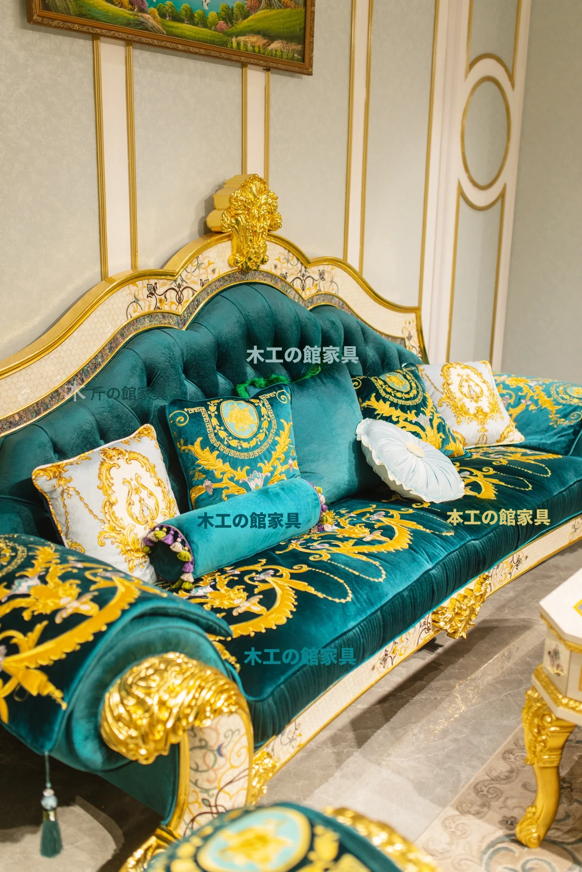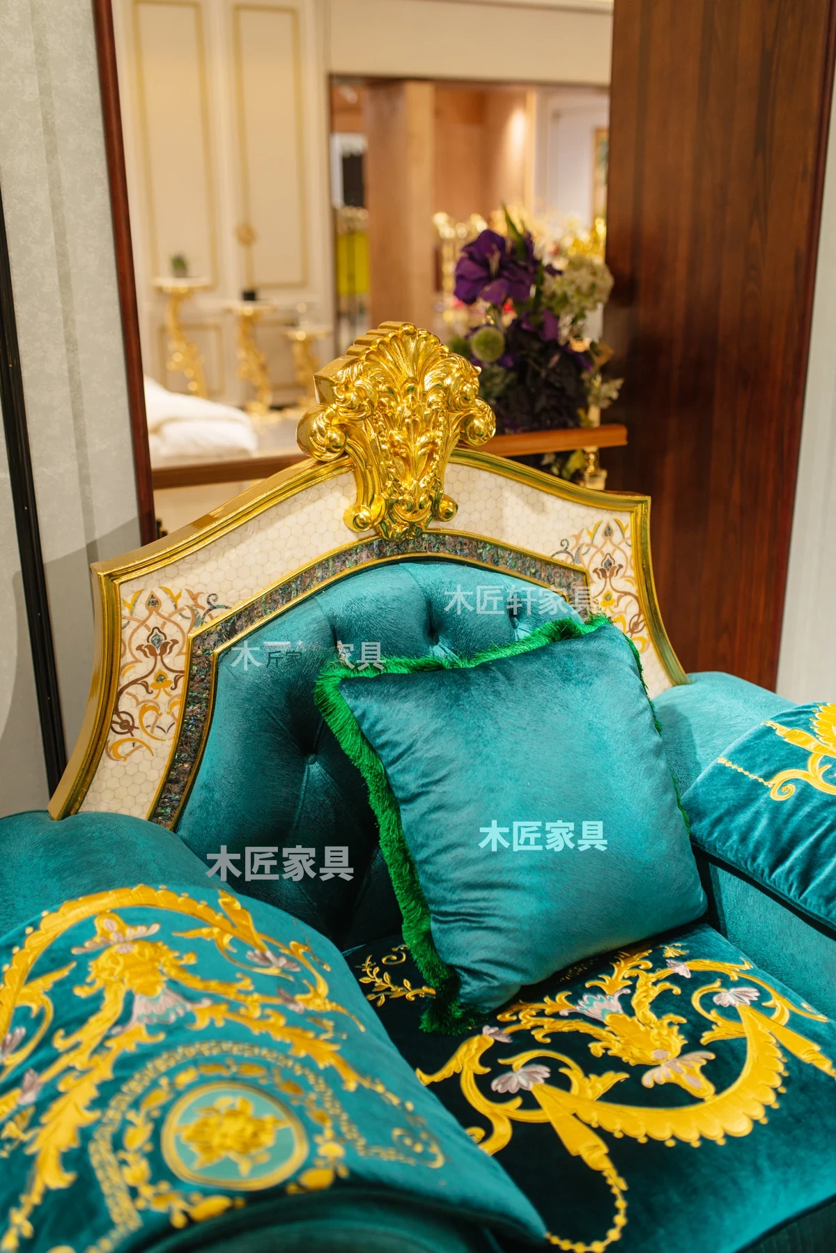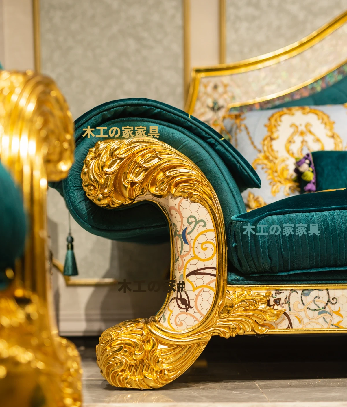 フランス宮廷風シェルデザインソファー|欧州の豪華な無垢材家具|レトロな別荘にぴったりな高級金箔ファブリック使用!上質なインテリアを演出し、特別な空間を創造します。