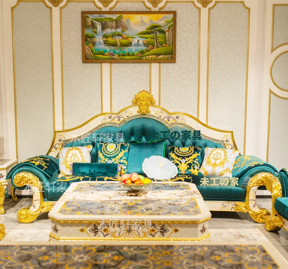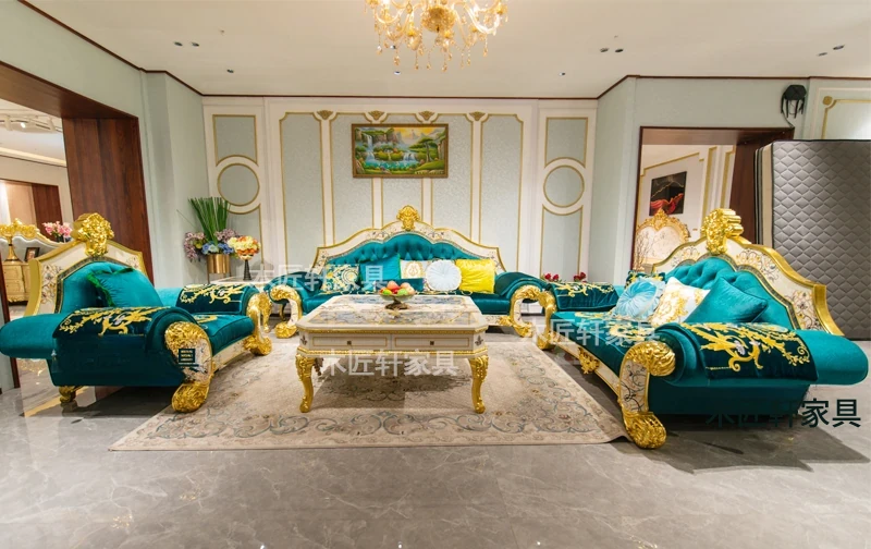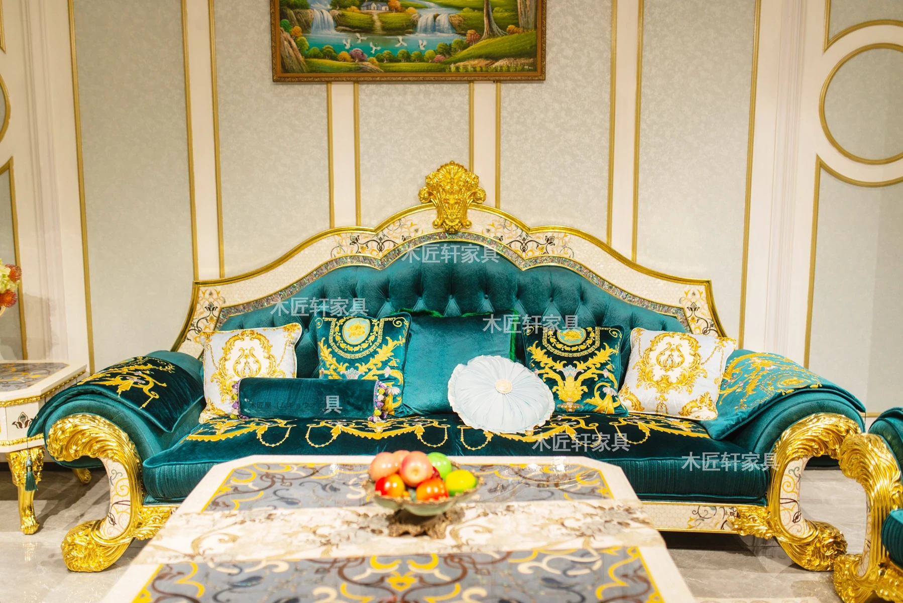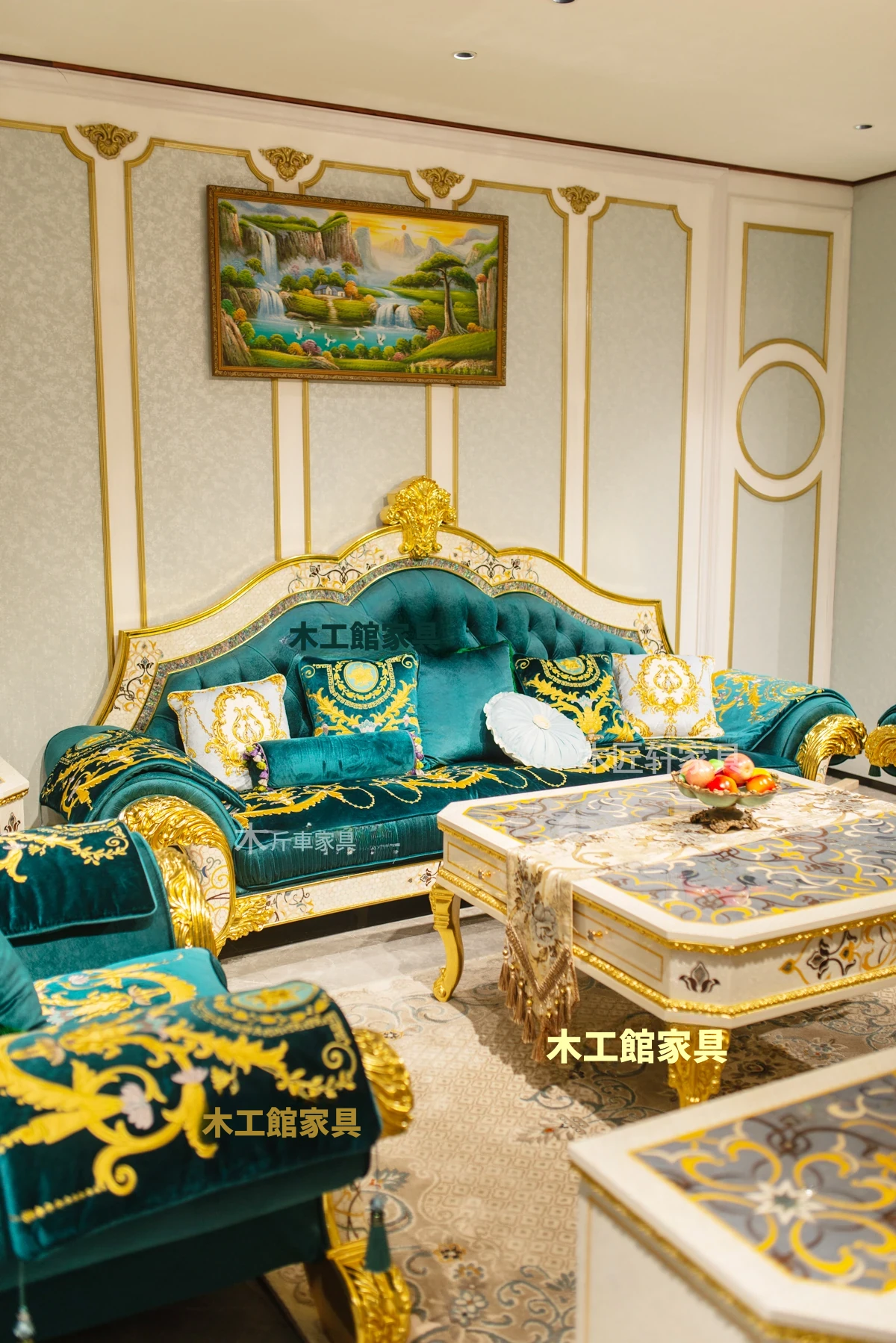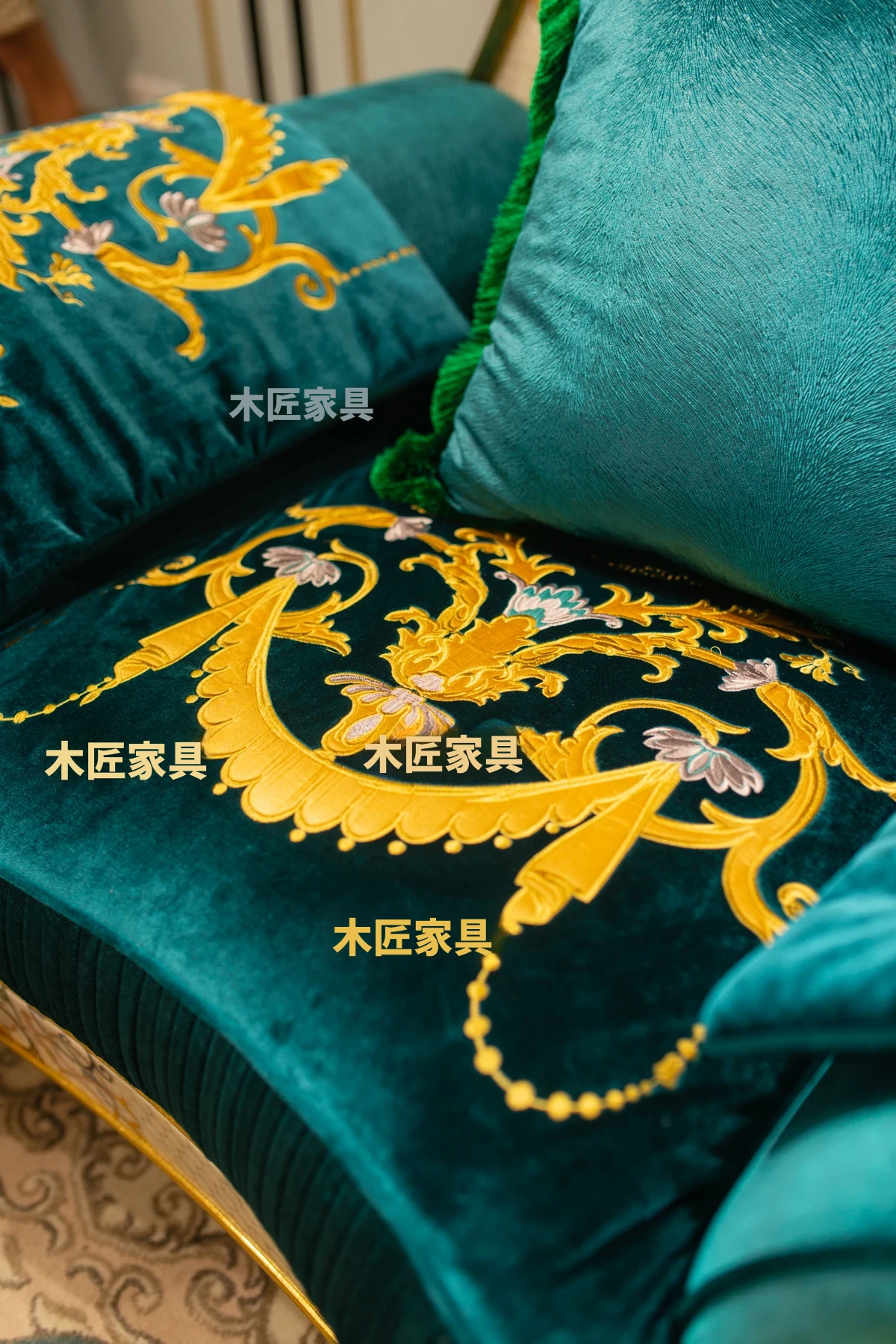 フランス宮廷風シェルデザインソファー|欧州の豪華な無垢材家具|レトロな別荘にぴったりな高級金箔ファブリック使用!上質なインテリアを演出し、特別な空間を創造します。