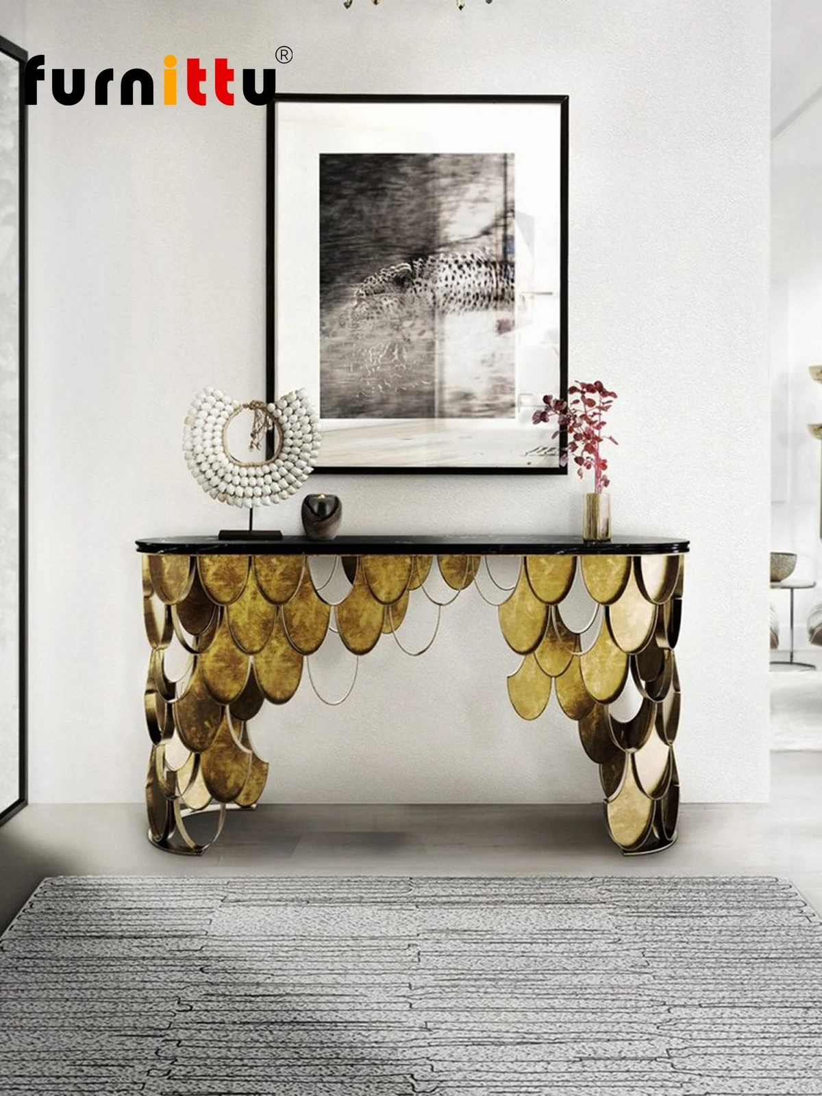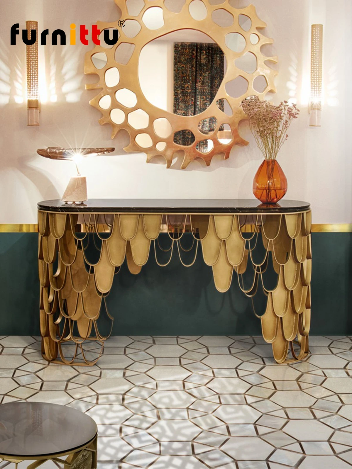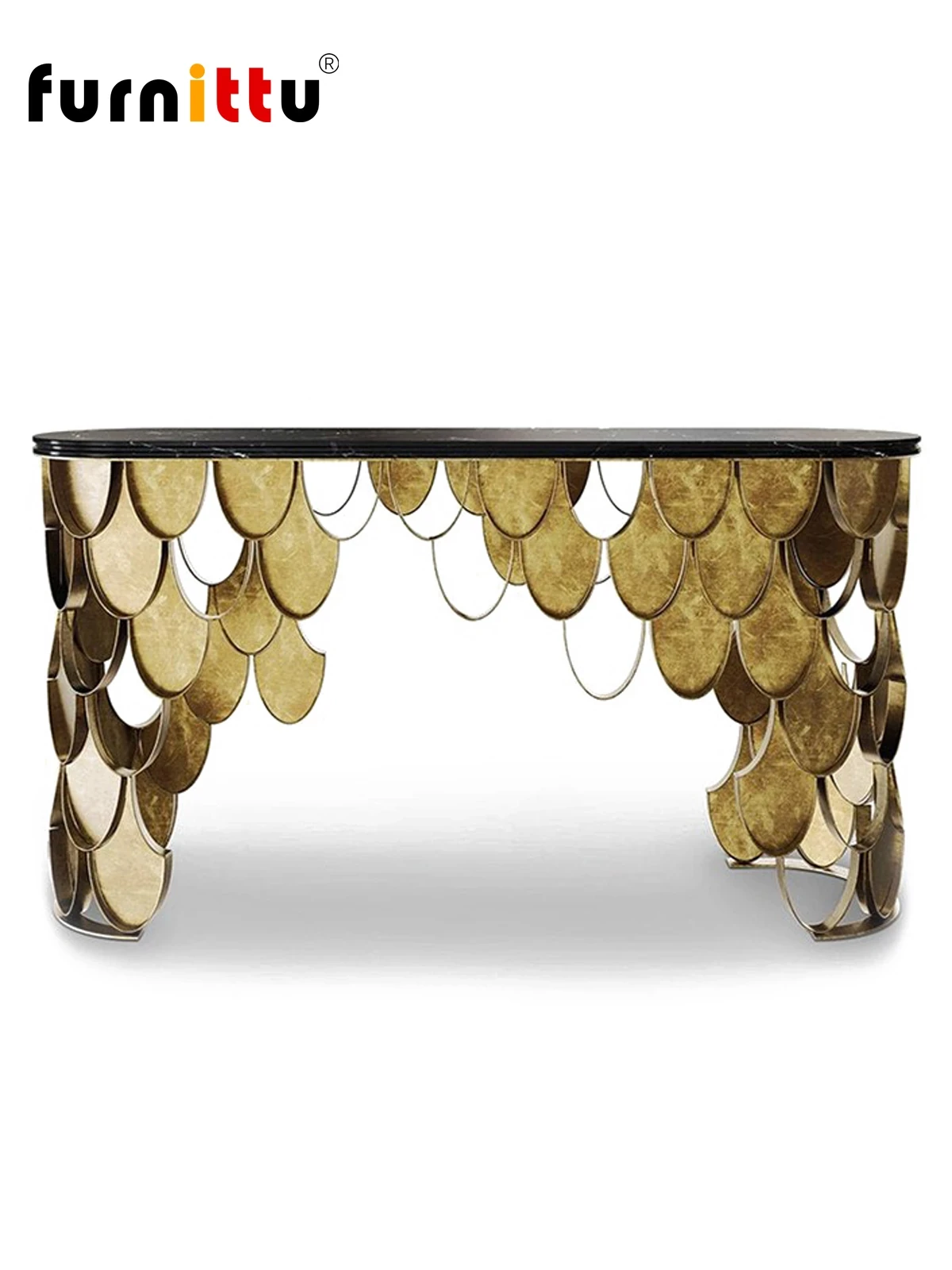 furnittuデザイナーズ家具 コルテーブル 錦鯉デザインの創造的な高級ダイニングテーブル 大理石と金属のラウンドテーブルで洗練された食空間を演出!