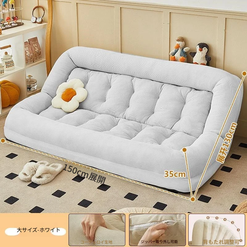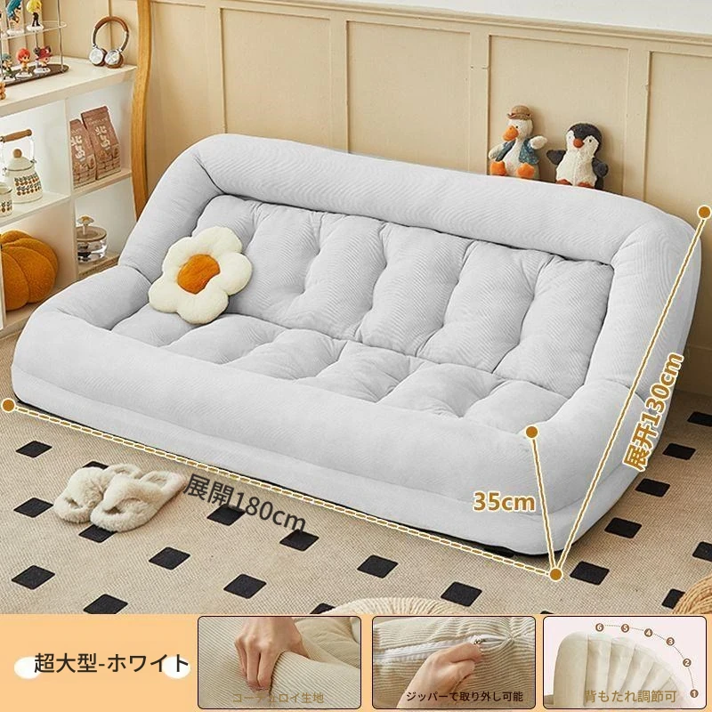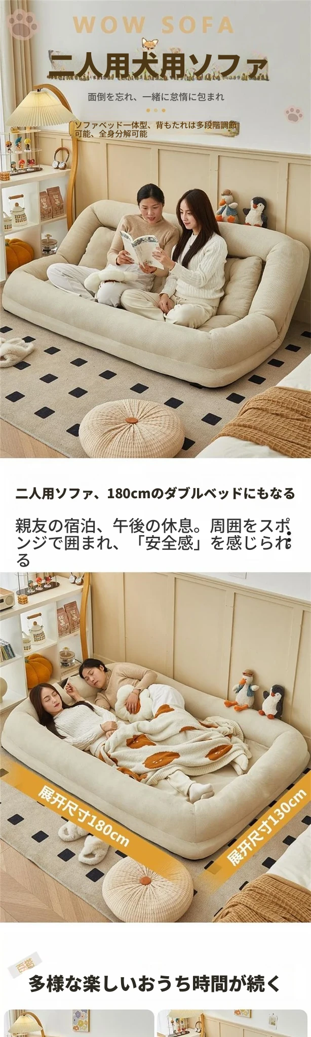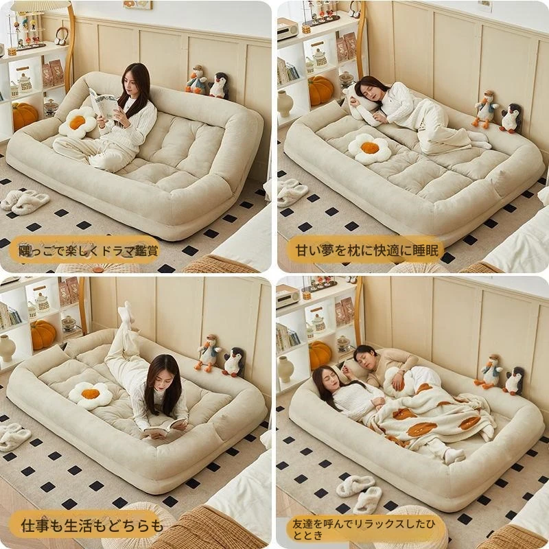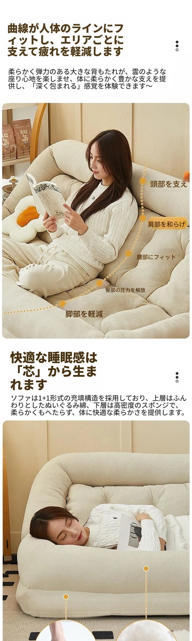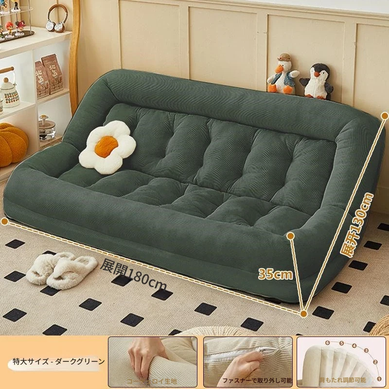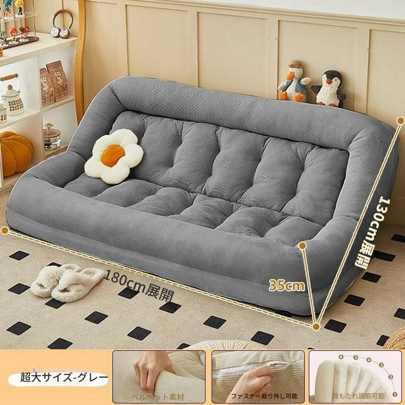 超巨大リラックスソファ!寝転んでも眠れる折りたたみ式2WAYソファベッド。狭い部屋にもぴったりなダブル座椅子で、快適なタタミスペースを実現!