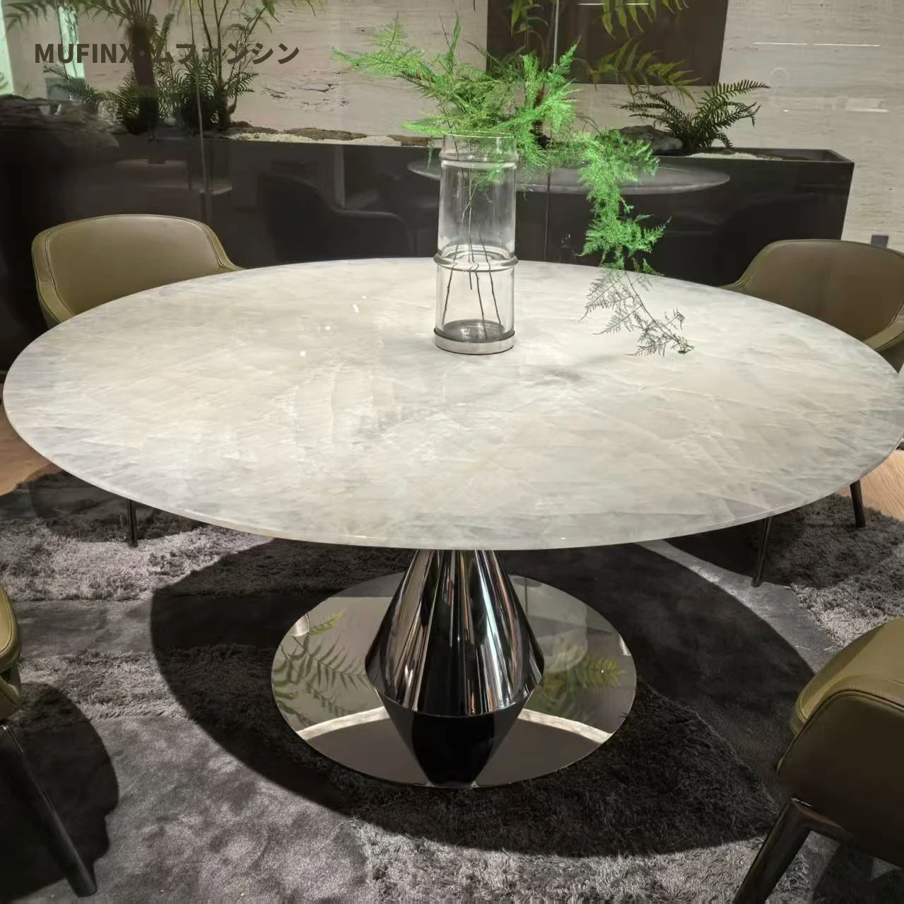 イタリアンミニマルデザイン大理石ダイニングテーブル2023新作!高級感溢れるラグジュアリーな円形テーブルで、広々とした邸宅にぴったり。スタイリッシュなインテリアを演出し、特別なひとときをお届けします。