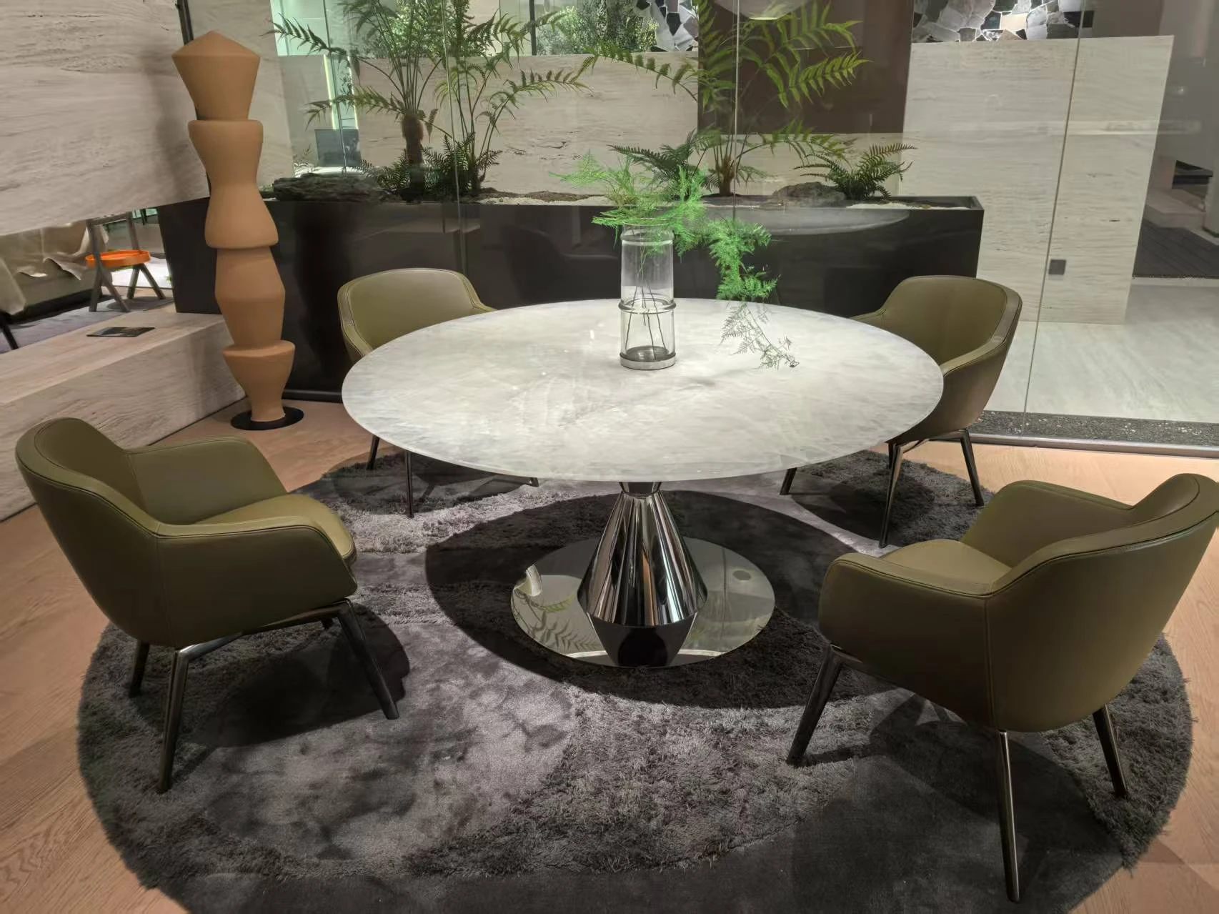 イタリアンラグジュアリー現代ダイニングテーブルセット|高級ヴィラや香港スタイルの家庭にぴったり!天然大理石のラウンドテーブルで、優雅な食事体験を実現。おしゃれで洗練された空間を演出します!
