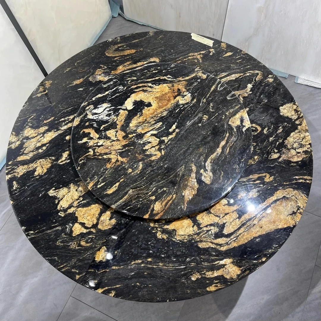 宇宙金天然奢石ダイニングテーブル+回転盤【一対一板選択】