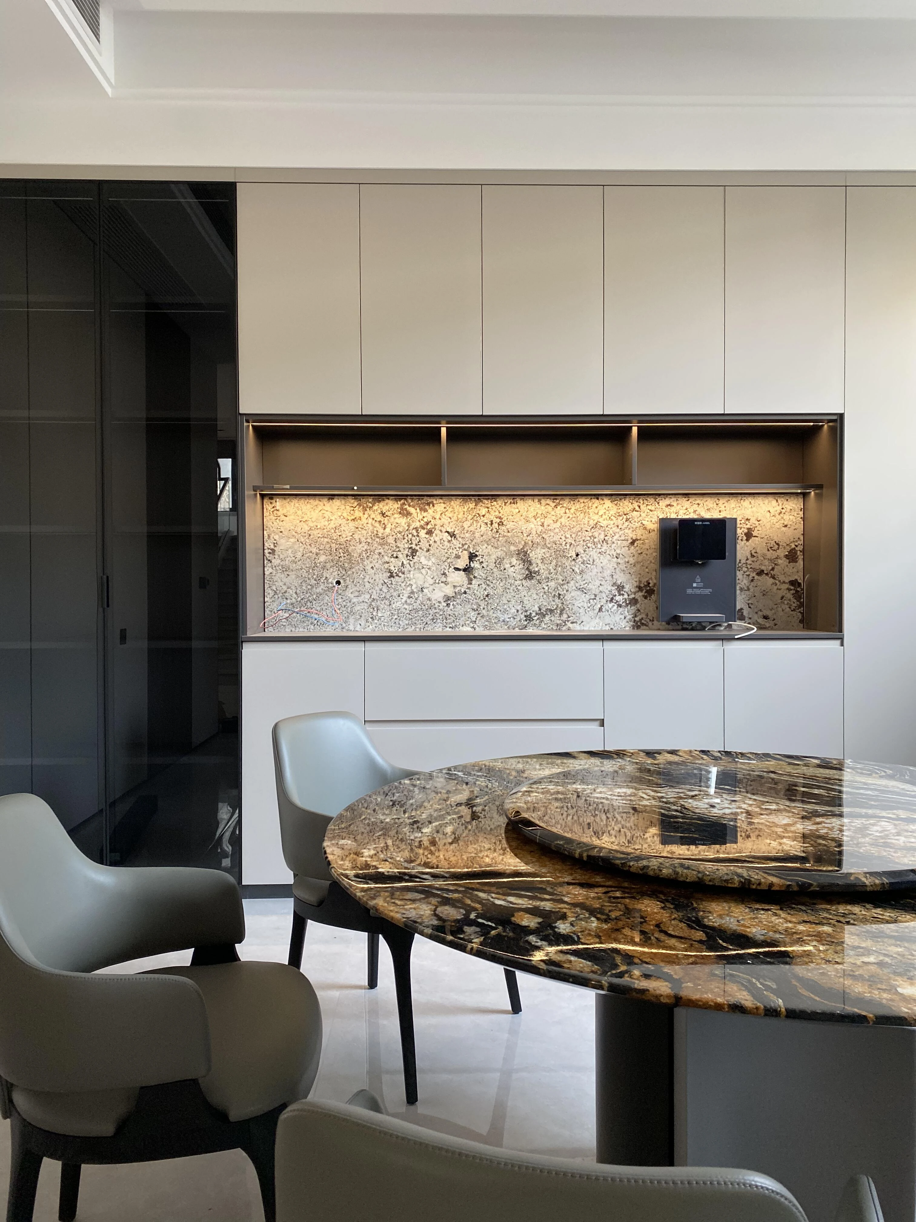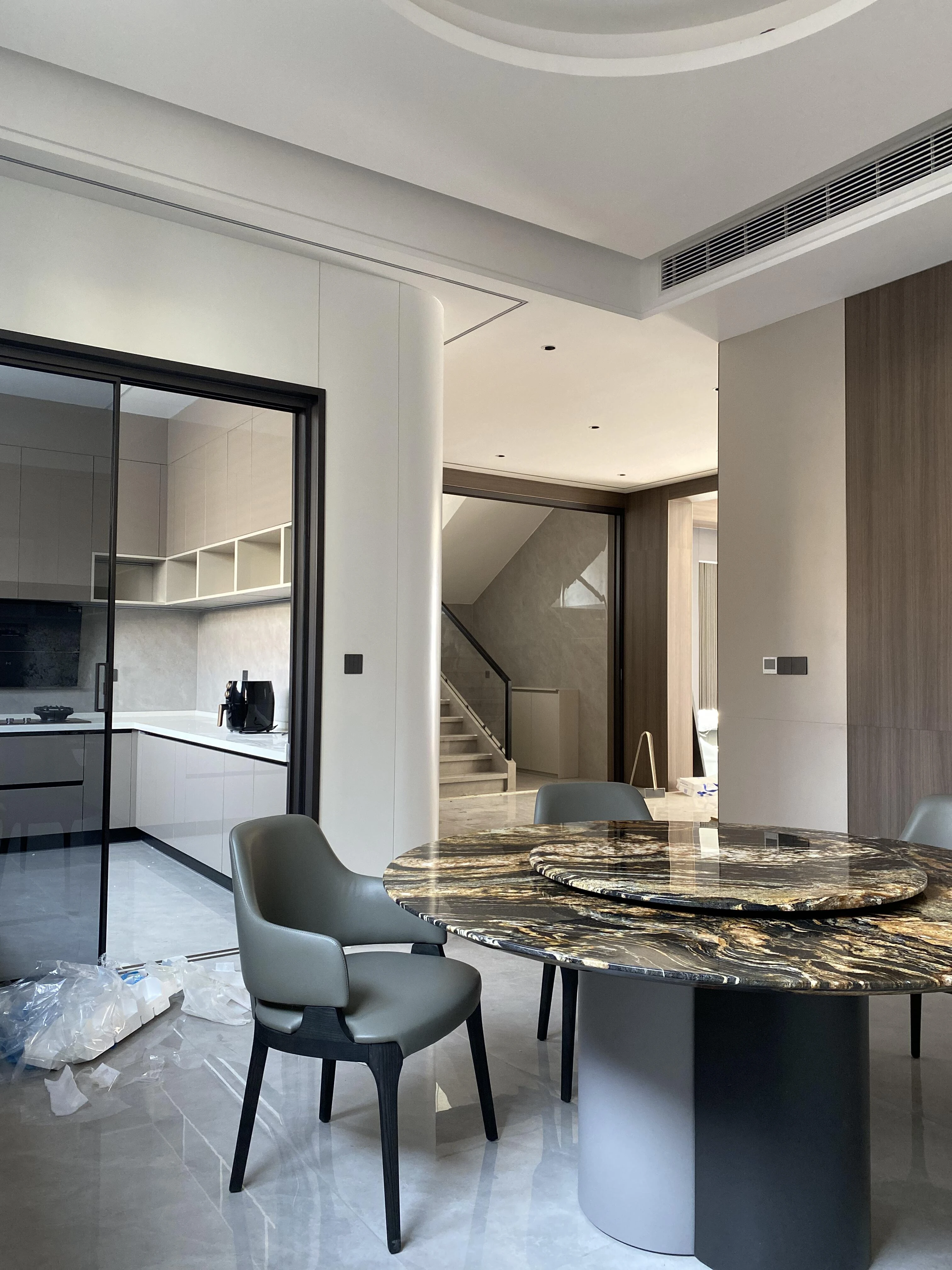 輸入宇宙金天然大理石ラグジュアリーサークルテーブル - モダンでシンプルな高級デザイン、別荘や大平面に最適なスタイルを提供します。