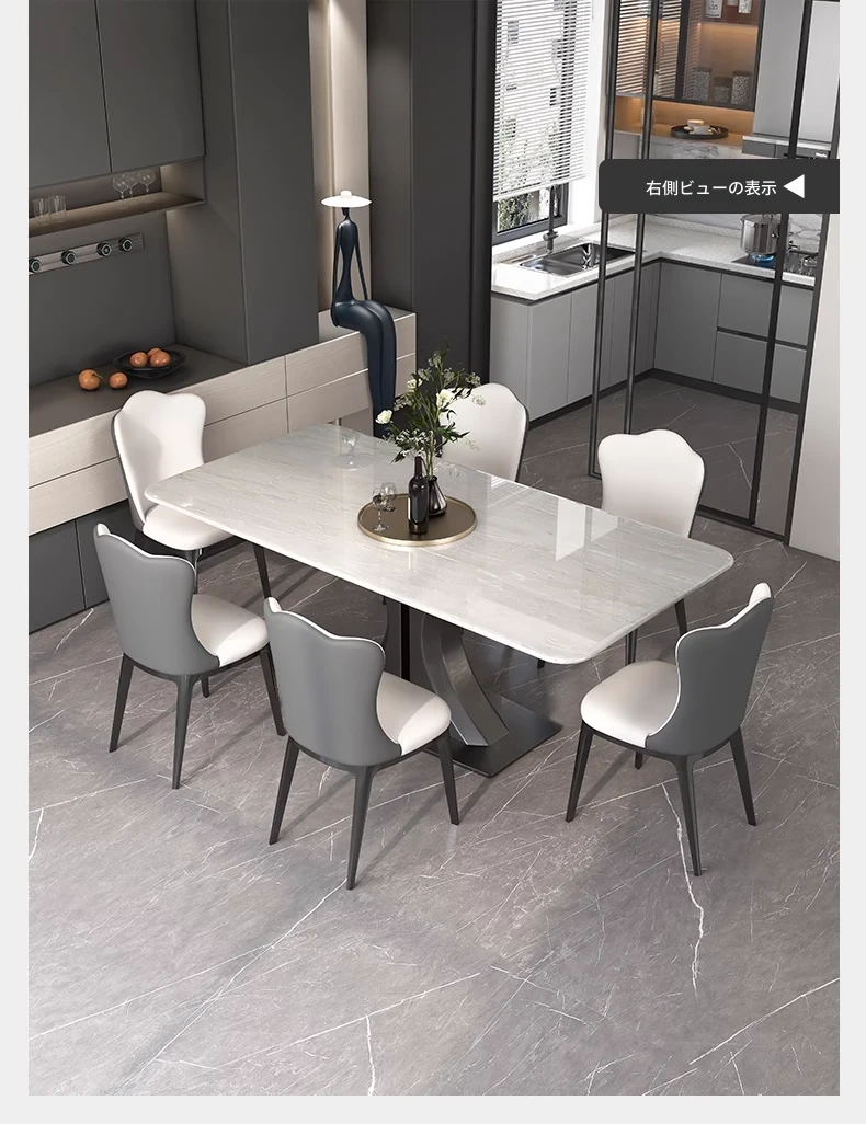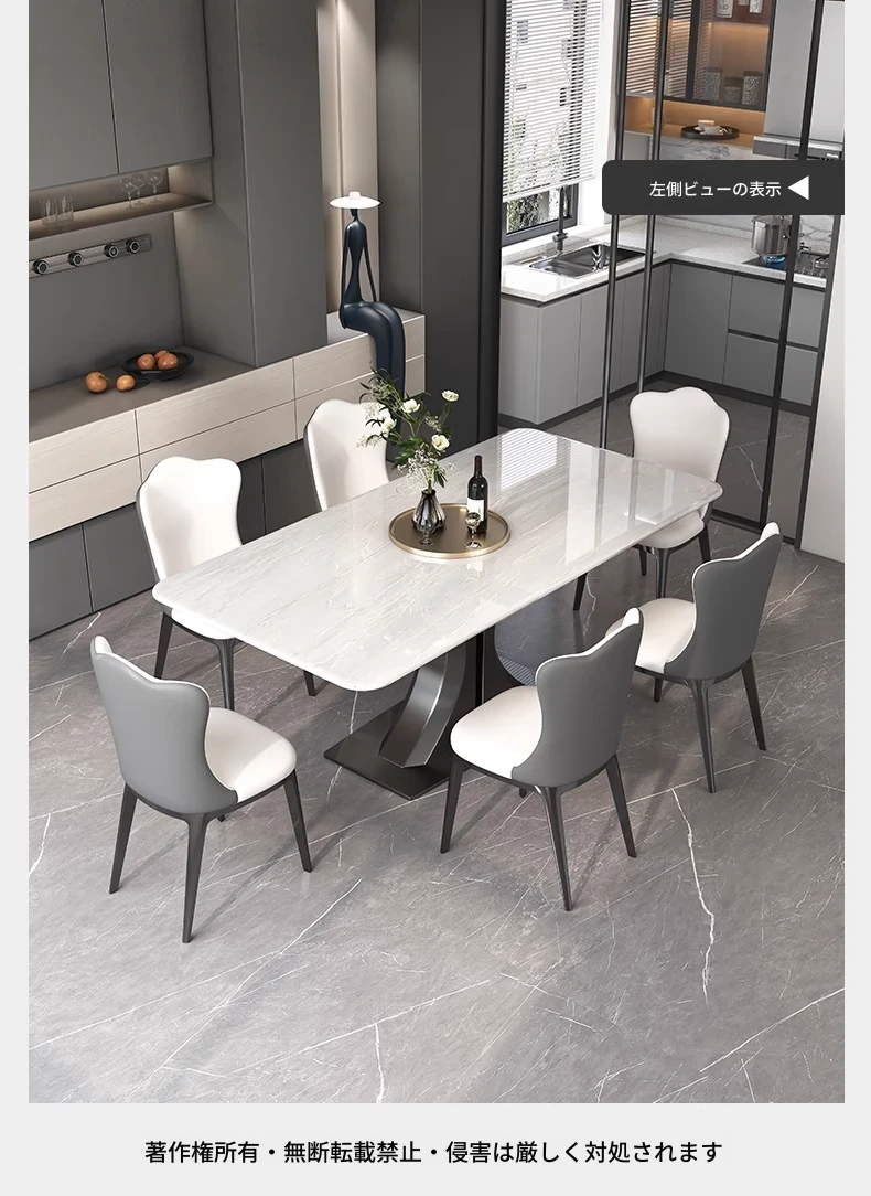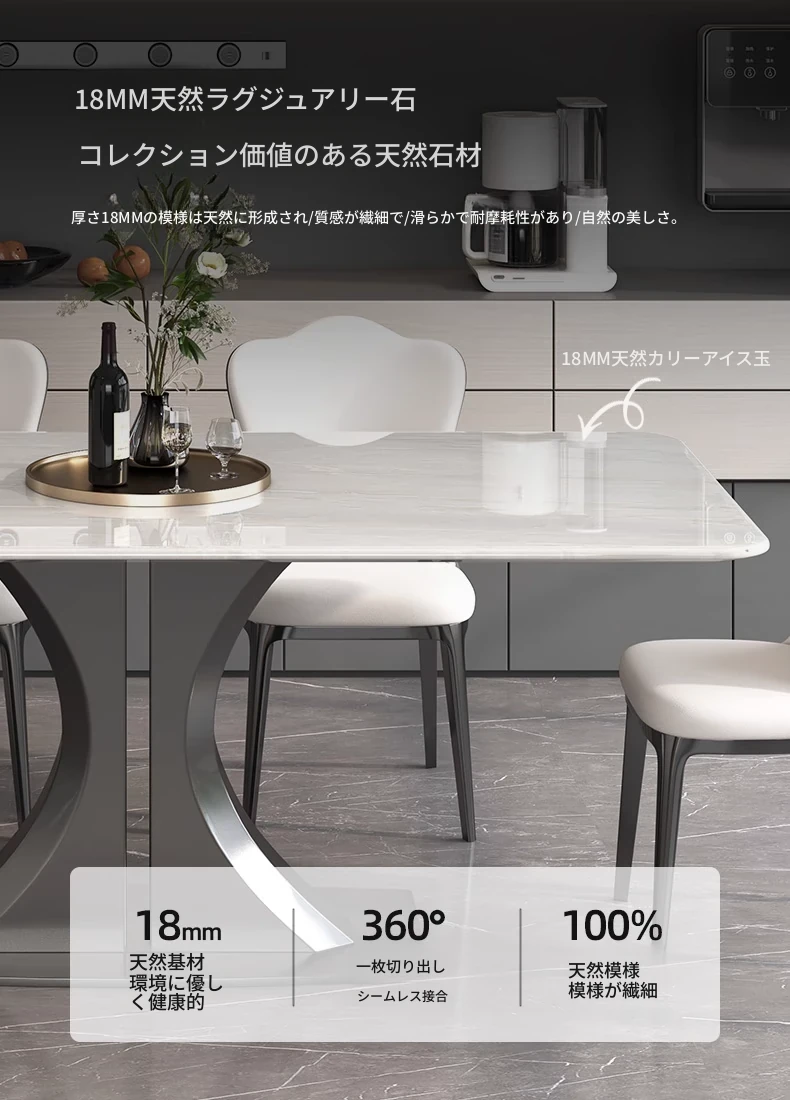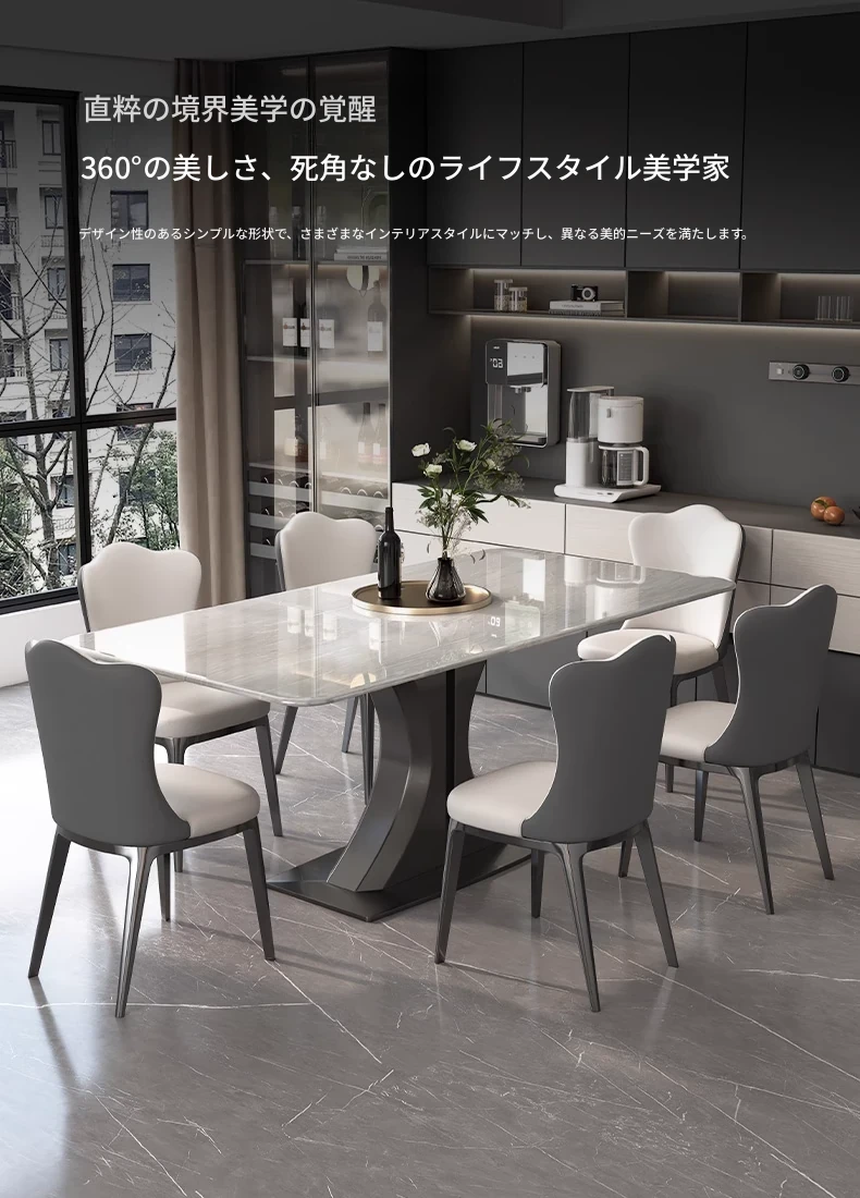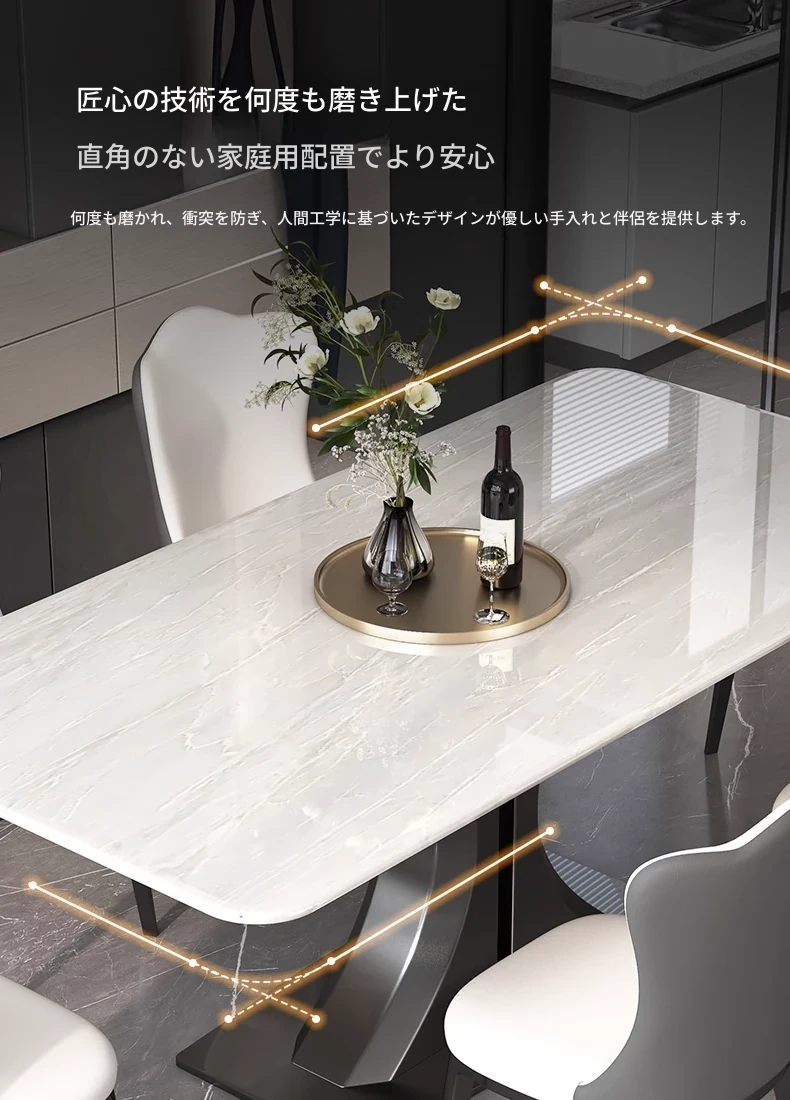 輸入天然のラグジュアリー石材を使用した、エレガントな長方形ダイニングテーブルセット!カリブアイス大理石製の高級感あふれるデザインで、家の食卓を格上げします。心地よいひとときをお楽しみください!