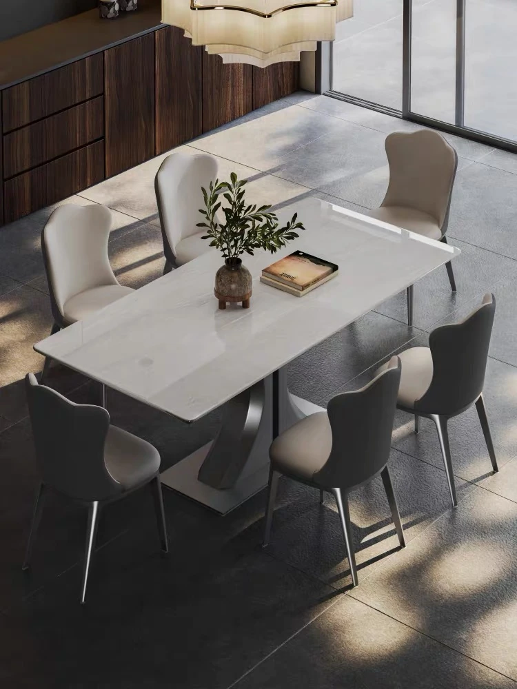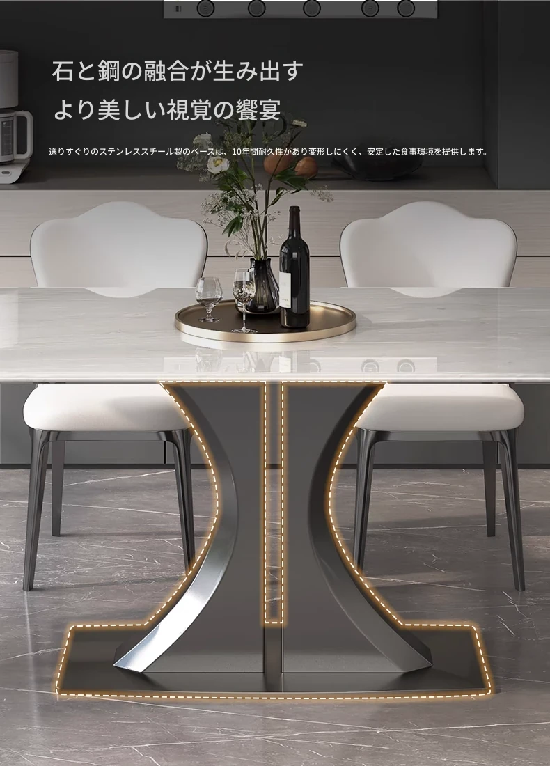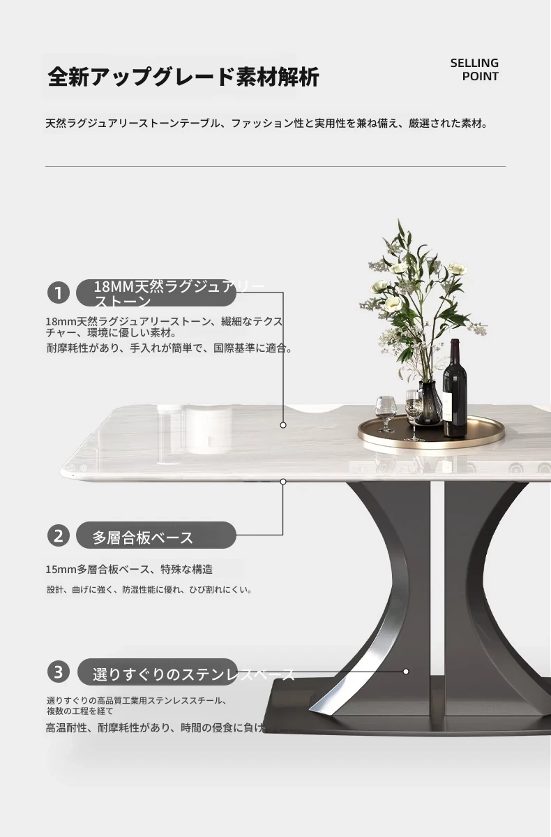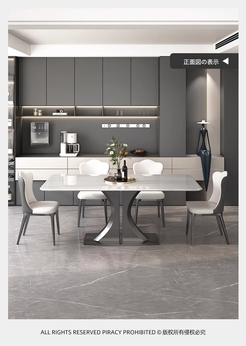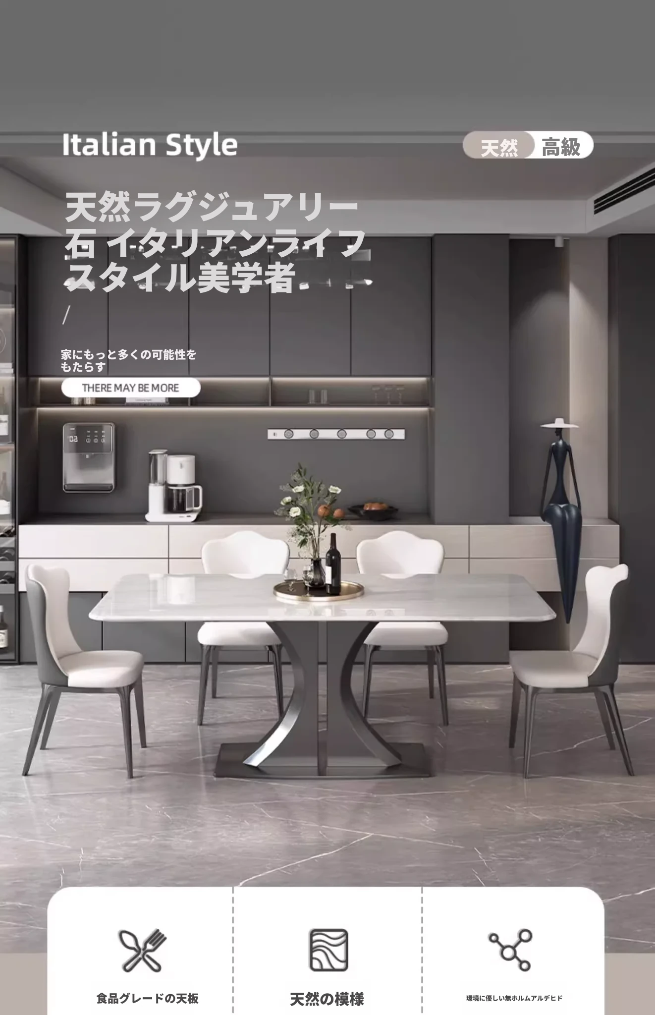 輸入天然のラグジュアリー石材を使用した、エレガントな長方形ダイニングテーブルセット!カリブアイス大理石製の高級感あふれるデザインで、家の食卓を格上げします。心地よいひとときをお楽しみください!