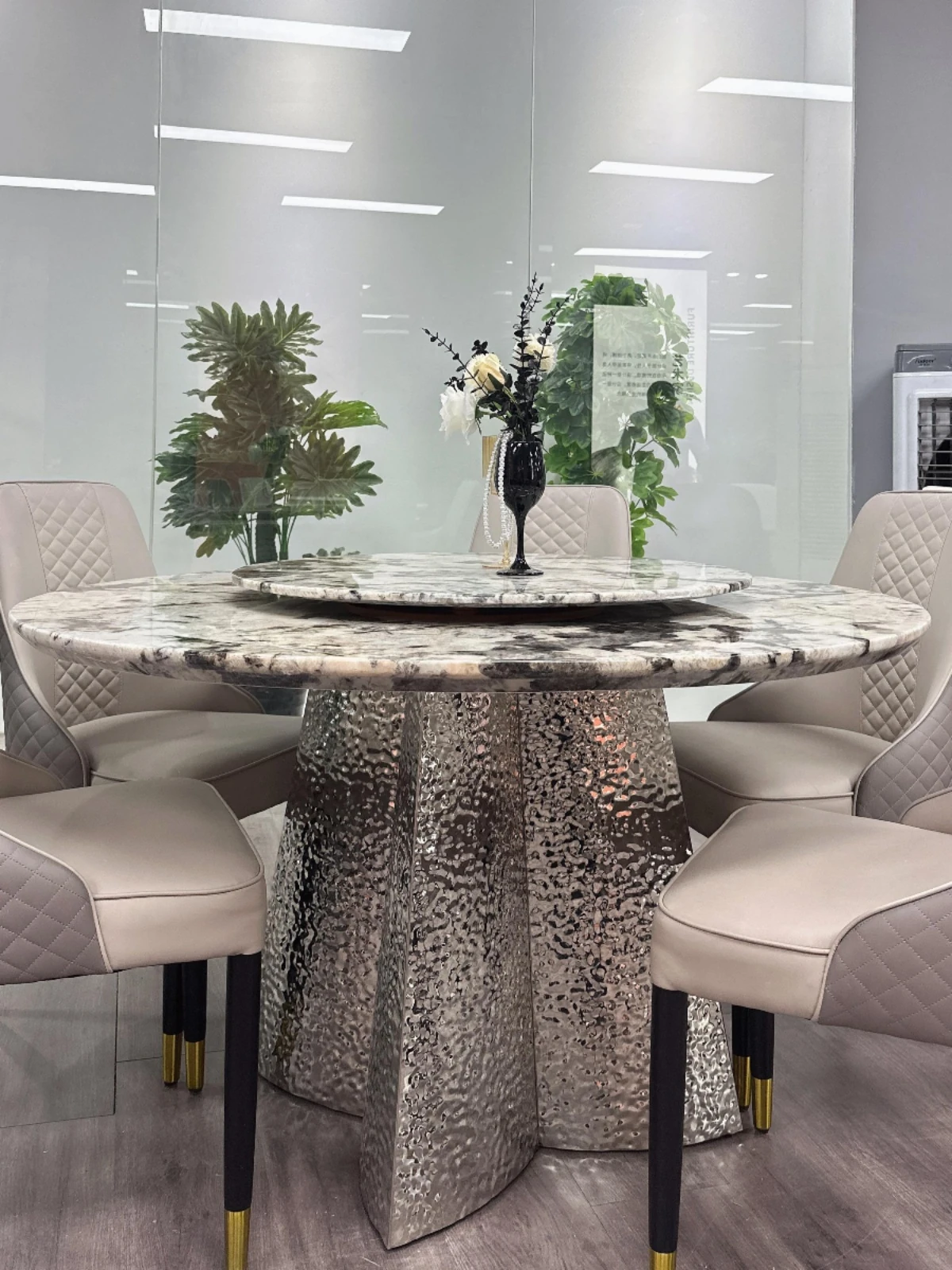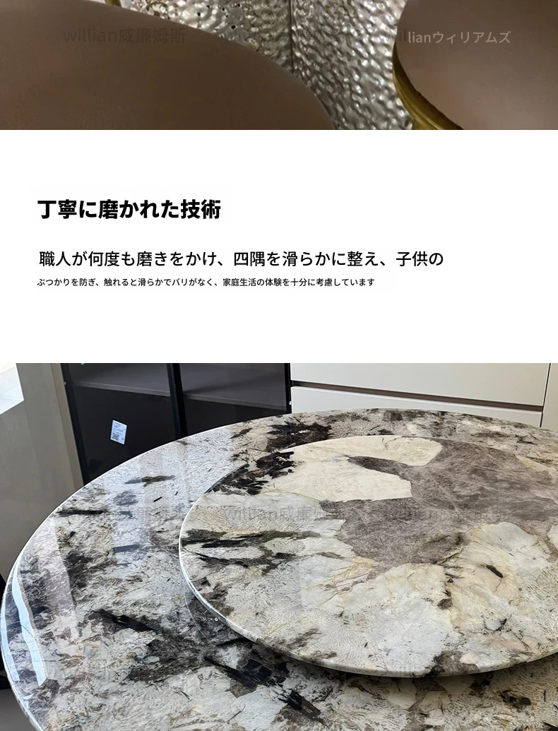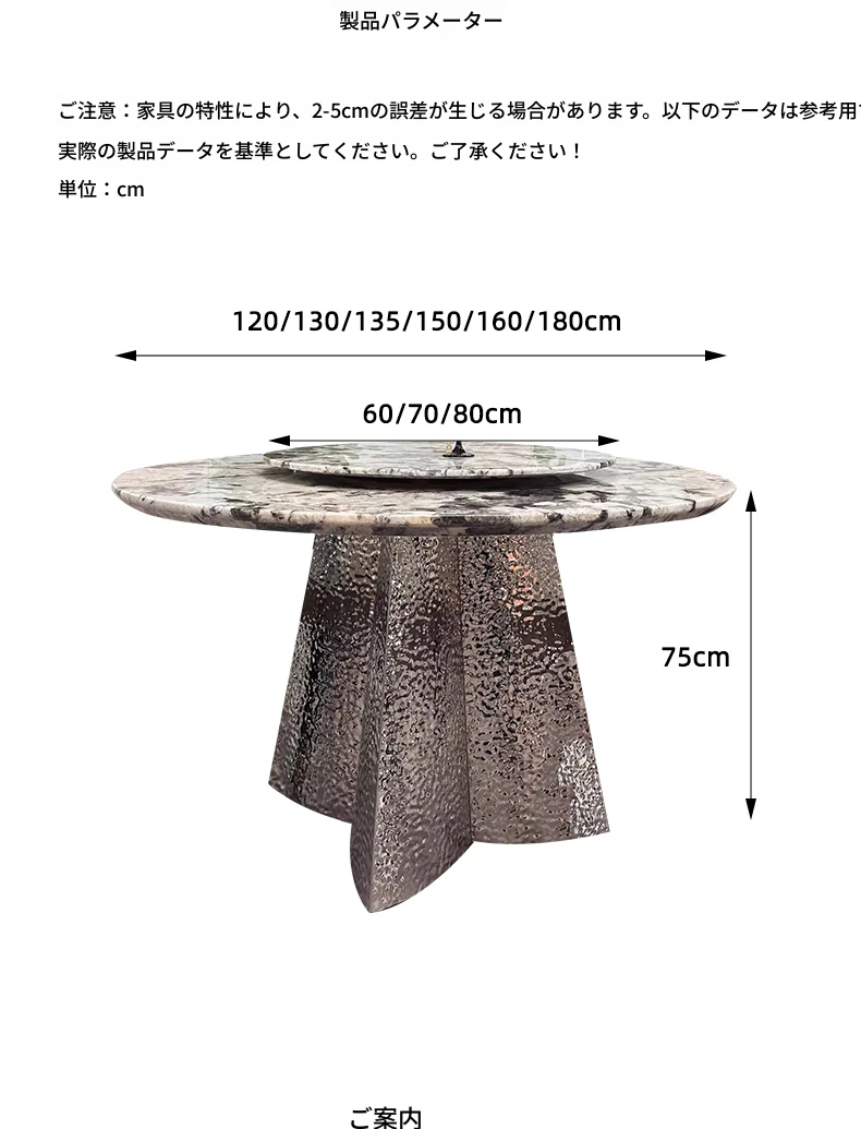 160CM天然石製ダイニングテーブル+100CMターンテーブル