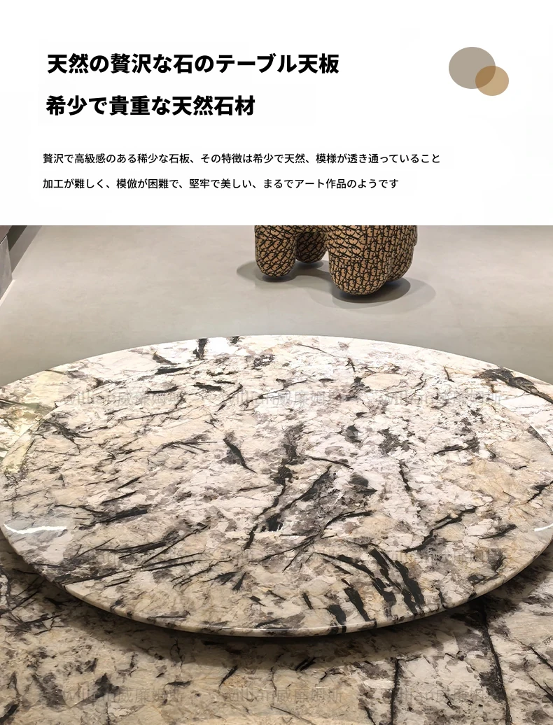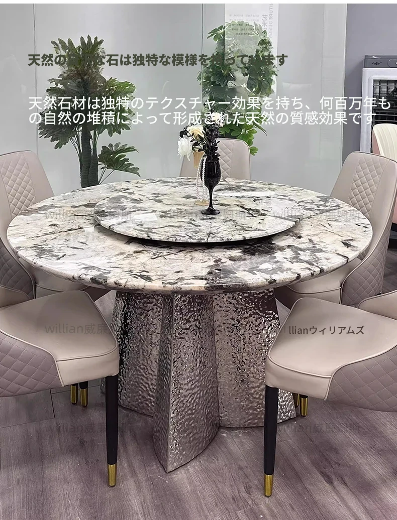 135CM天然石製ダイニングテーブル+80CMターンテーブル
