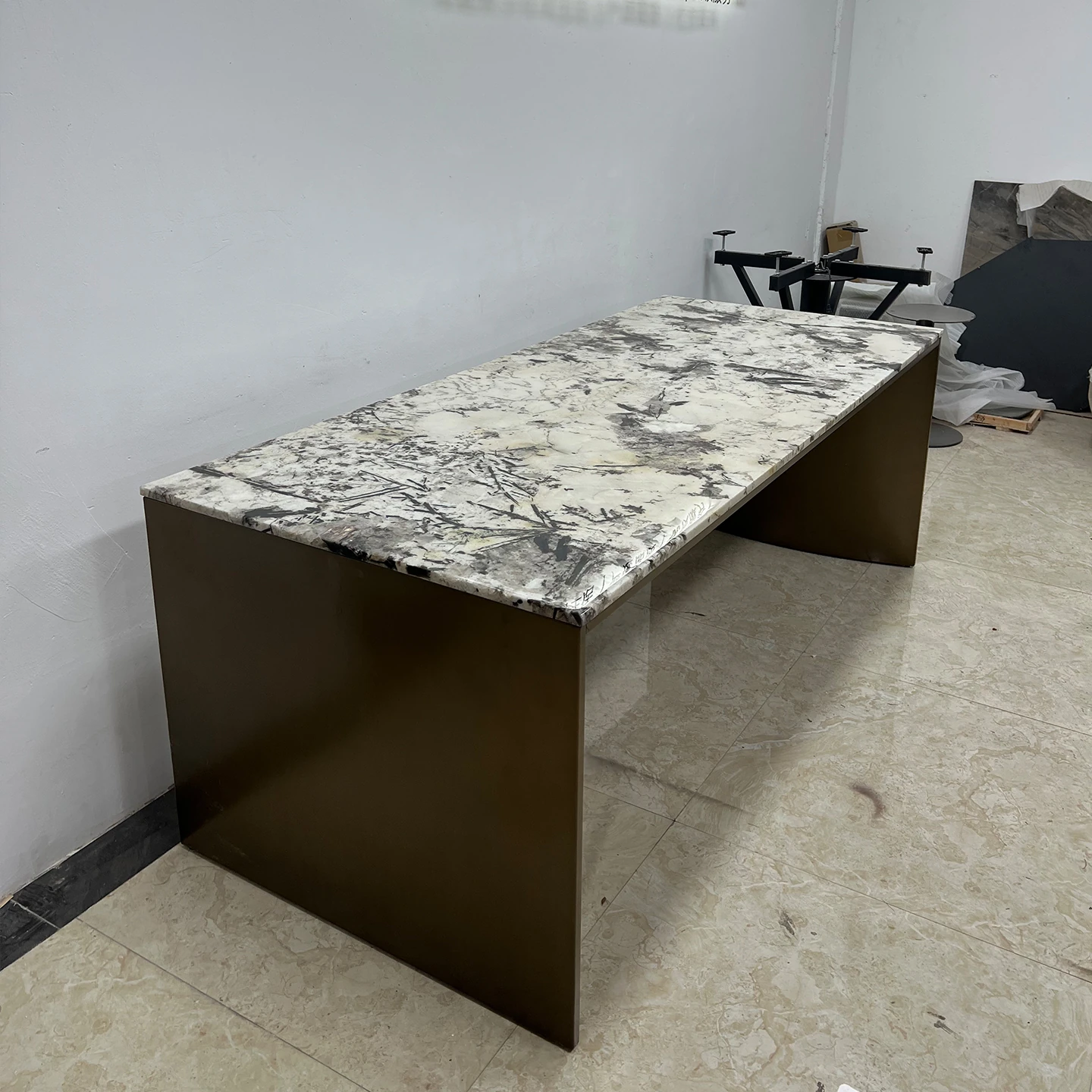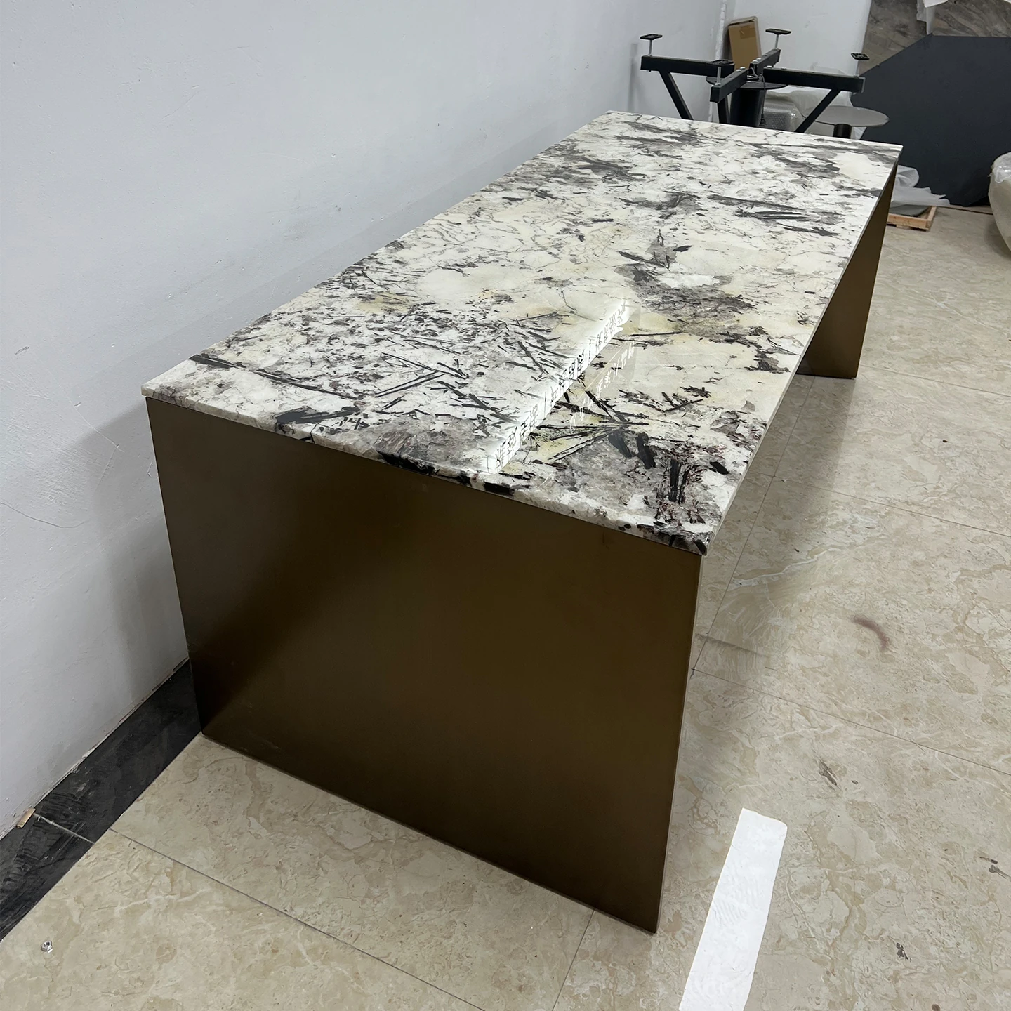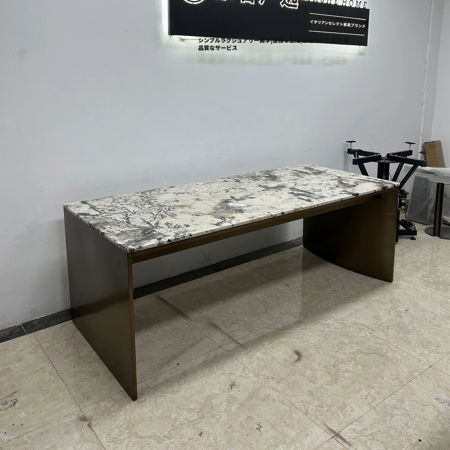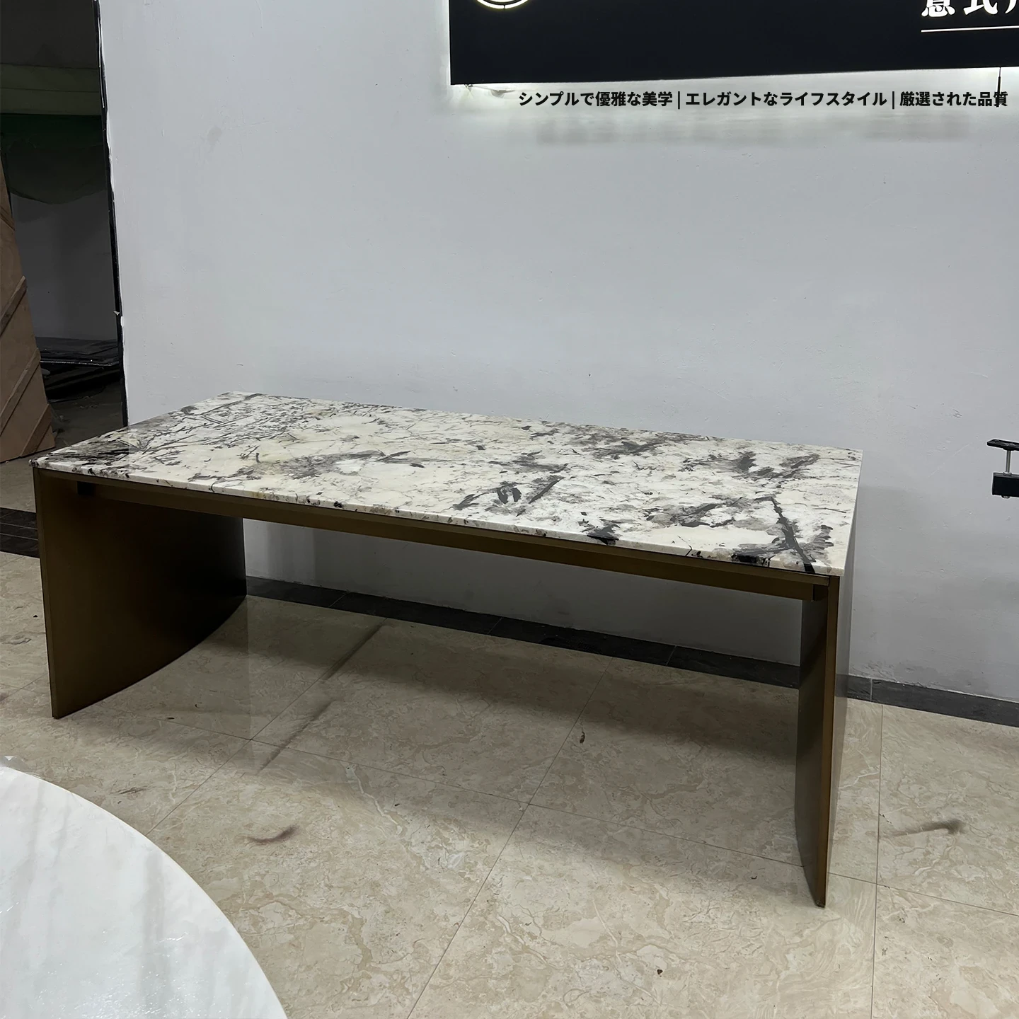 2024年新作!イタリアンラグジュアリーの全室インテリア提案、広々とした大邸宅にぴったりな天然サファイア大理石のダイニングテーブル。洗練されたデザインで、特別な食卓を演出します!