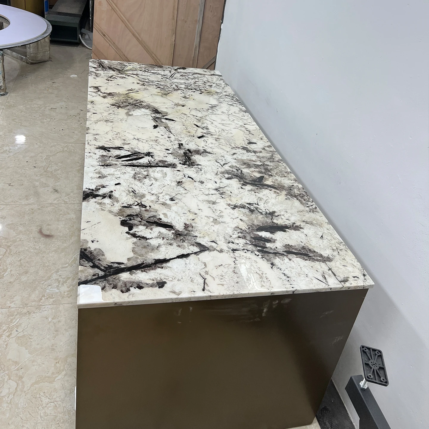 2.2*0.9メートル高0.8メートル現品雪山ブルーラグジュアリー石製ダイニングテーブル