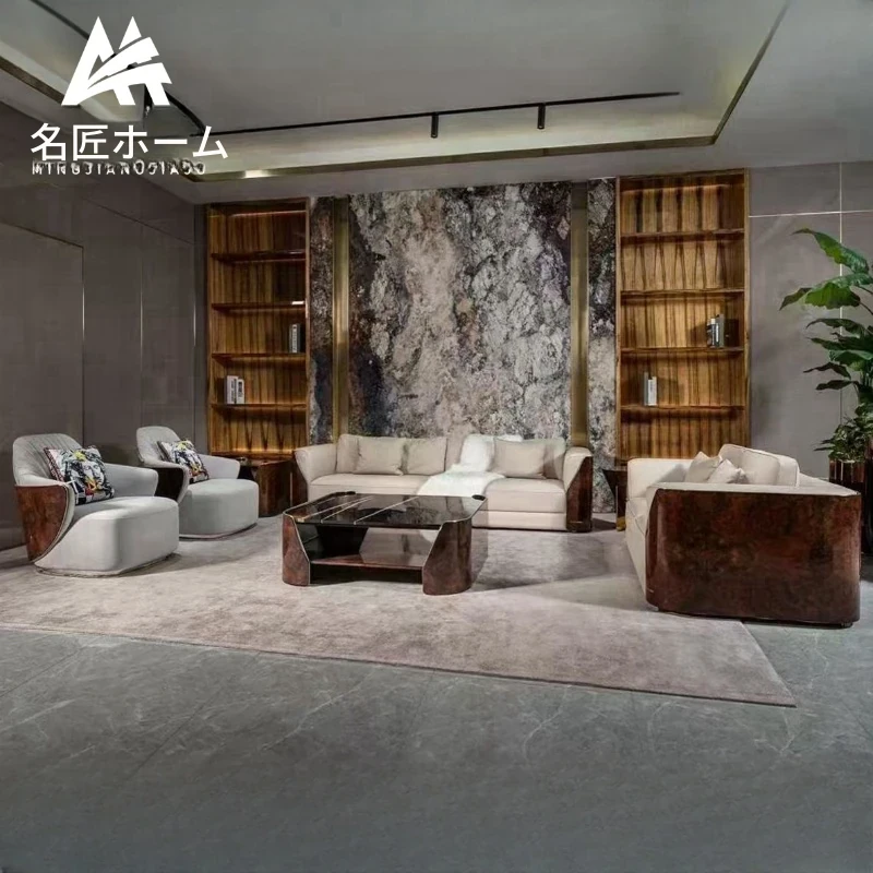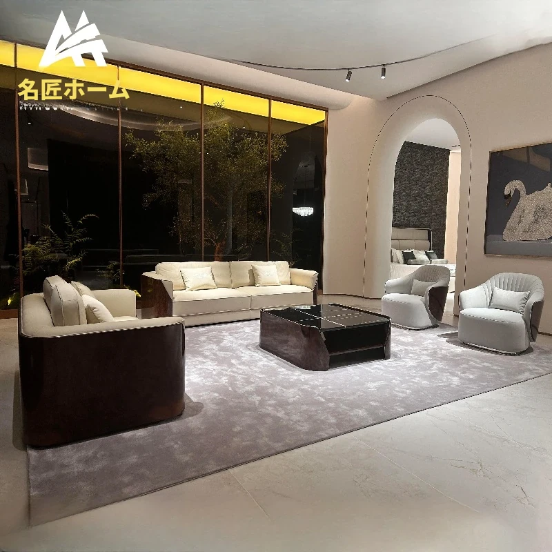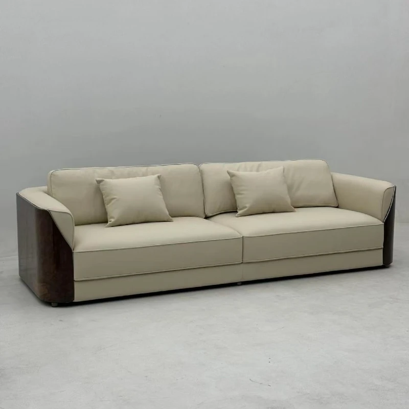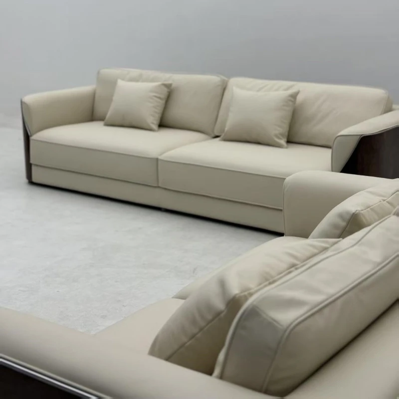 イタリア製本革ラグジュアリーソファ|高級ヴィラリビングにぴったりのシンプルなモダンデザイン|ベントレー風の豪華なデザイナーズ家具|高品質な天然木使用で、上質なひとときを演出します!