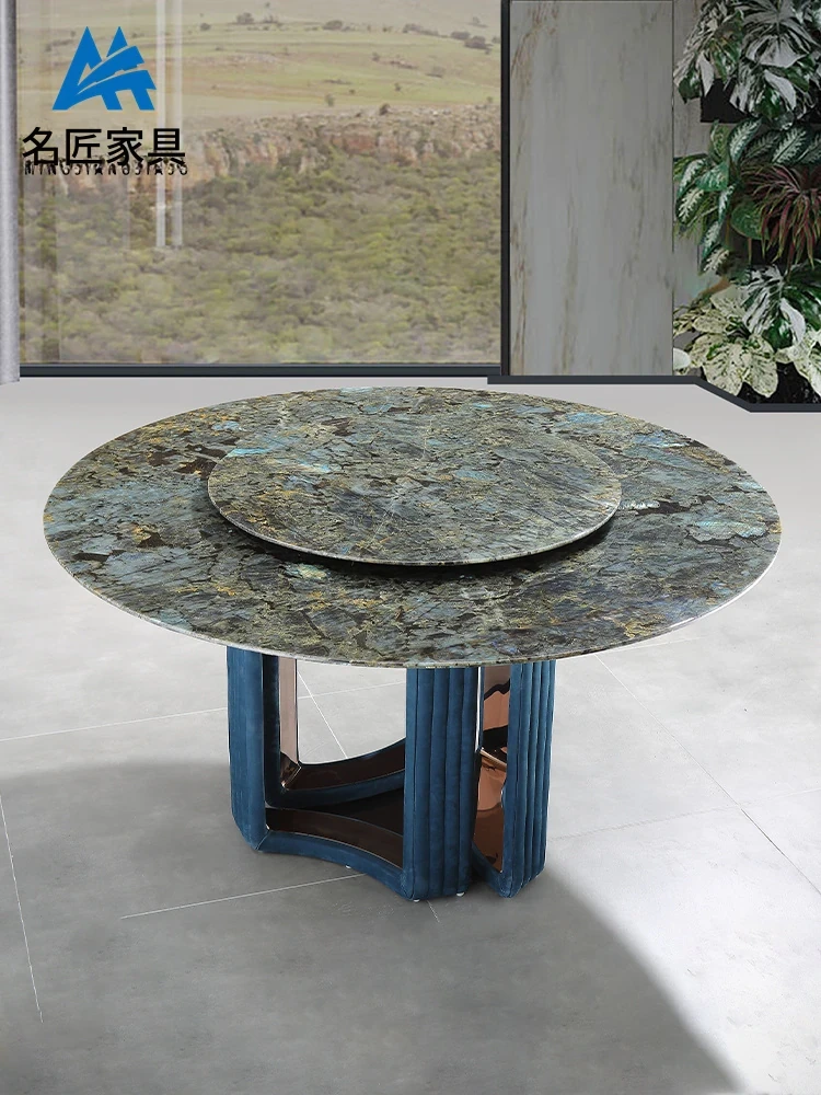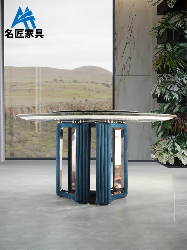 2024年新作!イタリアンラグジュアリーの全室インテリア提案、広々とした大邸宅にぴったりな天然サファイア大理石のダイニングテーブル。洗練されたデザインで、特別な食卓を演出します!