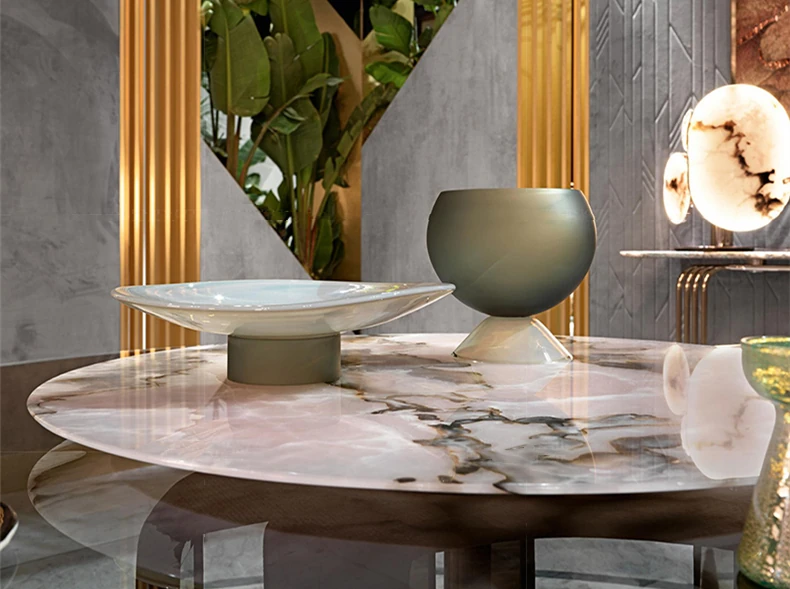 イタリアンミニマルデザイン大理石ダイニングテーブル2023新作!高級感溢れるラグジュアリーな円形テーブルで、広々とした邸宅にぴったり。スタイリッシュなインテリアを演出し、特別なひとときをお届けします。