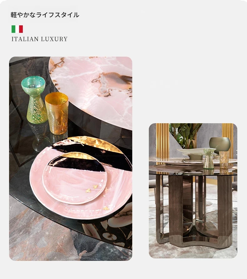 イタリア直輸入のラグジュアリーなダイニングテーブル|現代的なデザインの大理石製ラウンドテーブル|広々とした住空間に最適|家族や友人との素敵な食事のひとときを演出します!