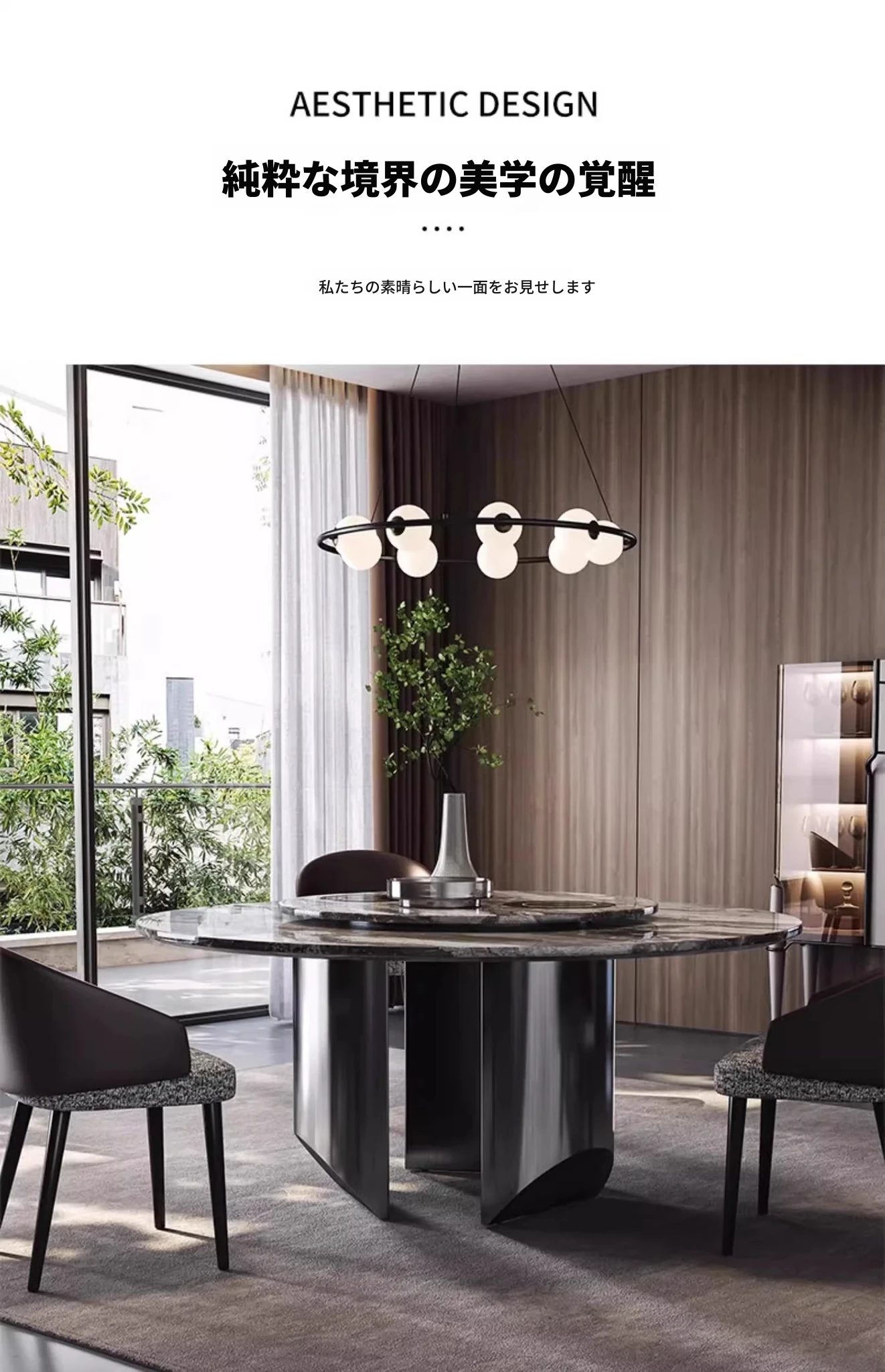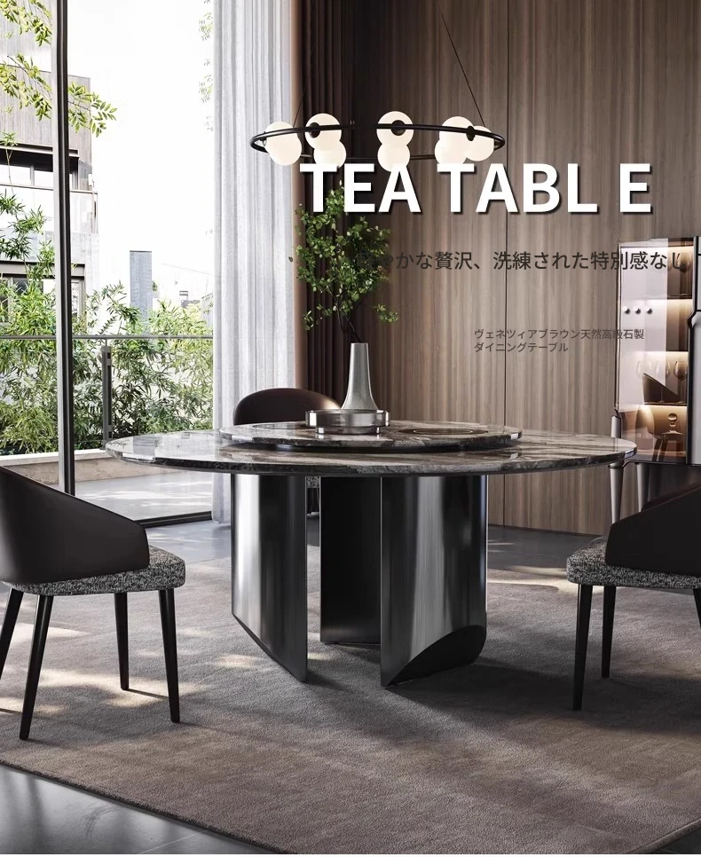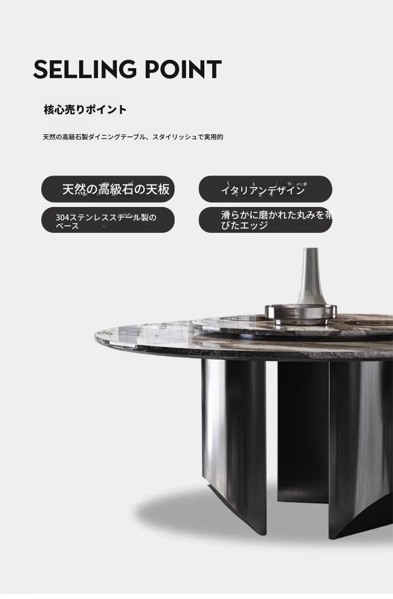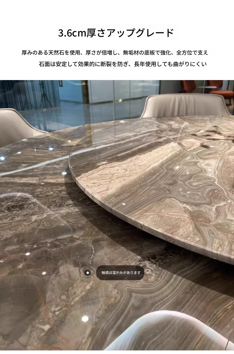150CM輸入ヴェネチアブラウン天然ラグジュアリーストーンダイニングテーブル+90CMターンテーブル
