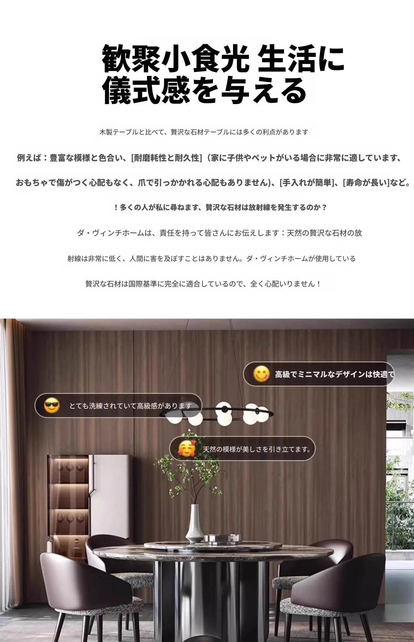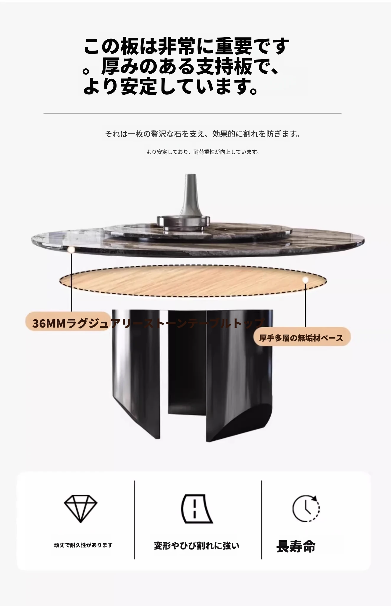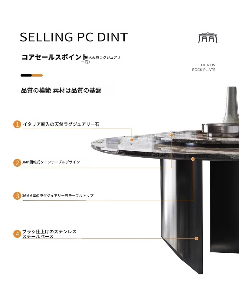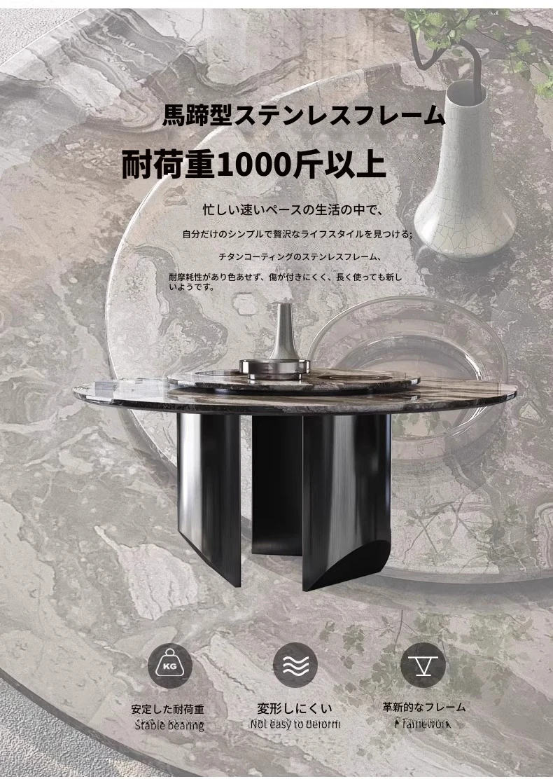 150CM輸入ヴェネチアブラウン天然ラグジュアリーストーンダイニングテーブル+90CMターンテーブル
