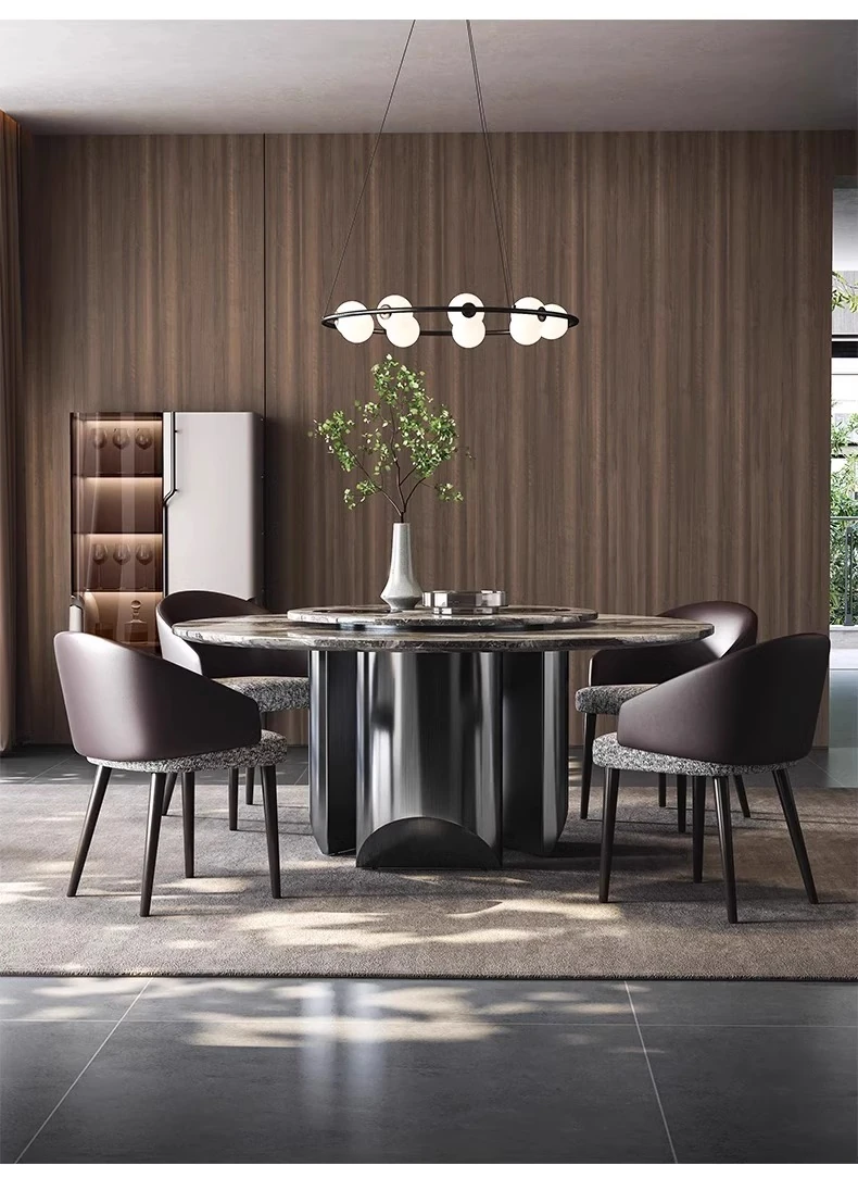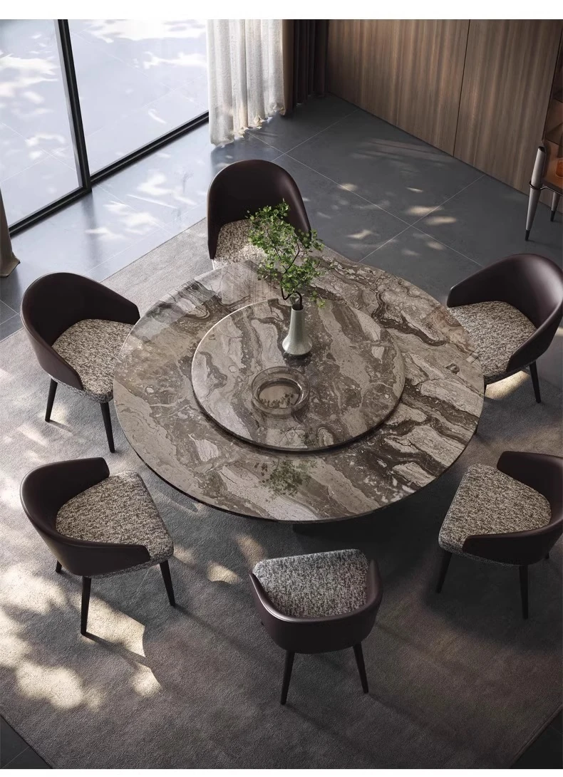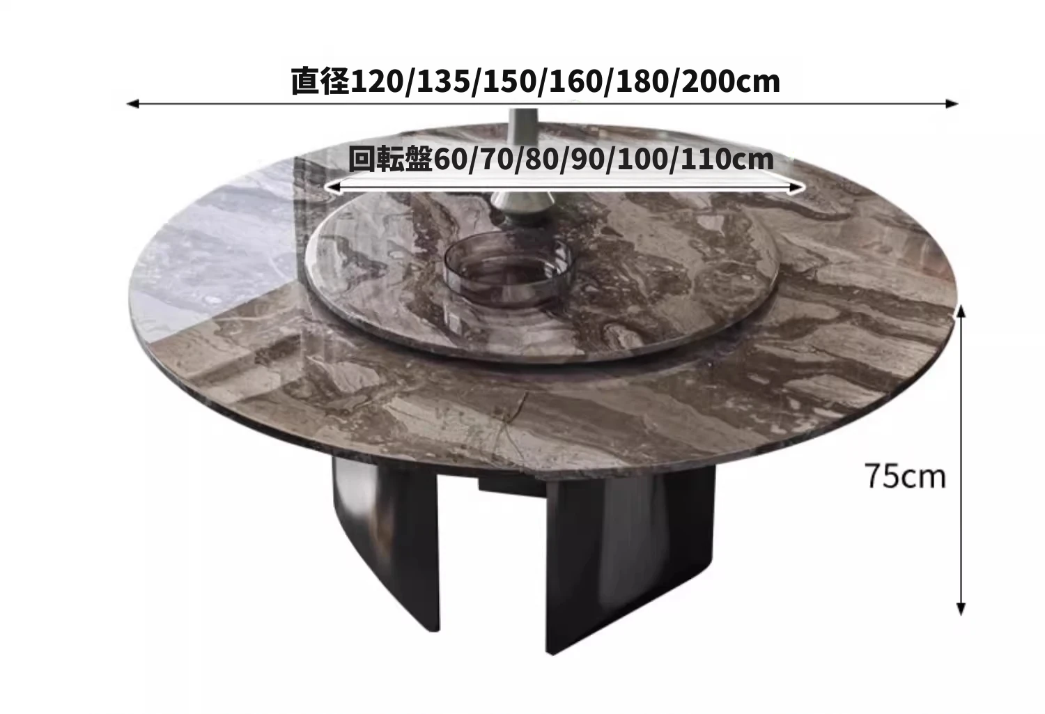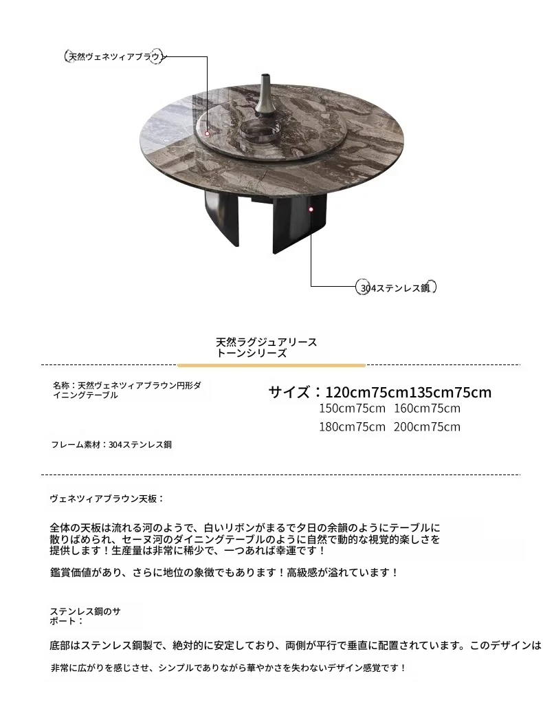 160CM輸入ヴェネチアブラウン天然ラグジュアリーストーンダイニングテーブル+100CMターンテーブル