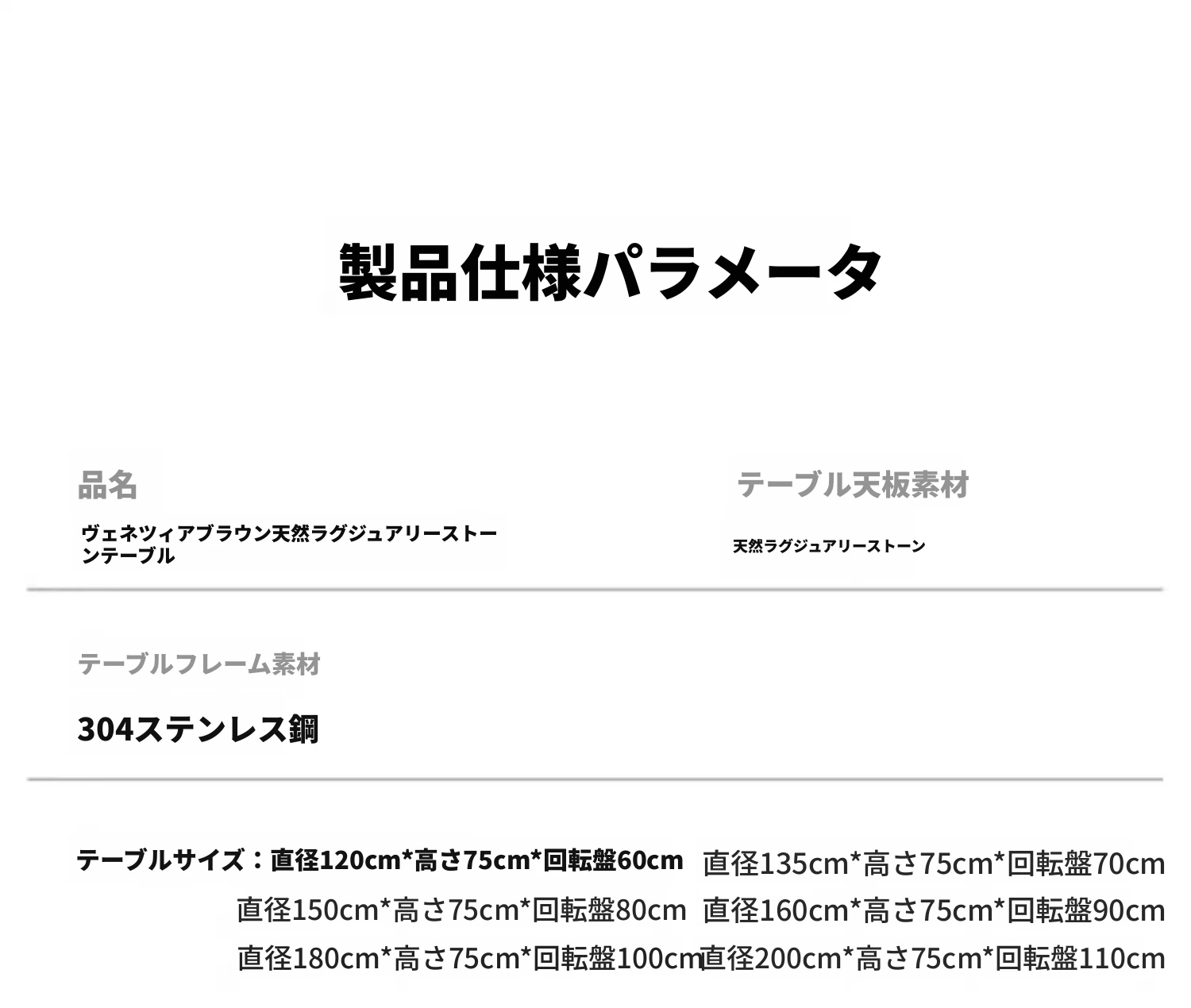 120CM輸入ヴェネチアブラウン天然ラグジュアリーストーンダイニングテーブル+70CMターンテーブル