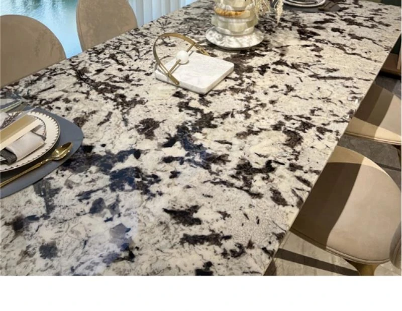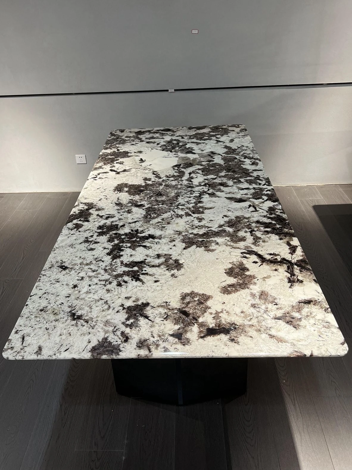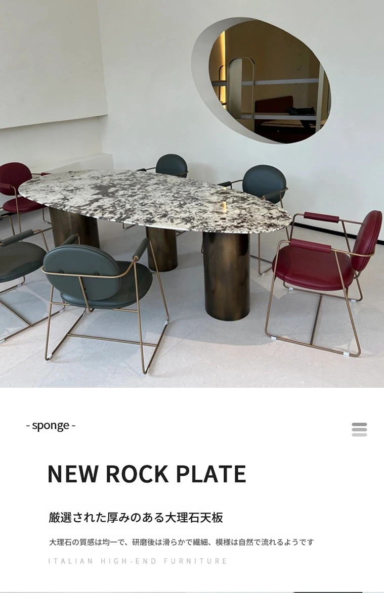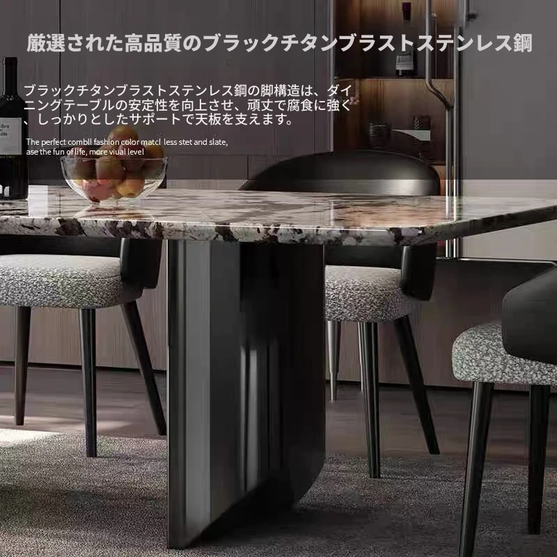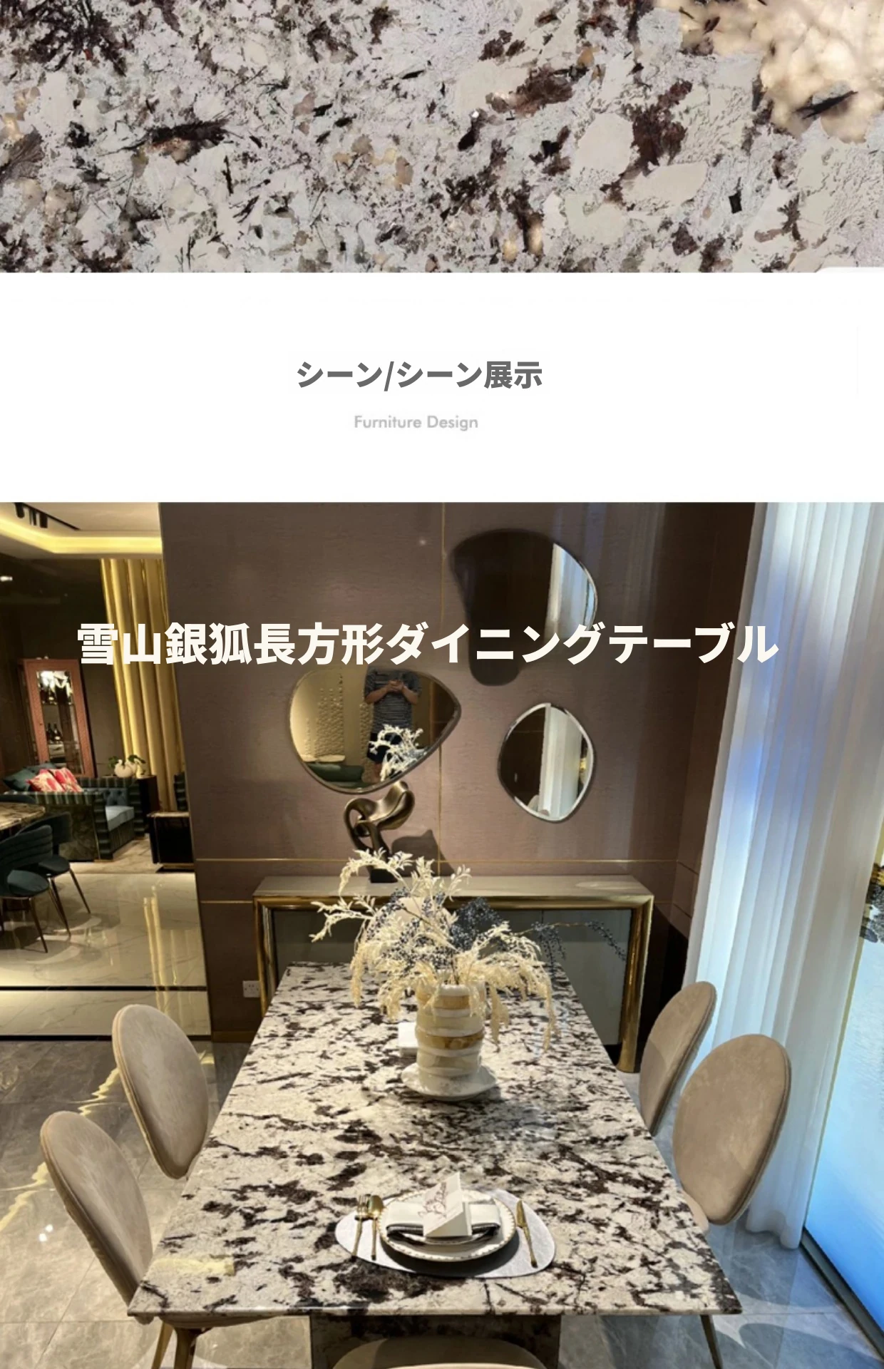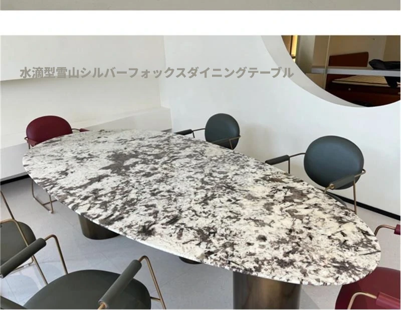 イタリア直輸入の雪山飛狐豪華石天然天山幕雪大理石製ロングテーブル!高級感あふれるデザインで、特別な食卓を演出。軽やかな贅沢をお楽しみください。