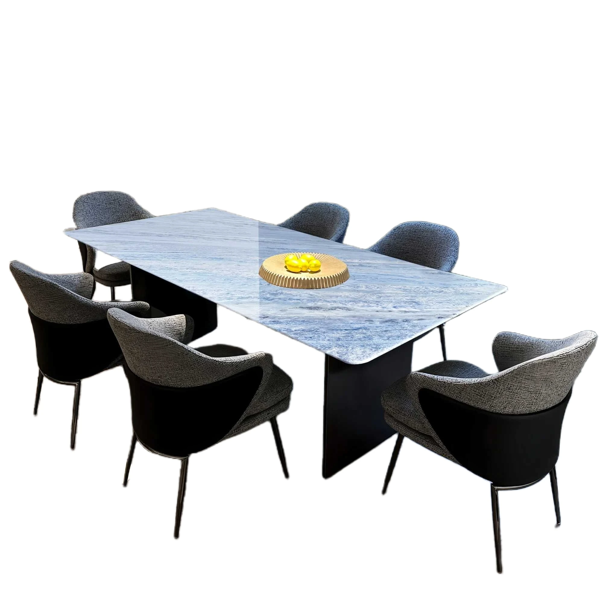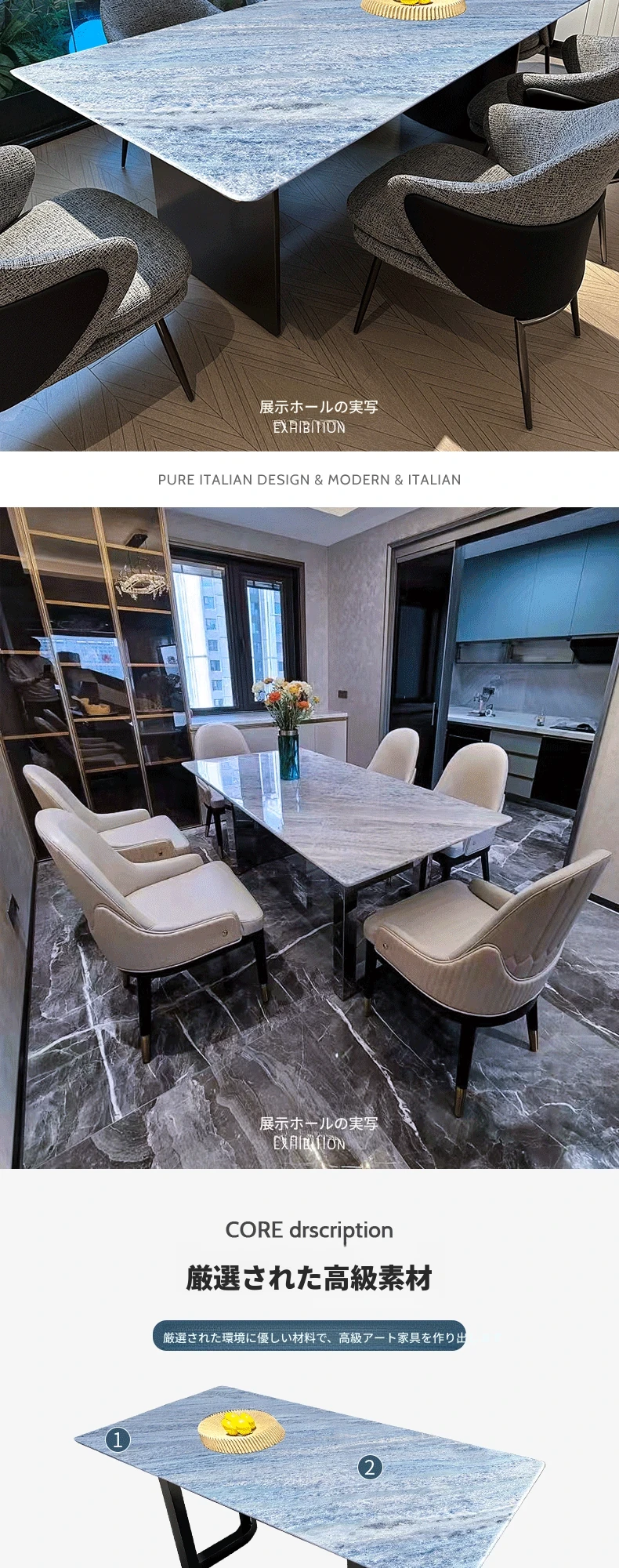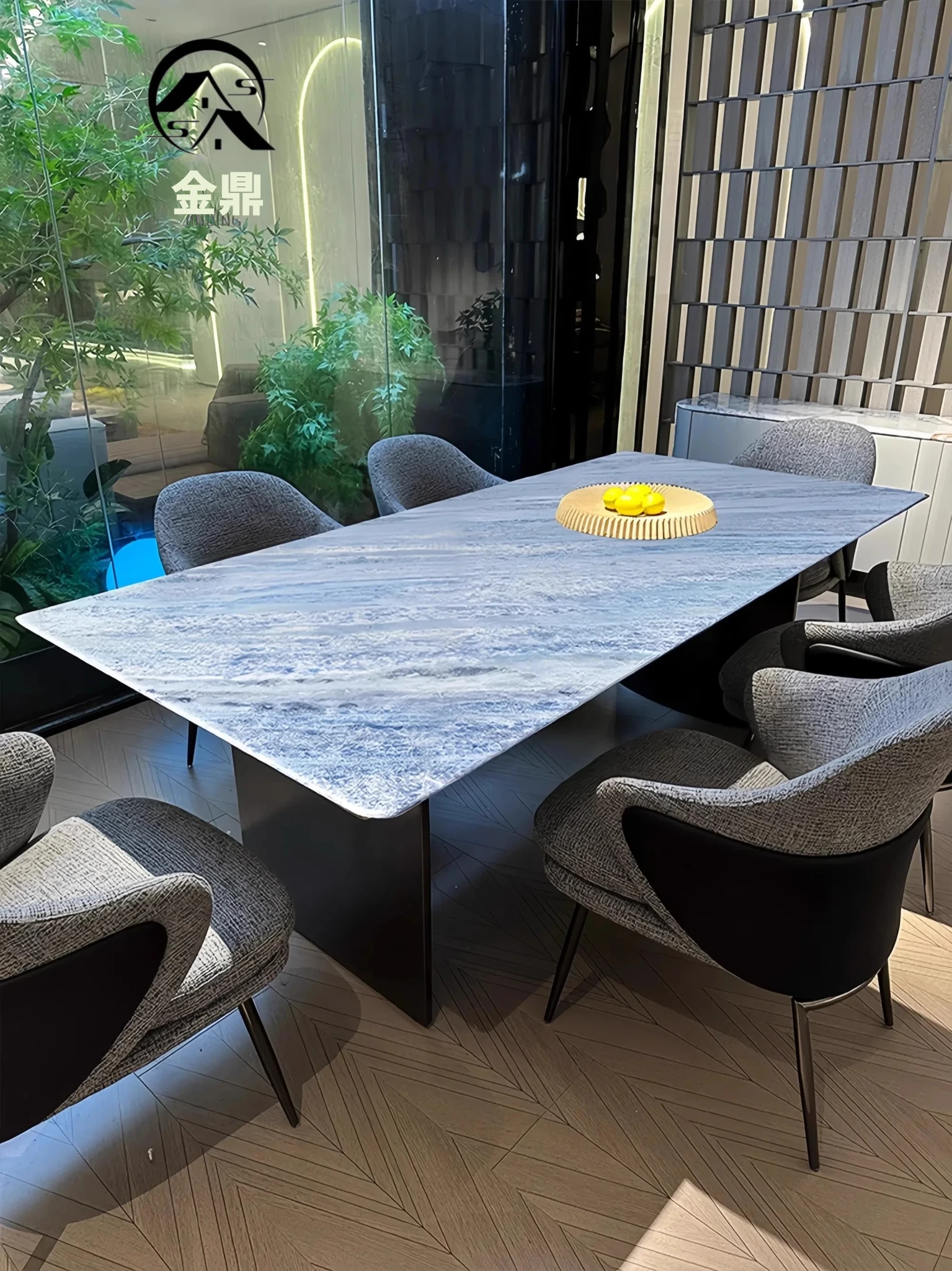 2024年新作!イタリアンラグジュアリーの全室インテリア提案、広々とした大邸宅にぴったりな天然サファイア大理石のダイニングテーブル。洗練されたデザインで、特別な食卓を演出します!