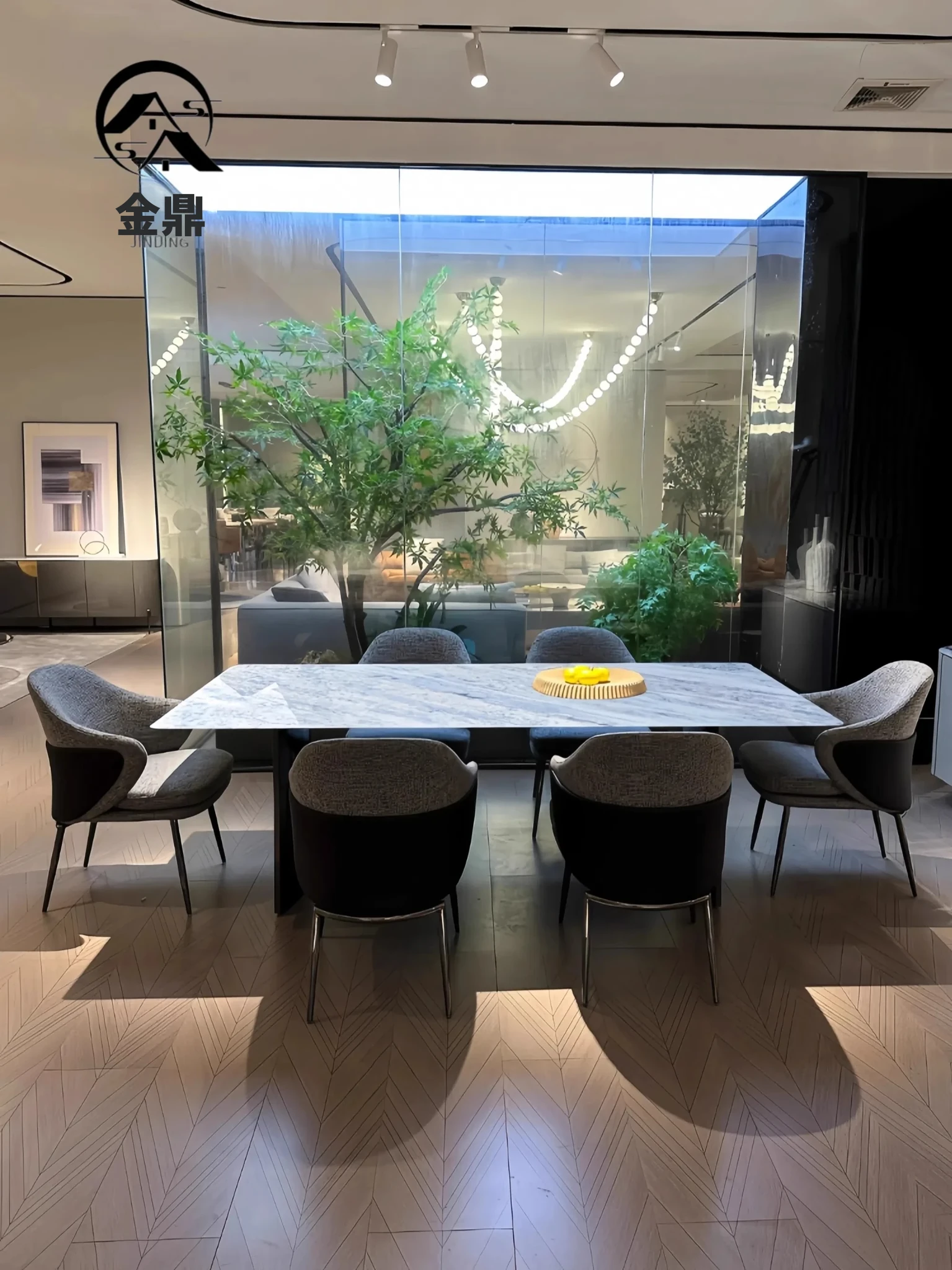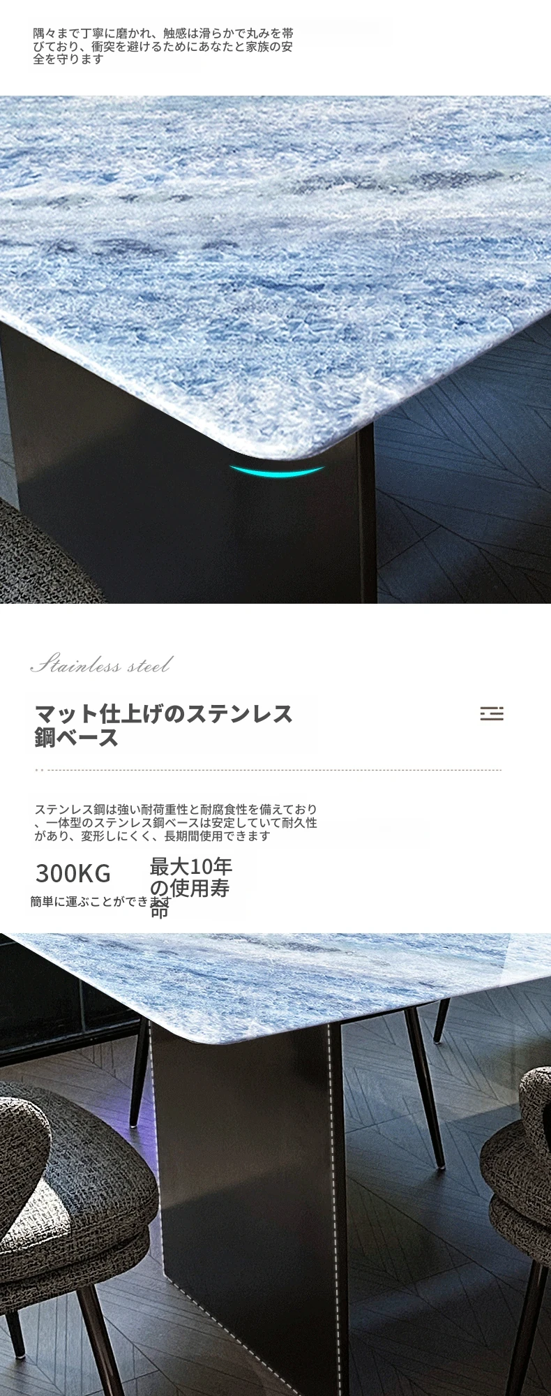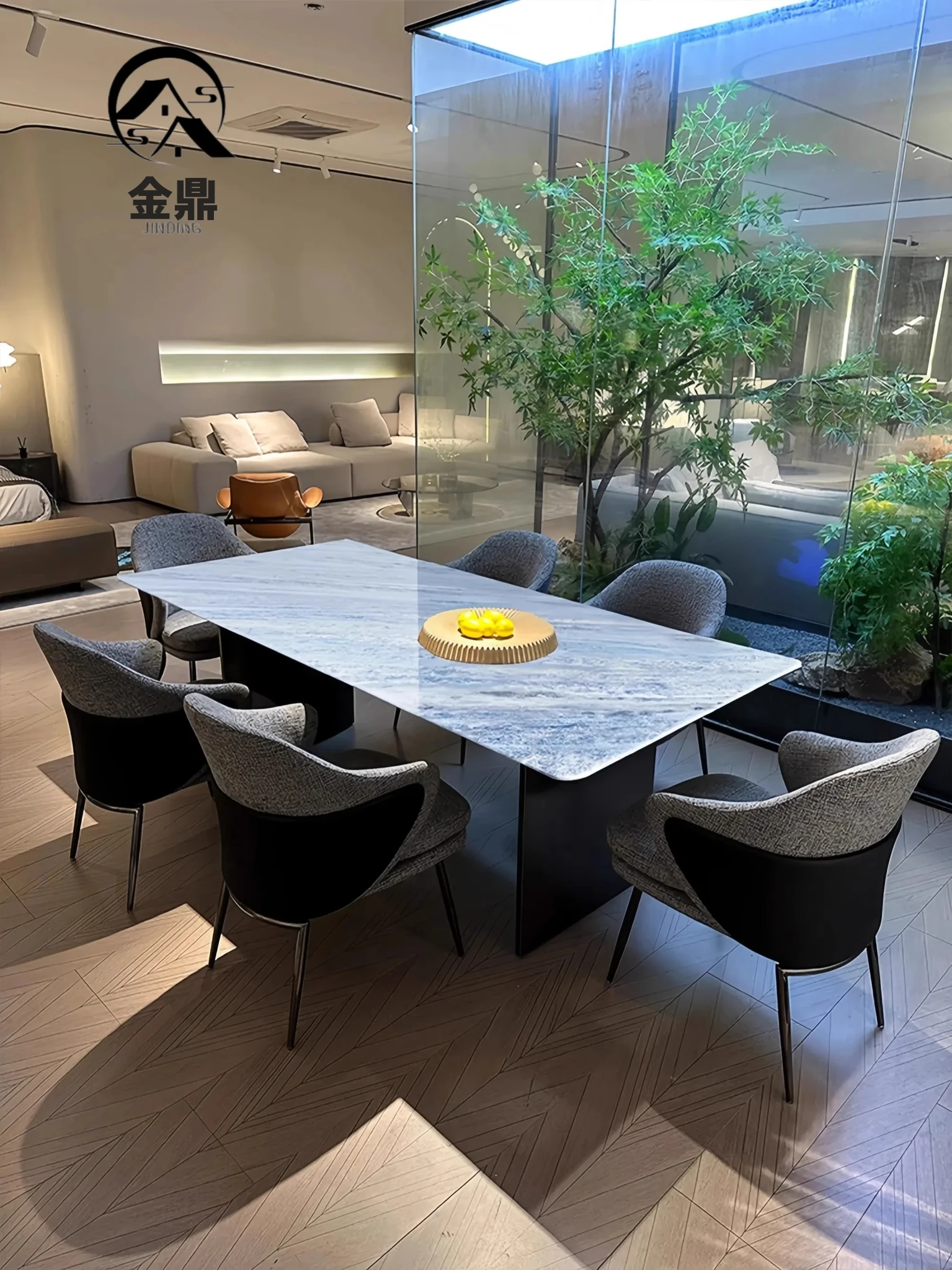 2024年新作!イタリアンラグジュアリーの全室インテリア提案、広々とした大邸宅にぴったりな天然サファイア大理石のダイニングテーブル。洗練されたデザインで、特別な食卓を演出します!