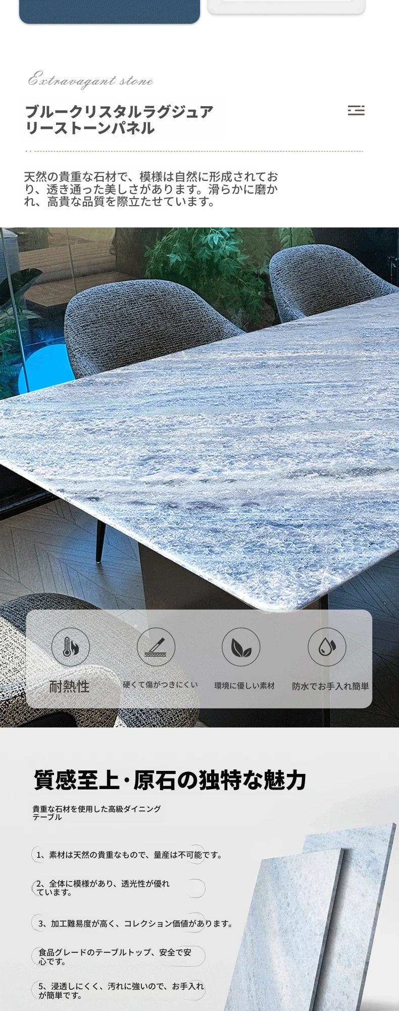 イタリアンラグジュアリー ブルークリスタル 天然石のモダンデザイン 長方形ダイニングテーブル 高級家具で食卓を彩る!