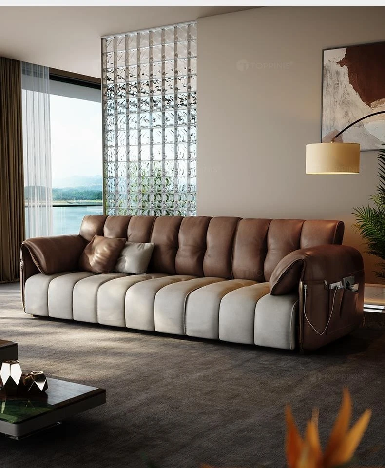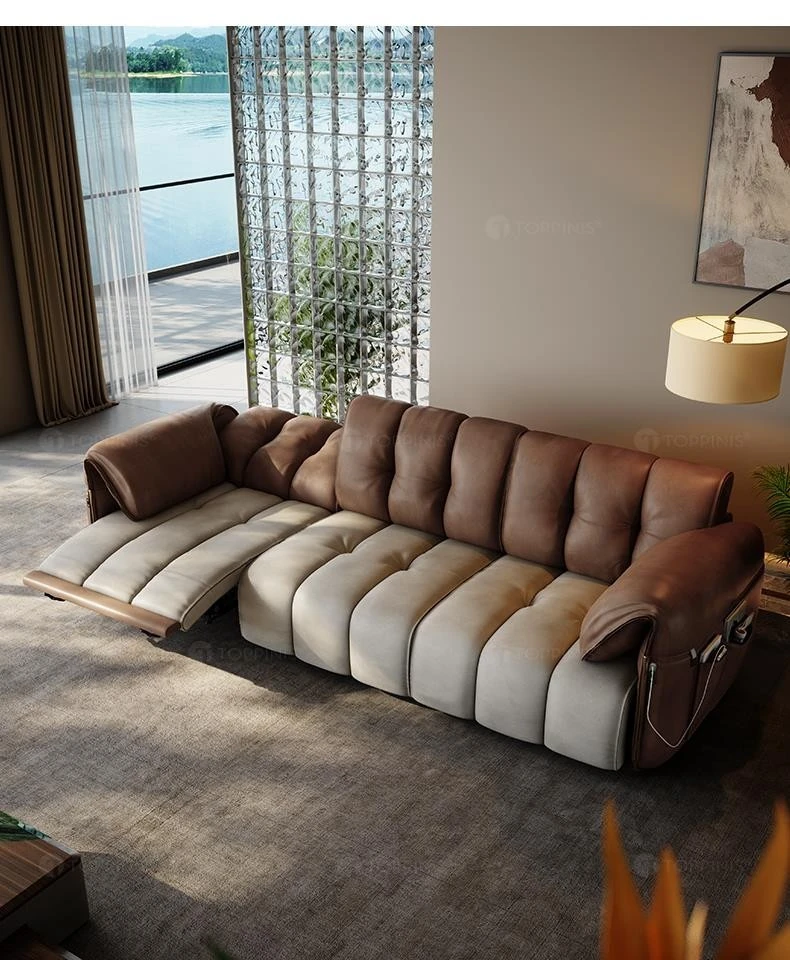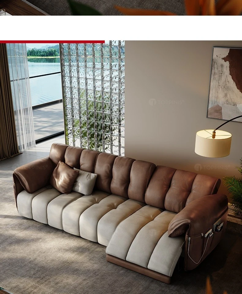 イタリアンラグジュアリー電動ソファ|デザイナー仕様の贅沢な本革ソファで、大空間リビングを演出。快適さとスタイルを兼ね備えた一品!