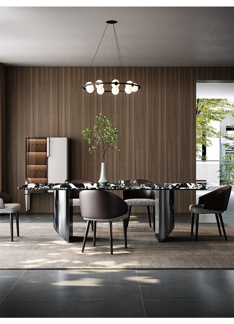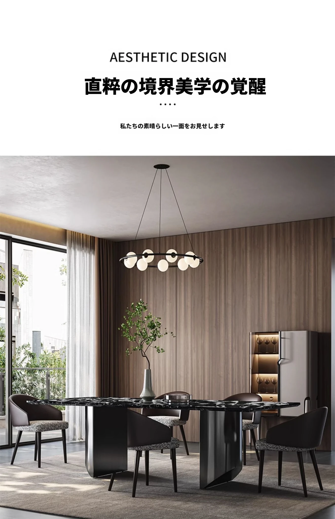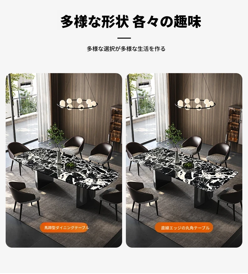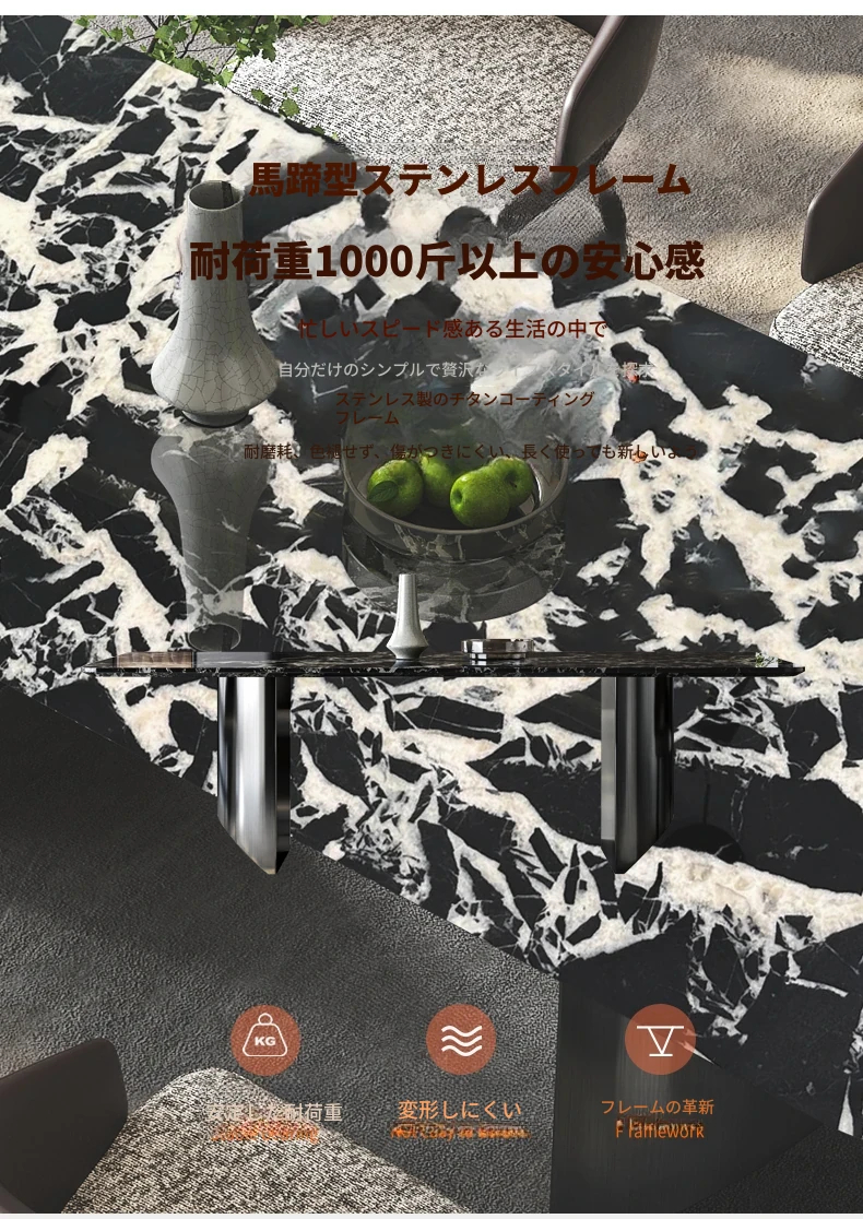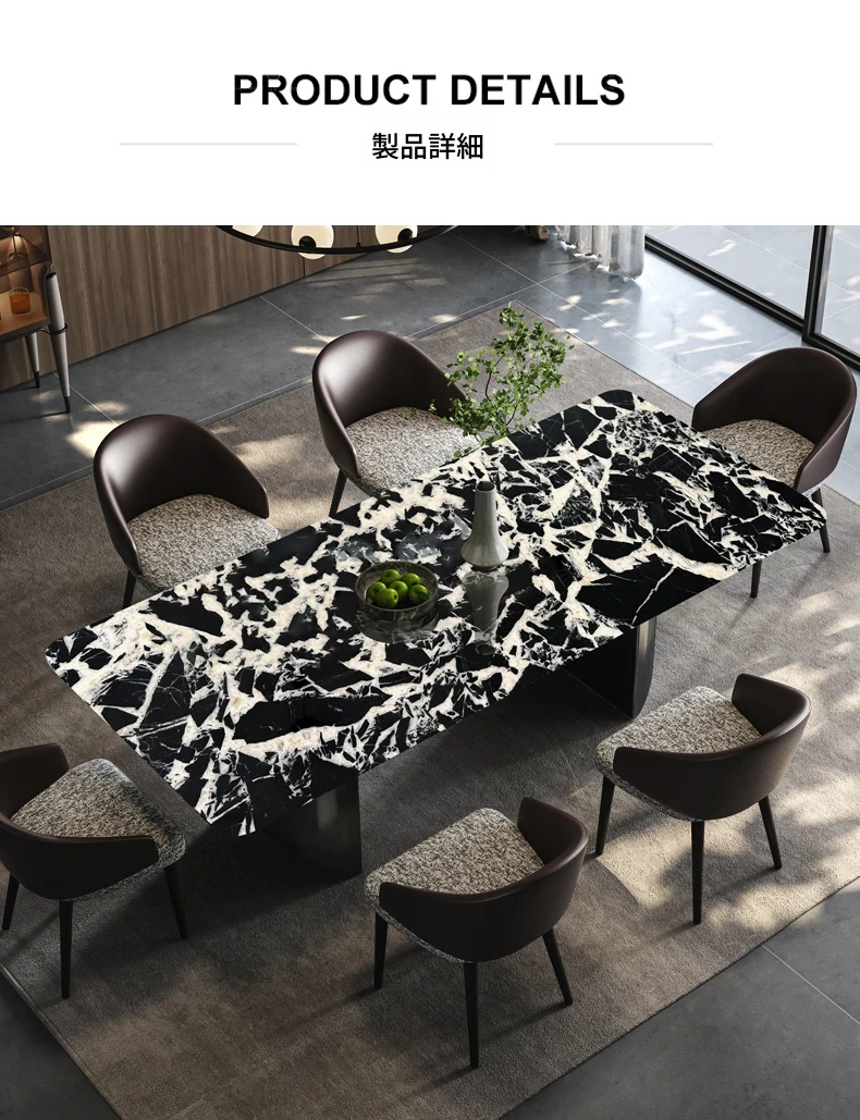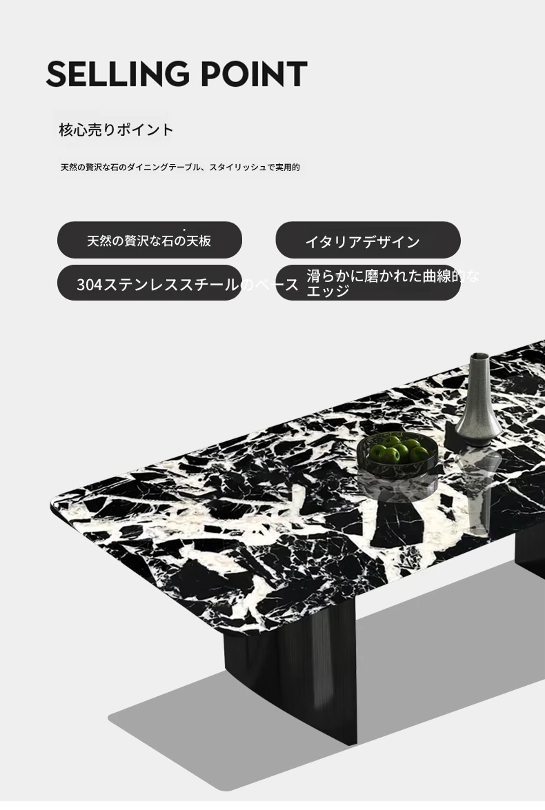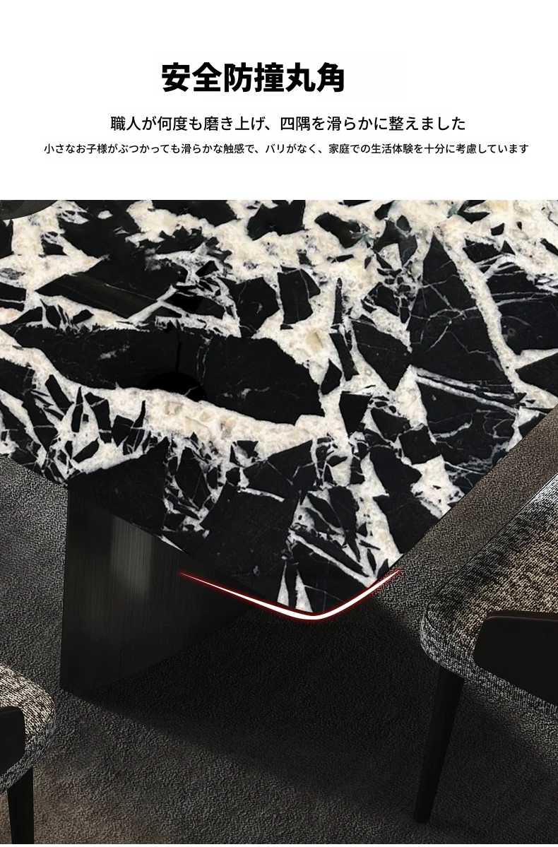イタリアンラグジュアリー感漂う本格輸入グレー大理石製の高級長方形ダイニングテーブル - 小型住宅にぴったりな洗練されたデザインで、食卓を華やかに彩ります。