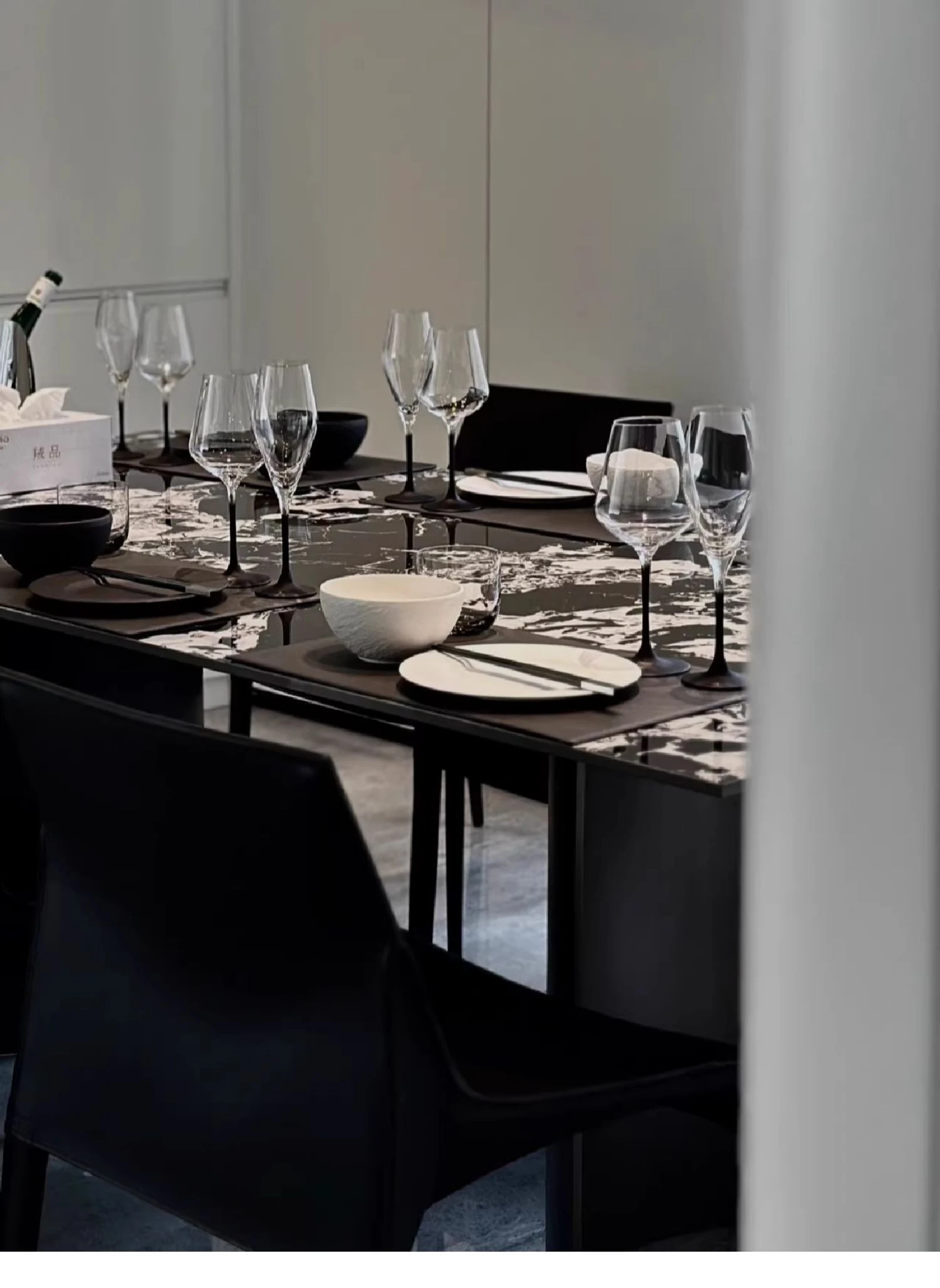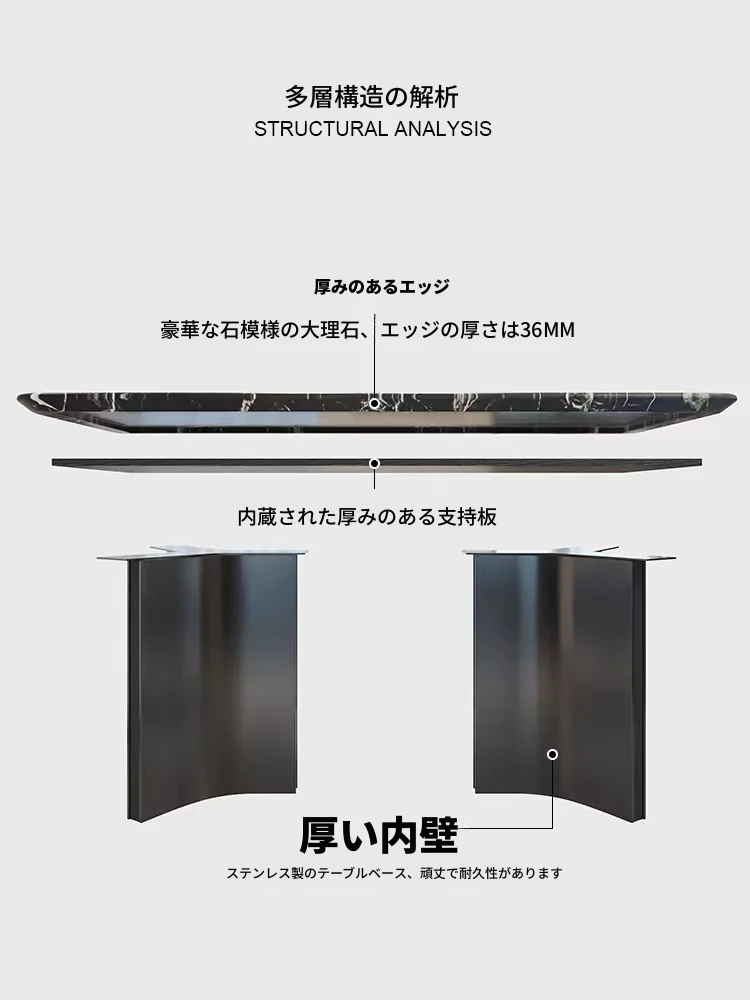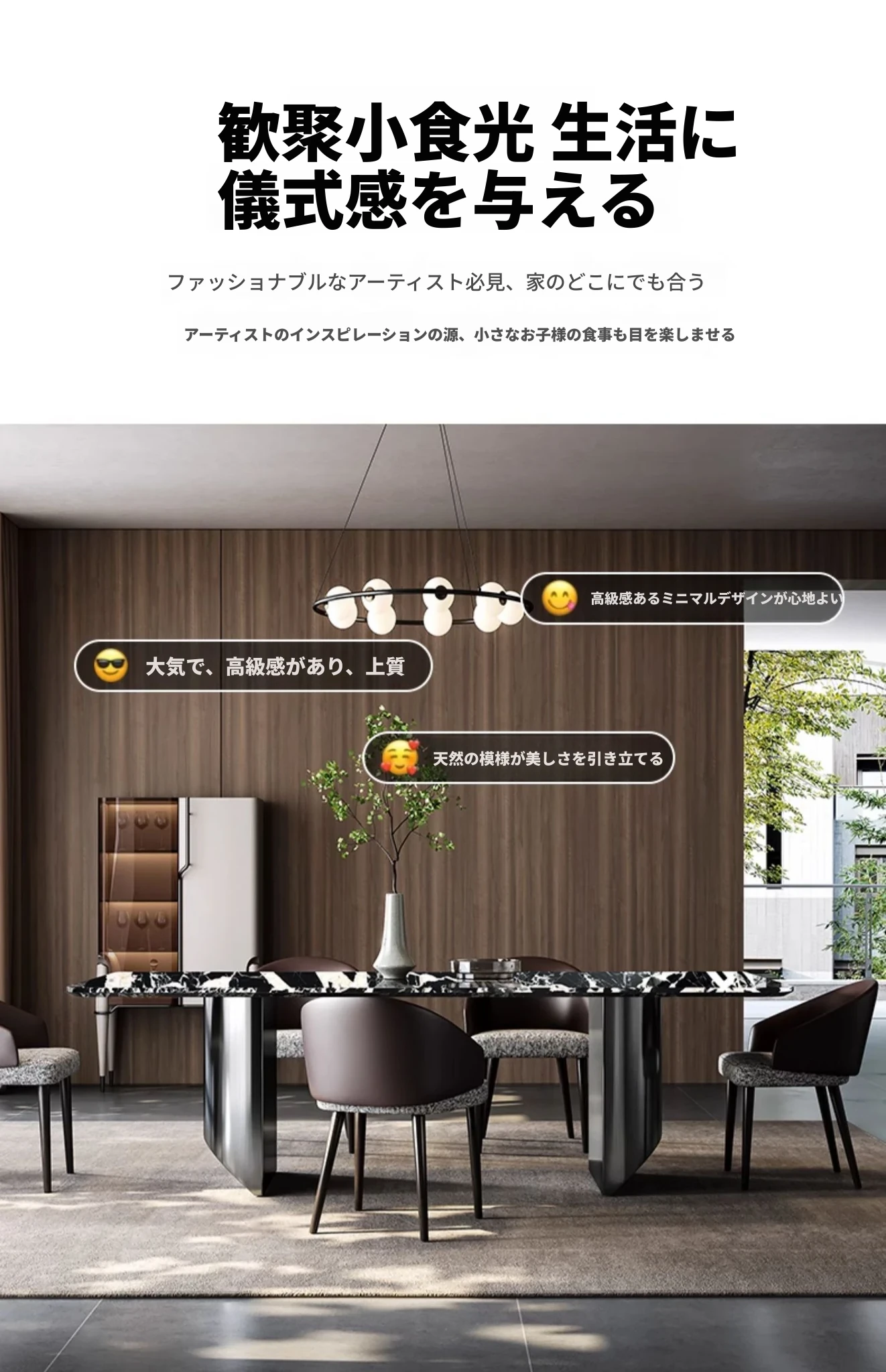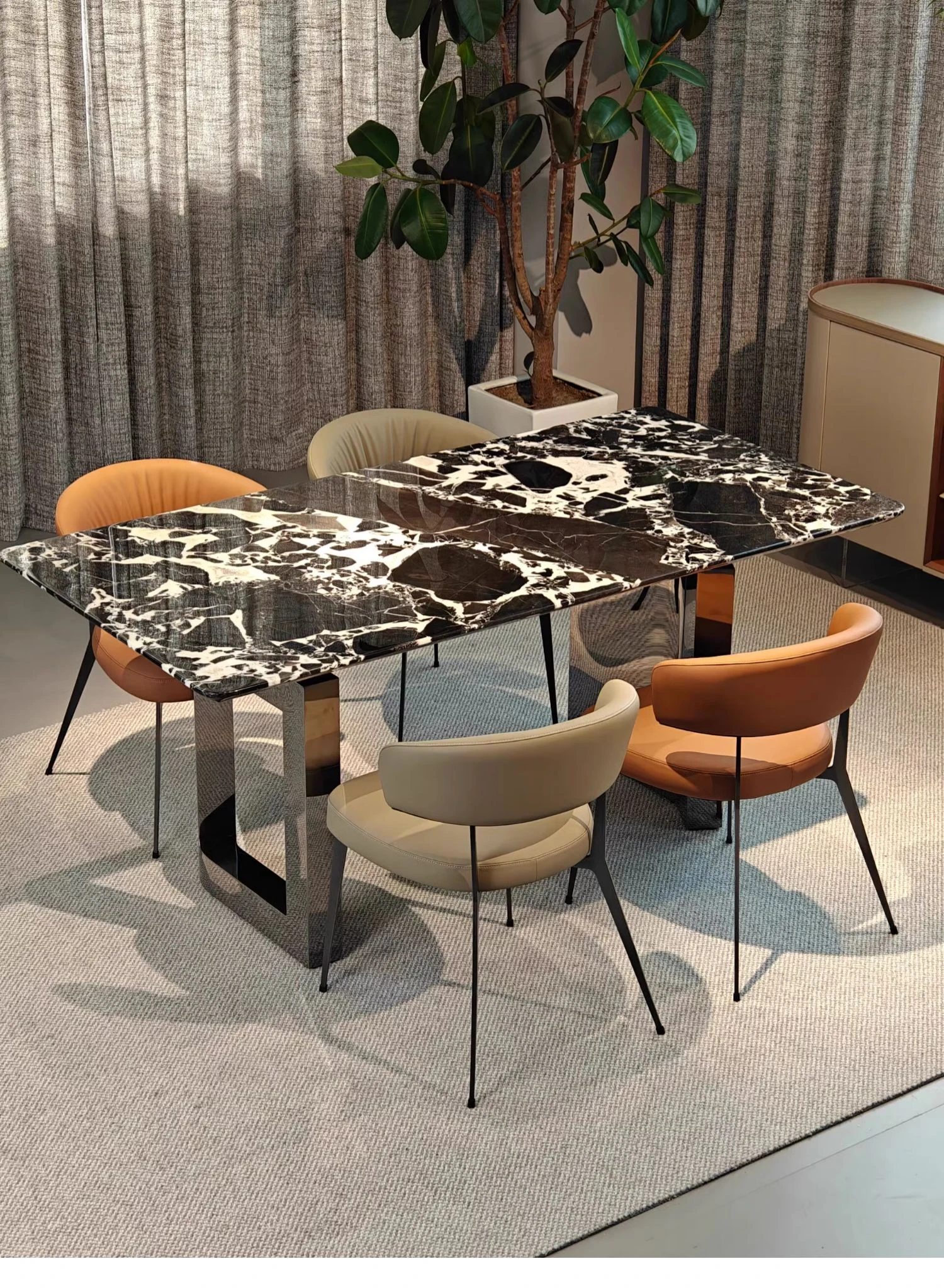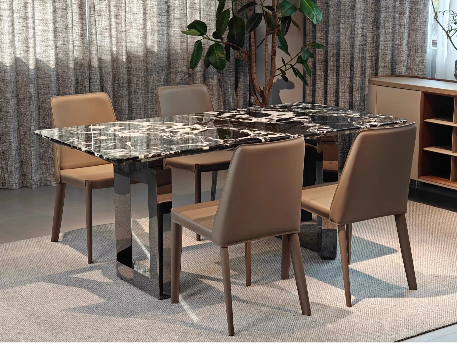 イタリアンラグジュアリー感漂う本格輸入グレー大理石製の高級長方形ダイニングテーブル - 小型住宅にぴったりな洗練されたデザインで、食卓を華やかに彩ります。