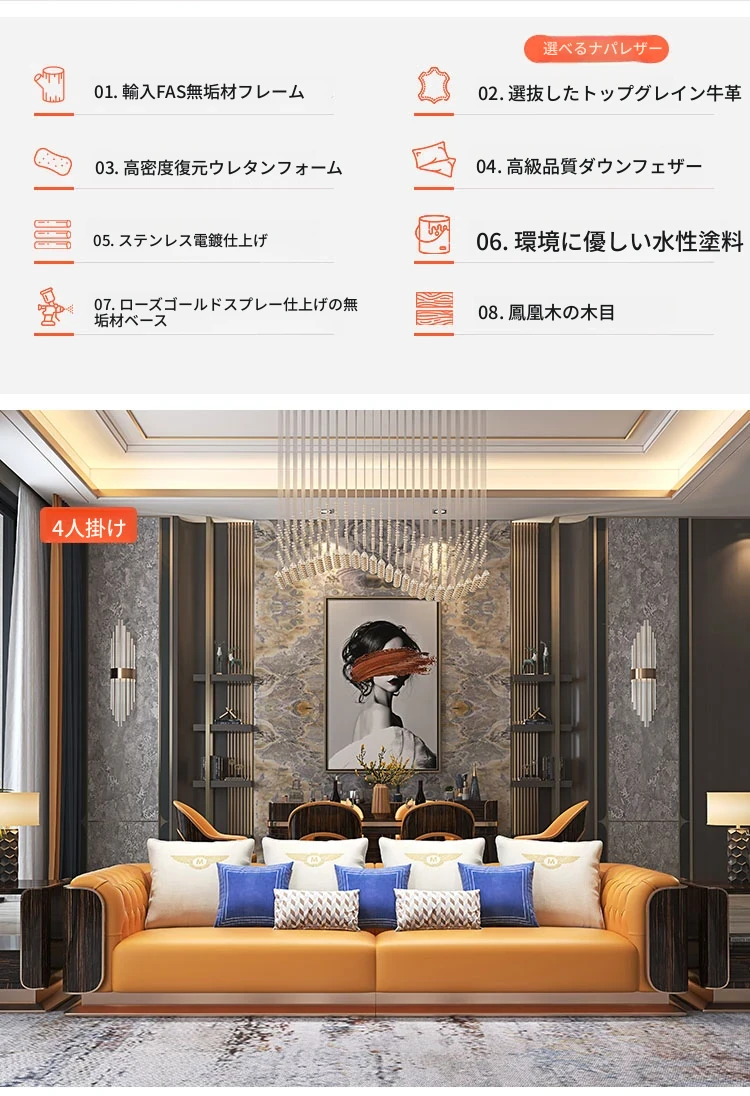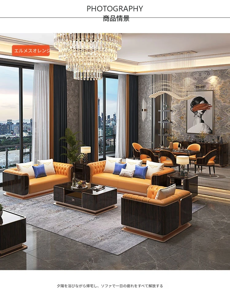 イタリアンラグジュアリー本革エルメスソファセット 大型別荘向け 高級感あふれるアルマーニ・ベントレーの無垢材家具で贅沢な空間を演出!